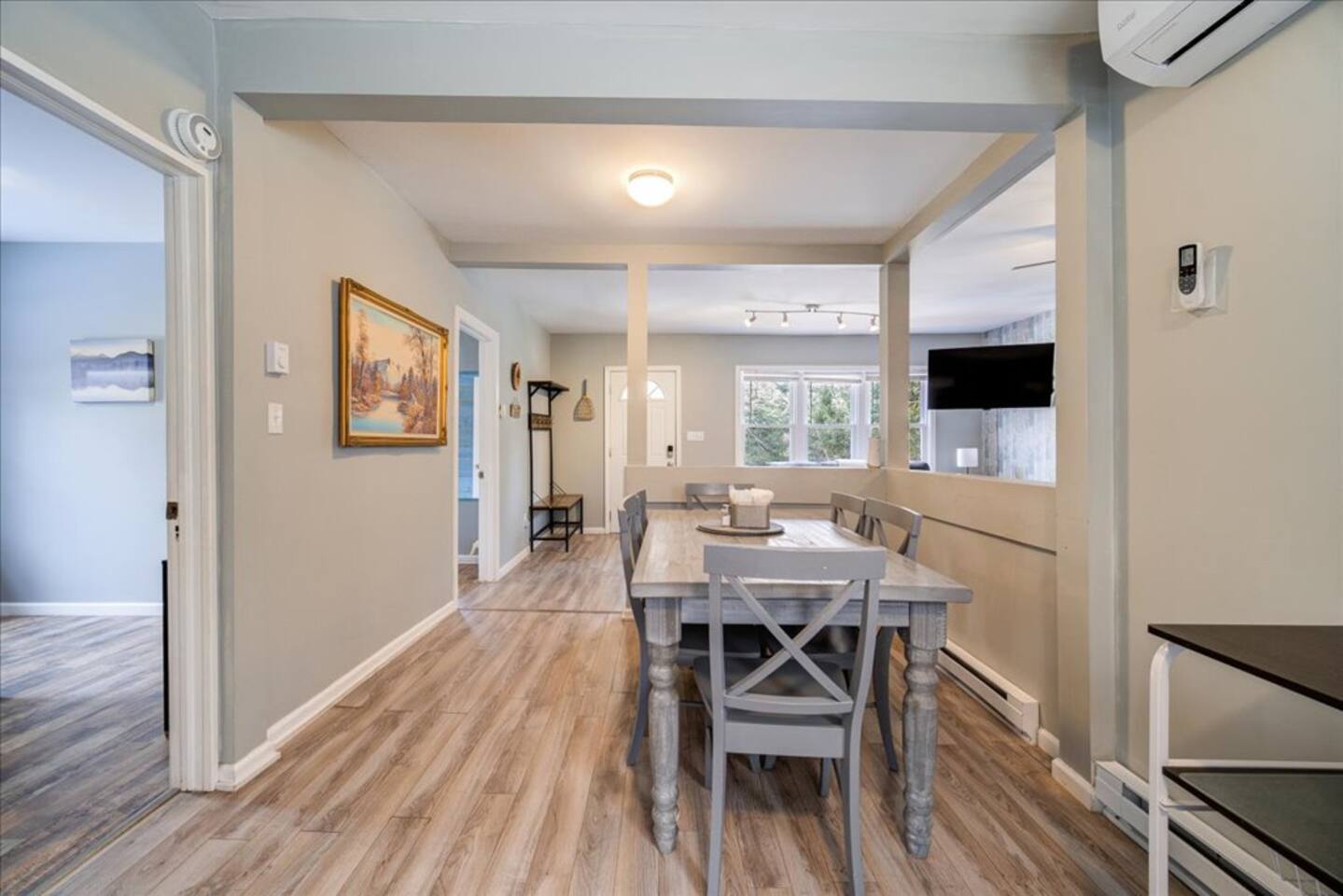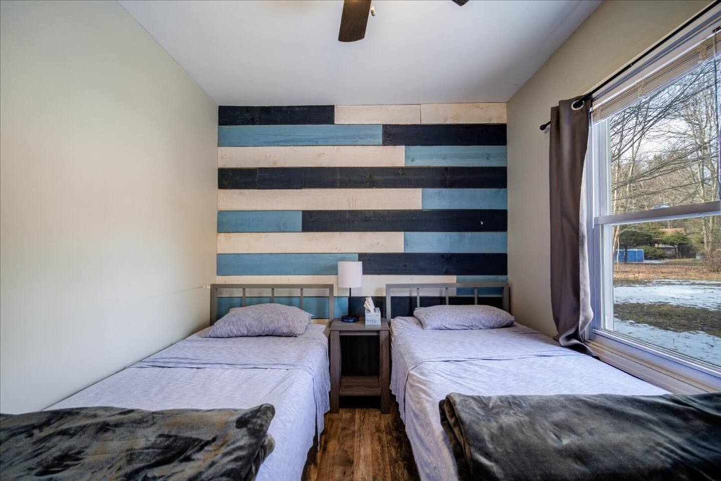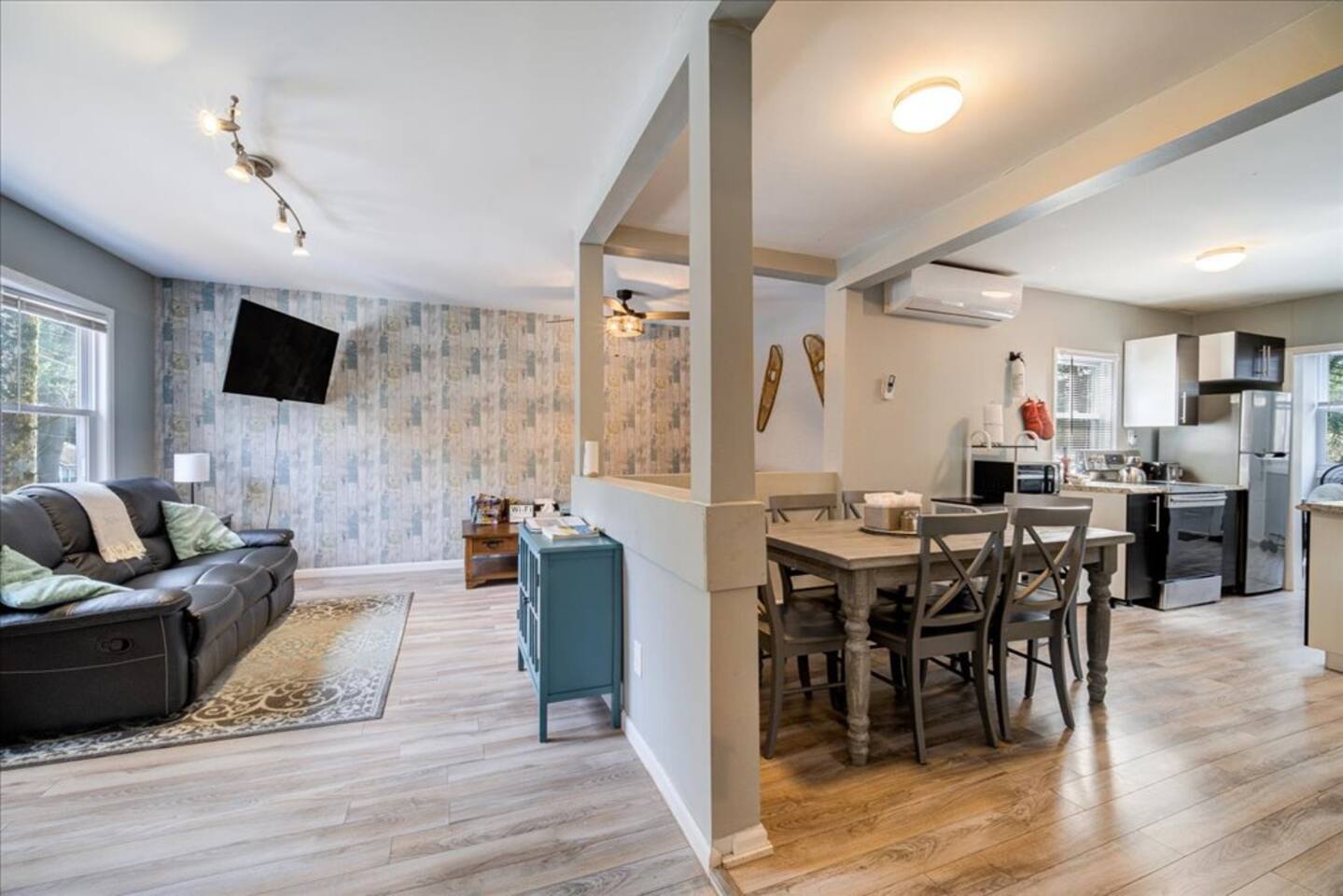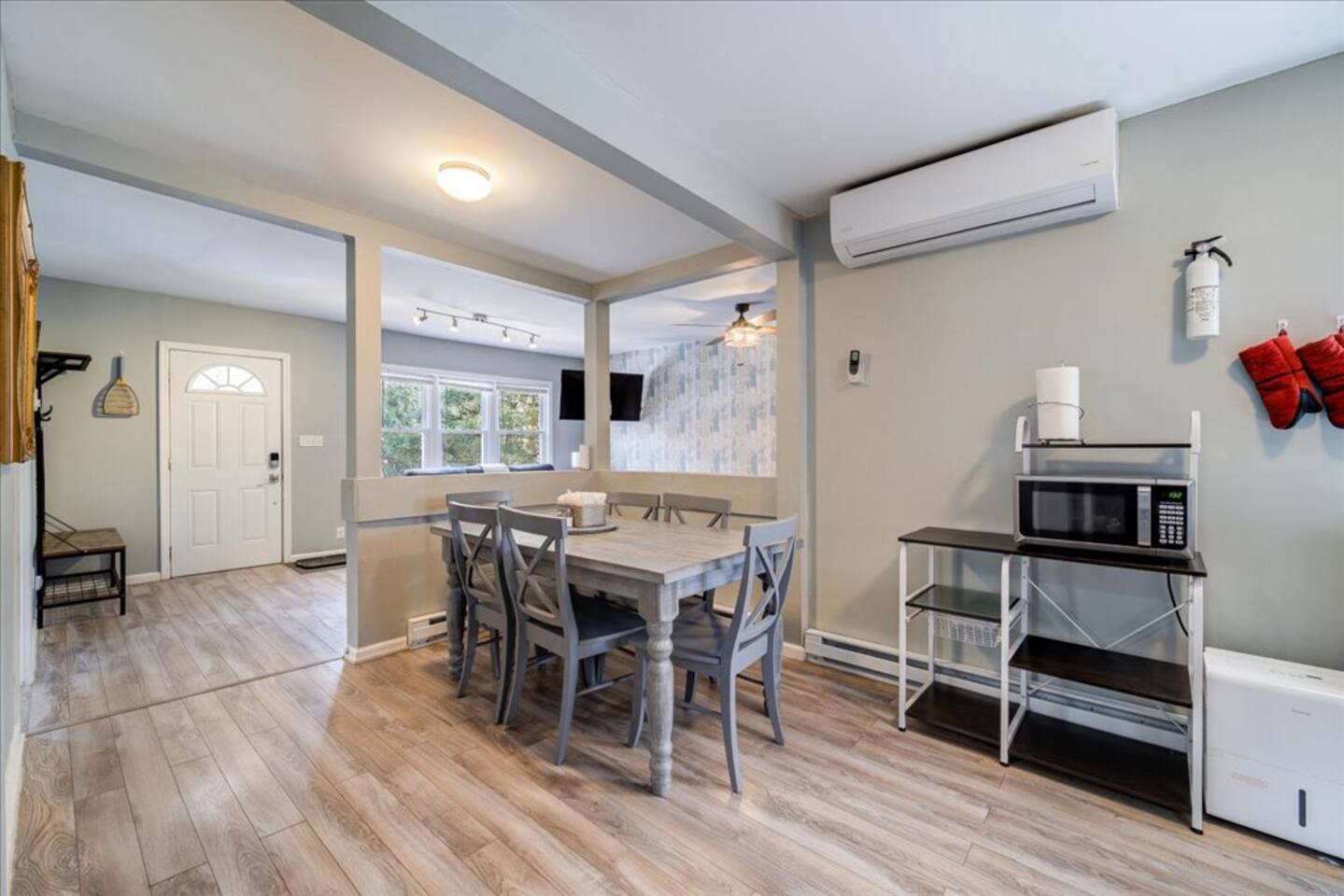 Enjoy all the comforts of home at this clean and beautifully renovated Catskill Mountain cabin, located in a small and friendly lake community. The house was recently gut renovated with a focus on space and comfort. We are continuously upgrading/ adding amenities to ensure an excellent stay. No need to pack up your entire house- we provide clean towels, linen, and basic kitchen necessities as well as soap, shampoo and a washer/dryer. We have excellent Wi-Fi and multiple laptop friendly workspaces. Out front there is a carport with space for at least two vehicles, as well as additional spots on the grass. Walk up a few steps to the front porch and into the front door. There is a spacious living room with two comfortable couches with two built-in recliners. Enjoy the game or access your subscriptions (Netflix, Hulu, Amazon etc.) on the 50" smart, flat-screen TV. We have an assortment of books, games and children's toys as well as brochures for local points of interest. In the kitchen we have a stainless steel fridge and powerful convection oven, as well as a toaster oven, microwave and bread toaster. basic pots, pans and utensils. We have a full set of cutlery, mugs and dishware. We also provide a Keurig coffee maker with a selection of K-cups, tea bags, sugar and creamer. The dining room table offers seating for six. There are three bedrooms in the house. Each one has a window air conditioner during the warm months and storage space. The mattresses, pillows and blankets are super comfortable, and each room has black-out shades, helping you to a great night's sleep even away from home. Master Bedroom: Offers a king-sized bed, nightstand and closet with a chest of drawers. There is an iron/ironing board and an extra fan in the closet. There is also a ceiling fan above the bed. Bedroom 2: This room is great for adults or kids. There is a bunk bed with a full-size mattress on bottom and twin mattress on top. In the closet you can find the life jackets, tv dinner/laptop tables and a rail for the lower bunk in case you have young children. Sorry, no ceiling fan in this room, we value your head. Bedroom 3: This room has two twin beds with a nightstand in-between, and a bureau with hanging space and drawers in which you can find extra towels and blankets. This room also has a ceiling fan. The bathroom has extra toiletries in the medicine cabinet and there is a hair iron under the sink. There is a tub and shower. The back room is a great bonus space with a foosball table and washer/dryer. The back deck is a great place to relax with a table and chairs located next to the BBQ grill. We provide grill utensils. On the lawn we have chairs around a fire pit, perfect for outdoor cooking, smores-making or warming up in the colder months Hot Tub all year round . Enjoy endless stars under the clear mountain sky. We have Adirondack rockers and a hammock out in the summer months. There is baseboard heating throughout the house, with an individual thermostat in each room. There is also a 24,000 BTU split system located in the dining area which can provide extra cooling or heating during extreme temperatures. On the side of the house, we have a fire pit, a large trampoline, basketball hoop and a playground for the kids. We have an infant bathtub, pack-n-play, and toddler booster seat always available at the house. The 4+ acre lake is located just a few hundred steps from the house and is a wonderful place to play or relax. It is accessed via a community beachfront area. The beachfront area (grass, not sand) has a picnic table for lakeside dining. The lake allows non-motorized boating and activities and is stocked with an array of fish for catch and release fishing. The lake is less than 6' deep in most spots and is great for swimming. There is a dock in the middle during warmer months, perfect for lounging on or for jumping into the lake. We have a pedal boat that you can use, instructions can be found in the house manual. The lake usually freezes over during the winter, allowing for ice skating, ice fishing or tubing. Please make sure it is frozen solid before walking on it! Pets are allowed case by case, please let us know in advance if you plan to bring one. If you bring a pet, an extra $25 cleaning fee will be charged after booking. We strive to make your stay as relaxing and comfortable as possible. We have a caretaker in the community and live nearby in case anything is needed. We always listen to suggestions to keep improving the house and the supplies that we offer. Our guidebook offers recommendations for local restaurants, activities and attractions. We look forward to hosting your stay!