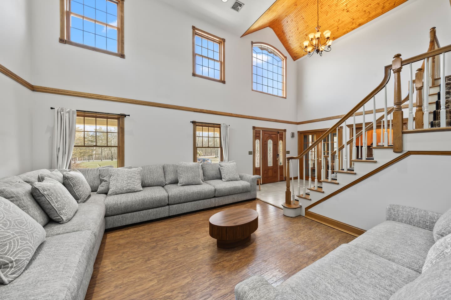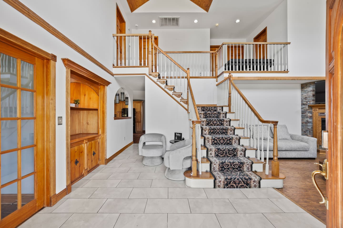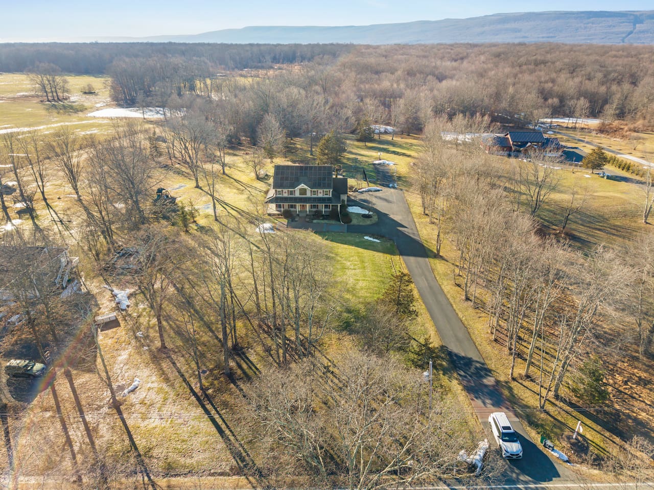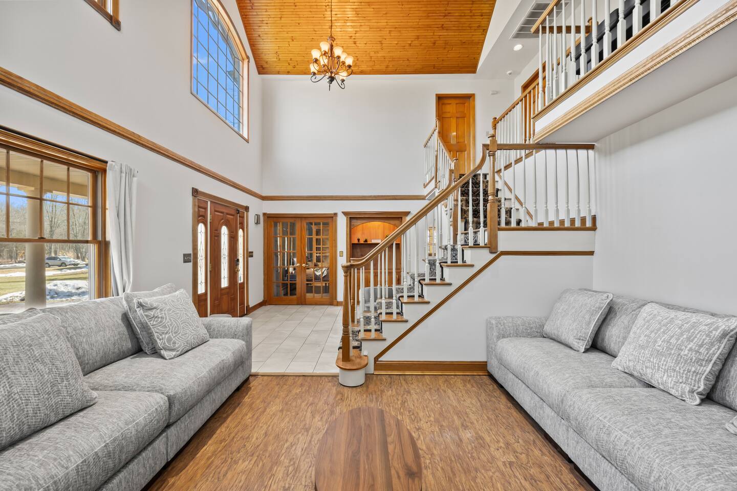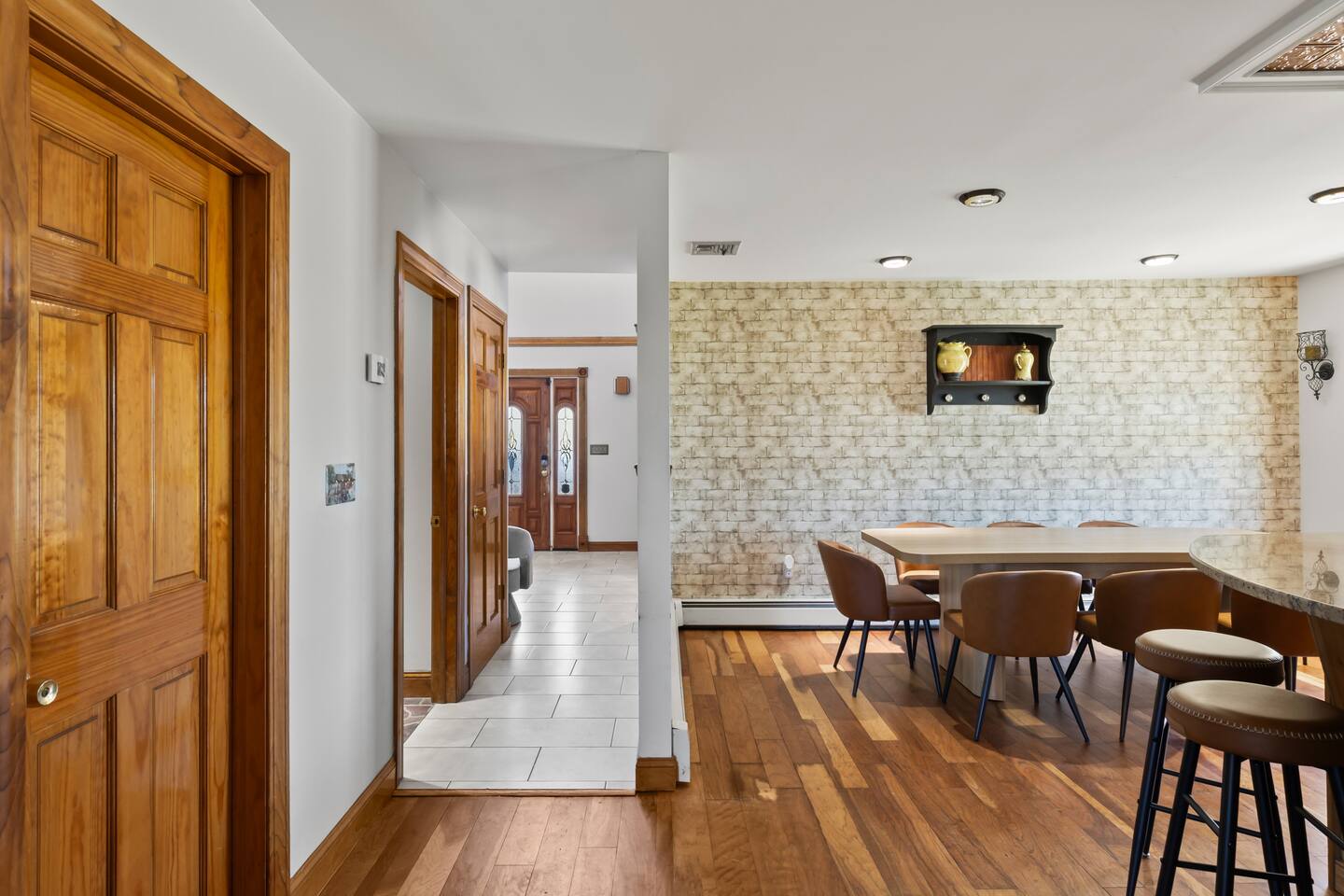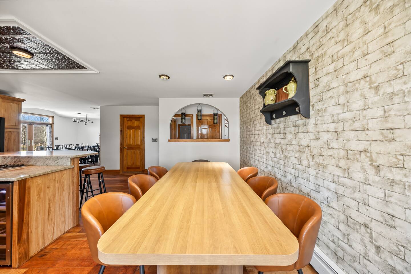 Spacious Hudson Valley retreat in Gardiner, NY perfect for large families and groups. This home features 8 bedrooms, 3.5 bathrooms, and sleeps up to 28 guests comfortably. Enjoy the pool, hot tub, fire pit, gym, and game room with pool table. The home also offers a large kitchen with wine fridge, dining area, cozy living room with fireplace, basketball hoop, grill, outdoor TV by the hot tub, dedicated workspace, jetted tub, and laundry room with washer and dryer.