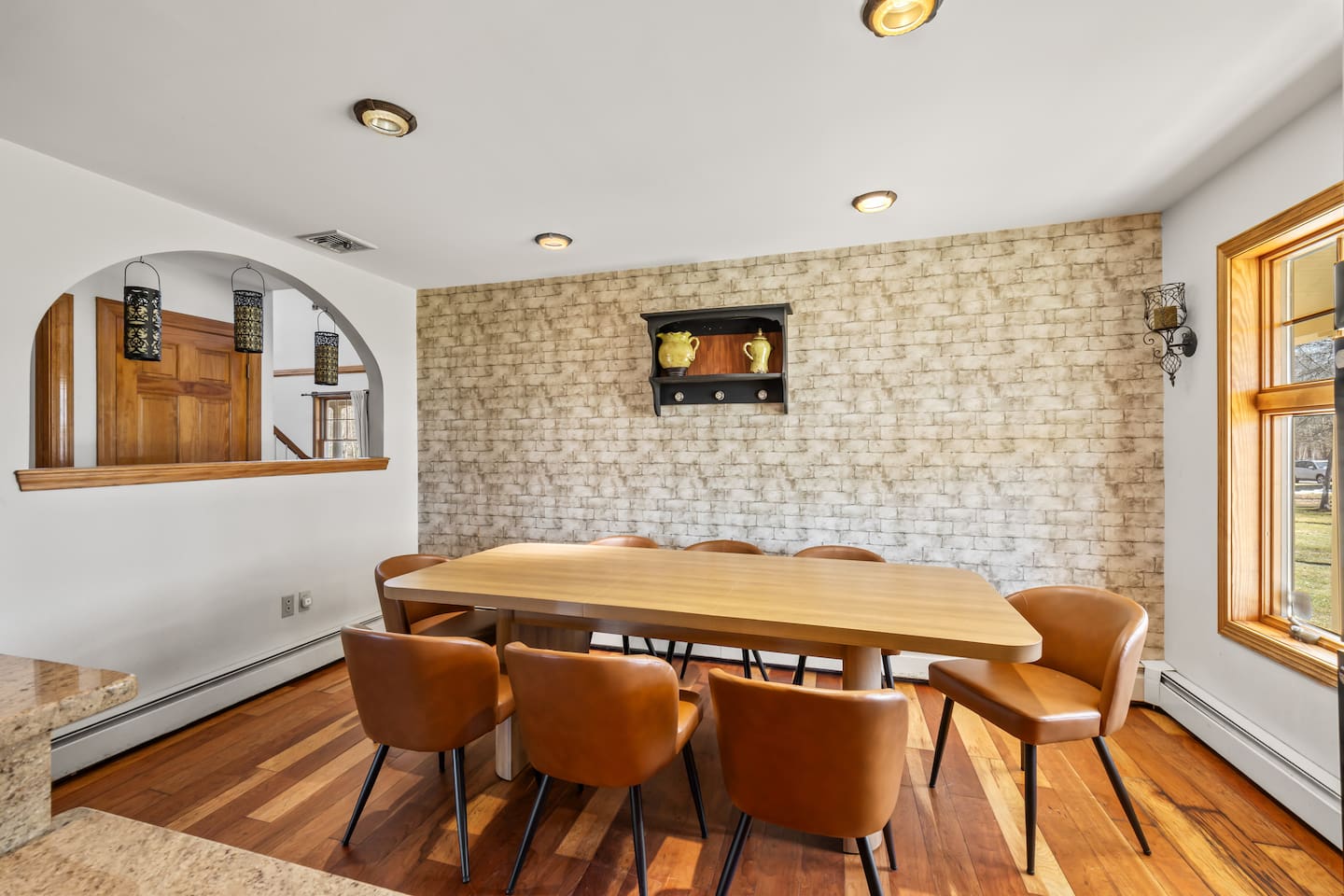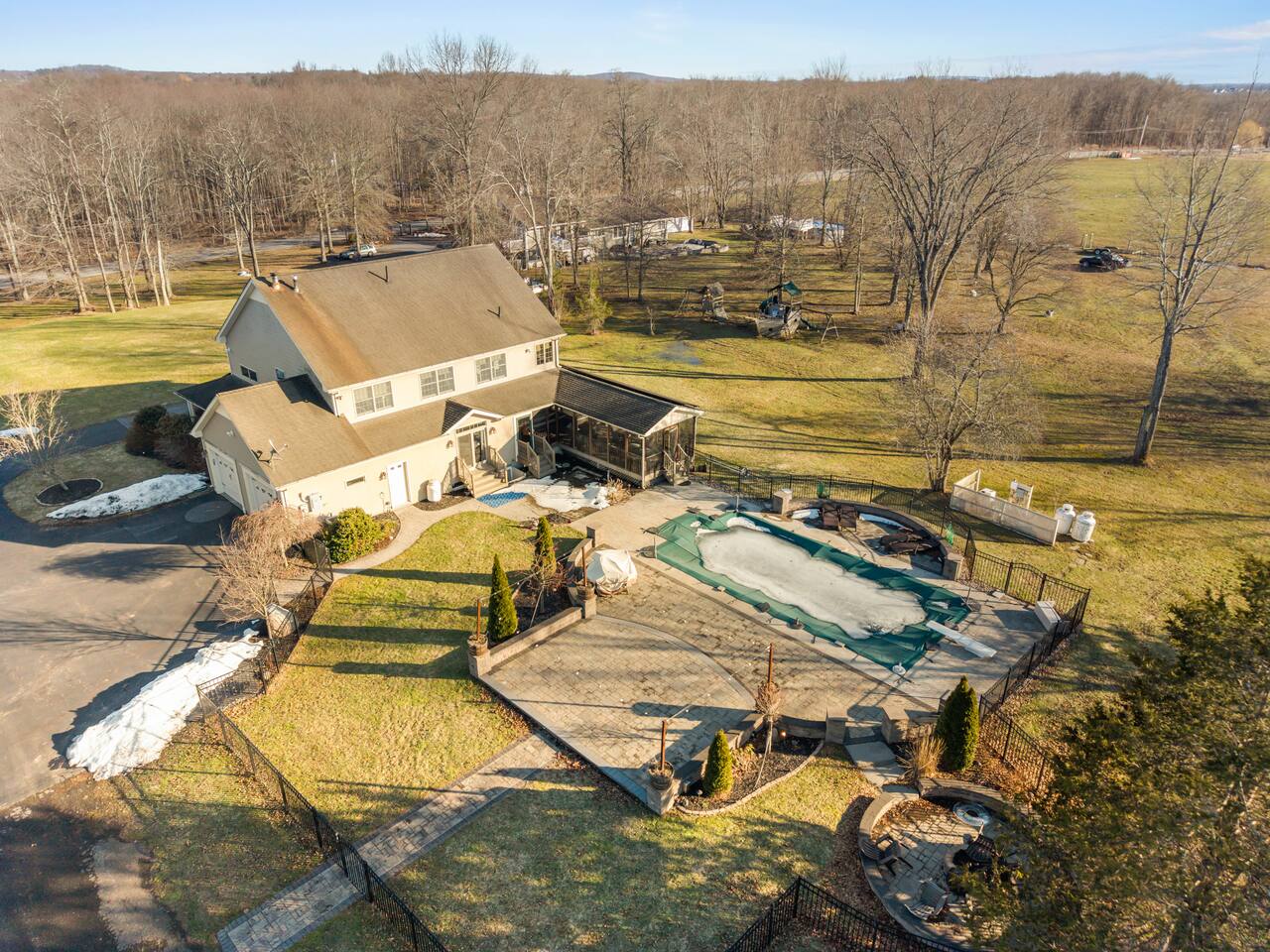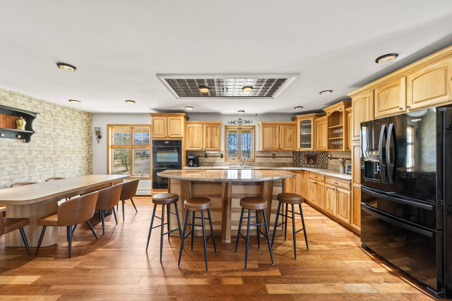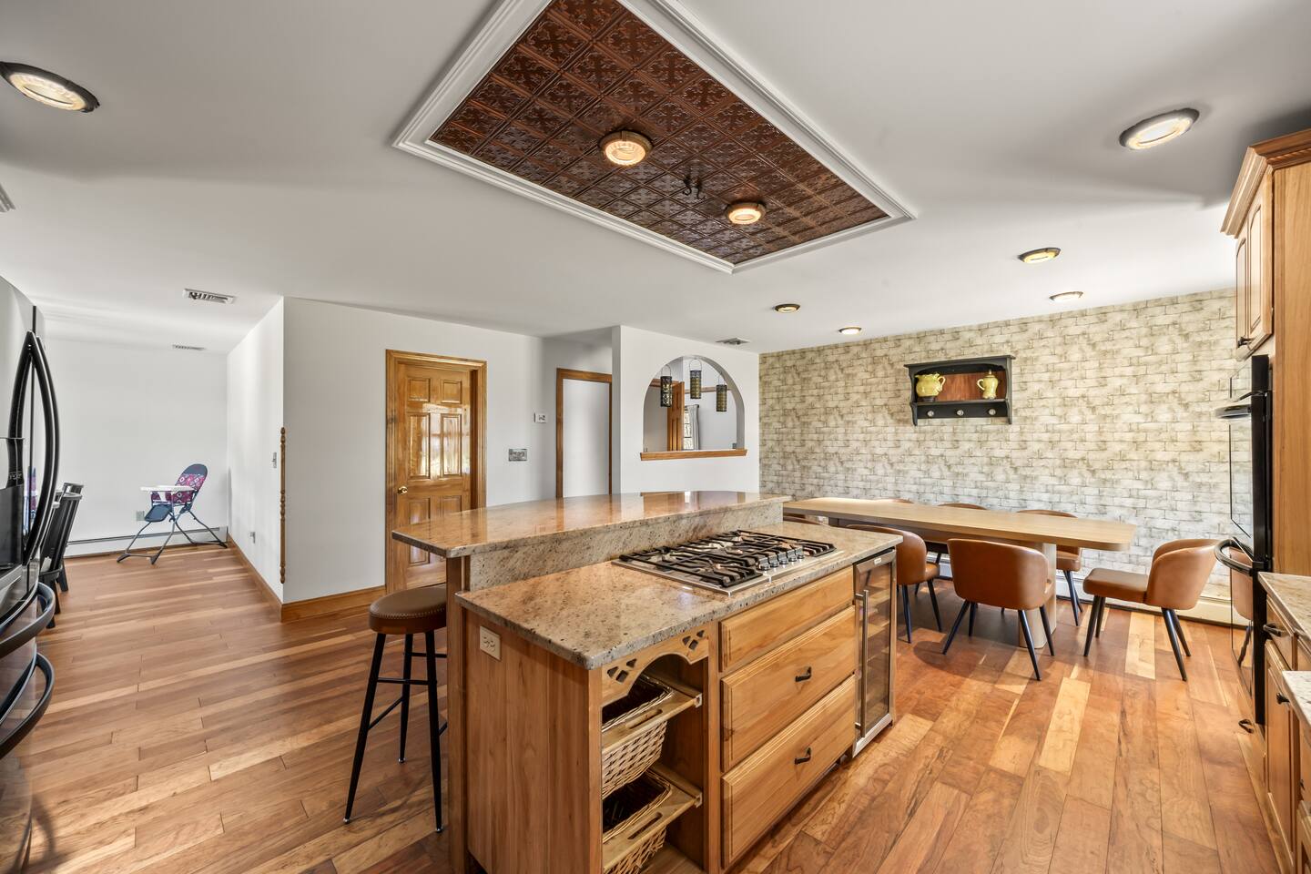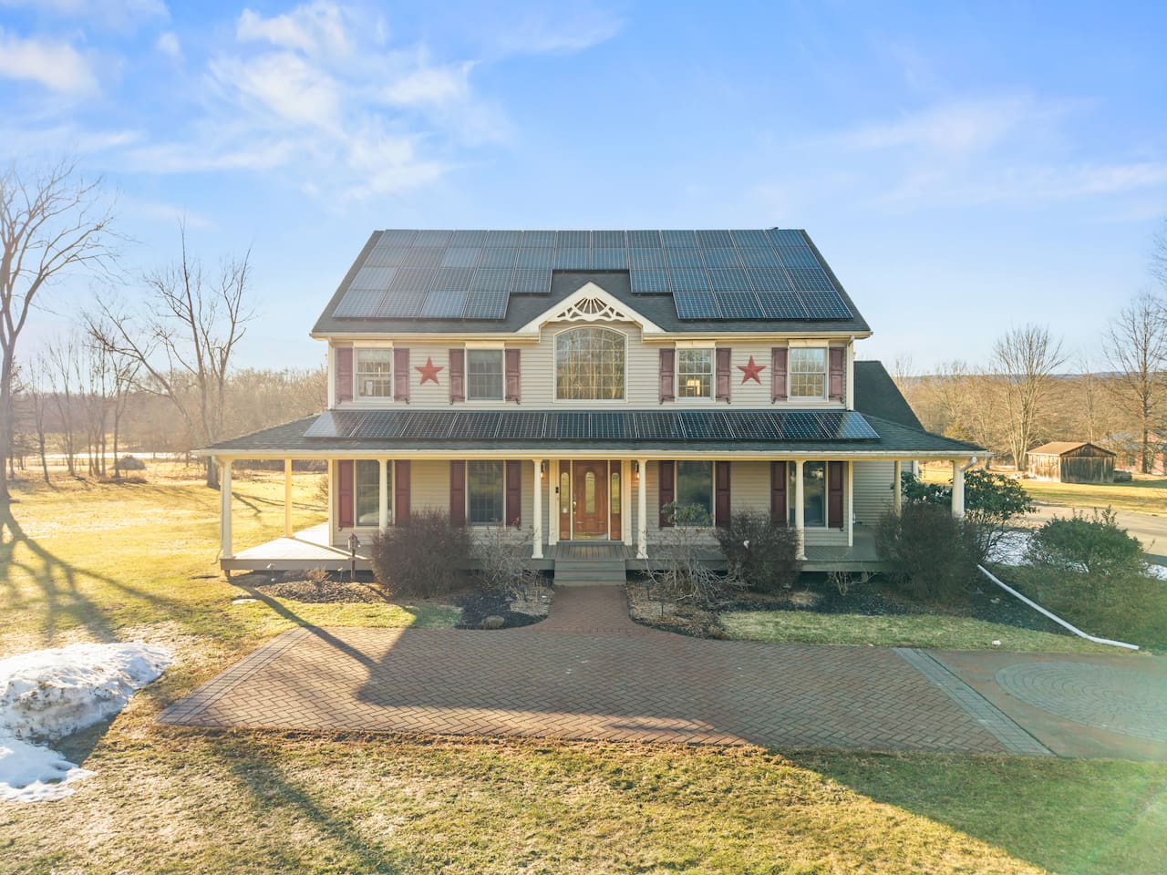 Spacious Hudson Valley retreat in Gardiner, NY perfect for large families and groups. This home features 8 bedrooms, 3.5 bathrooms, and sleeps up to 28 guests comfortably. Enjoy the pool, hot tub, fire pit, gym, and game room with pool table. The home also offers a large kitchen with wine fridge, dining area, cozy living room with fireplace, basketball hoop, grill, outdoor TV by the hot tub, dedicated workspace, jetted tub, and laundry room with washer and dryer.