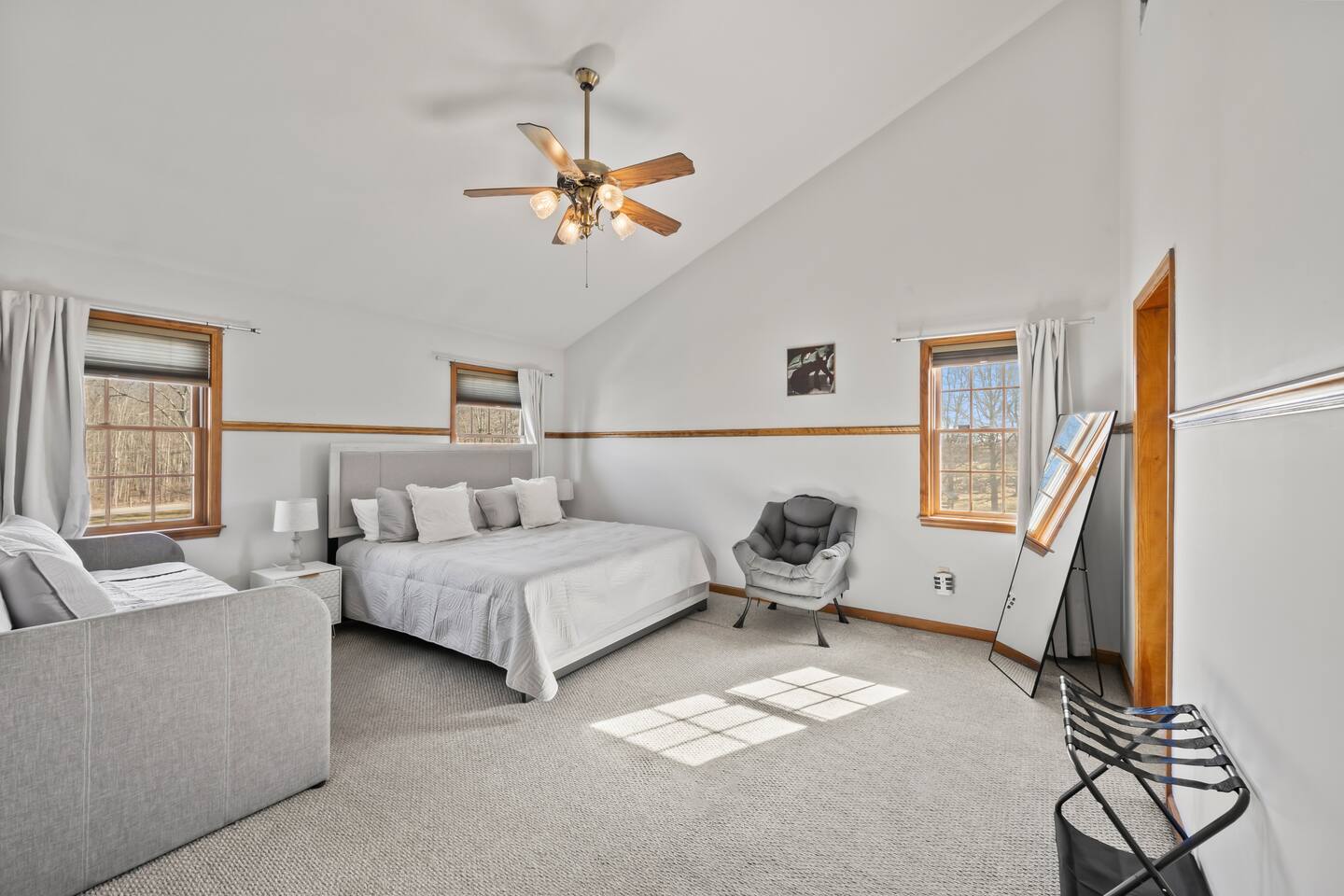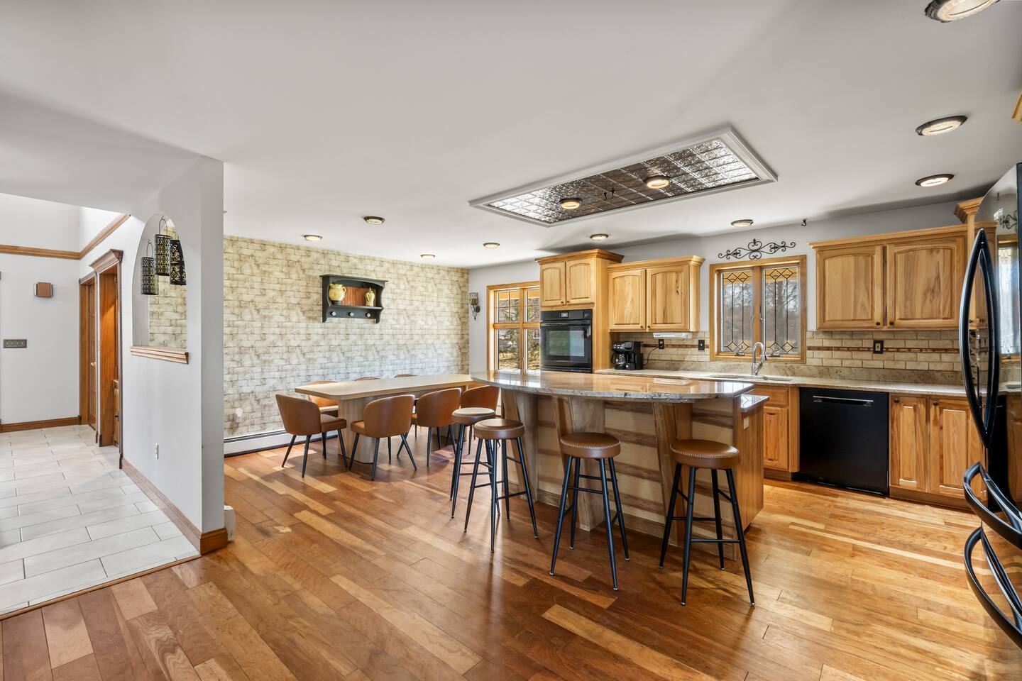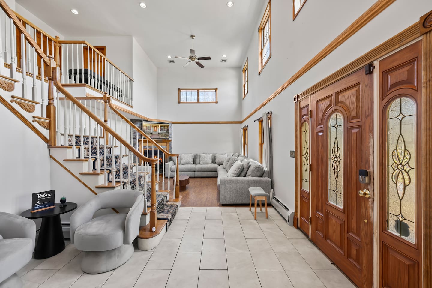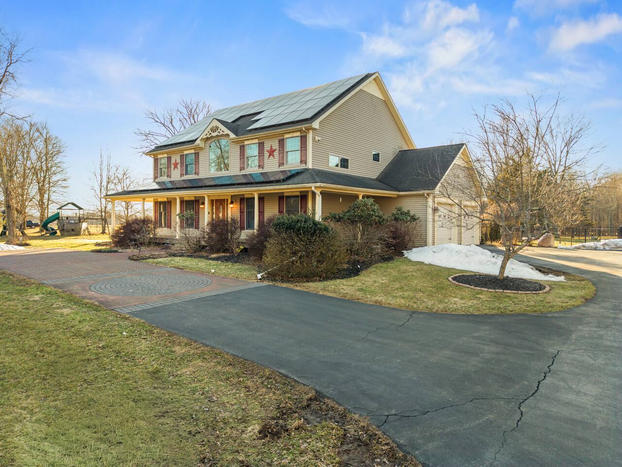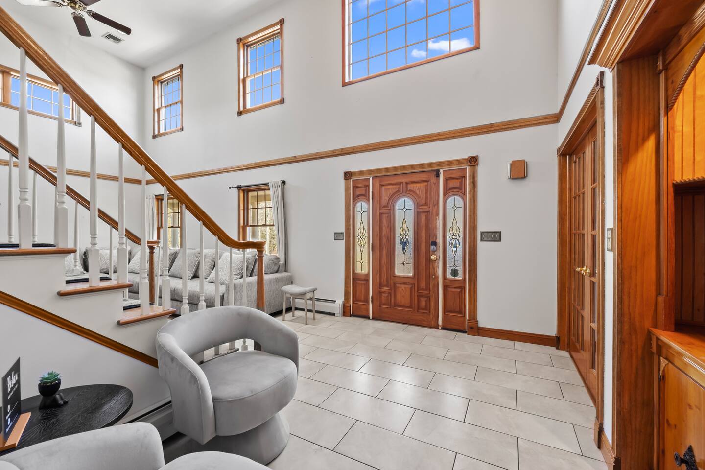 Spacious Hudson Valley retreat in Gardiner, NY perfect for large families and groups. This home features 8 bedrooms, 3.5 bathrooms, and sleeps up to 28 guests comfortably. Enjoy the pool, hot tub, fire pit, gym, and game room with pool table. The home also offers a large kitchen with wine fridge, dining area, cozy living room with fireplace, basketball hoop, grill, outdoor TV by the hot tub, dedicated workspace, jetted tub, and laundry room with washer and dryer.