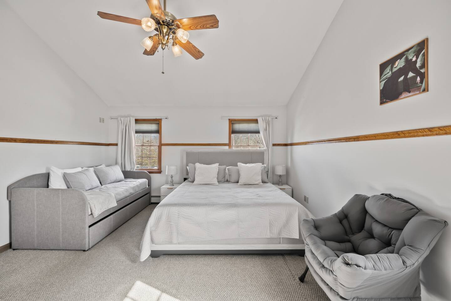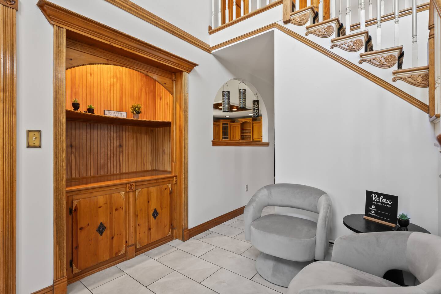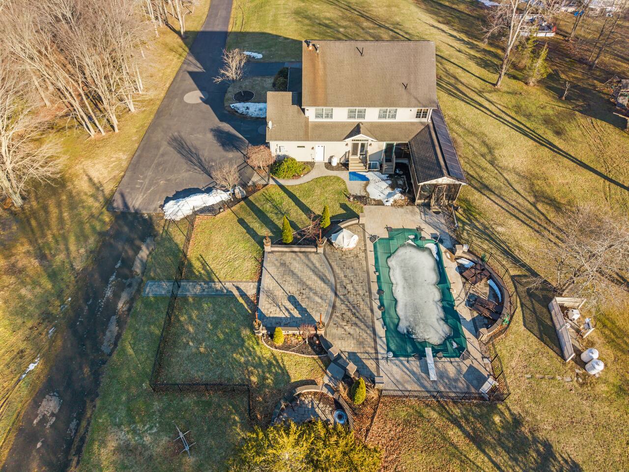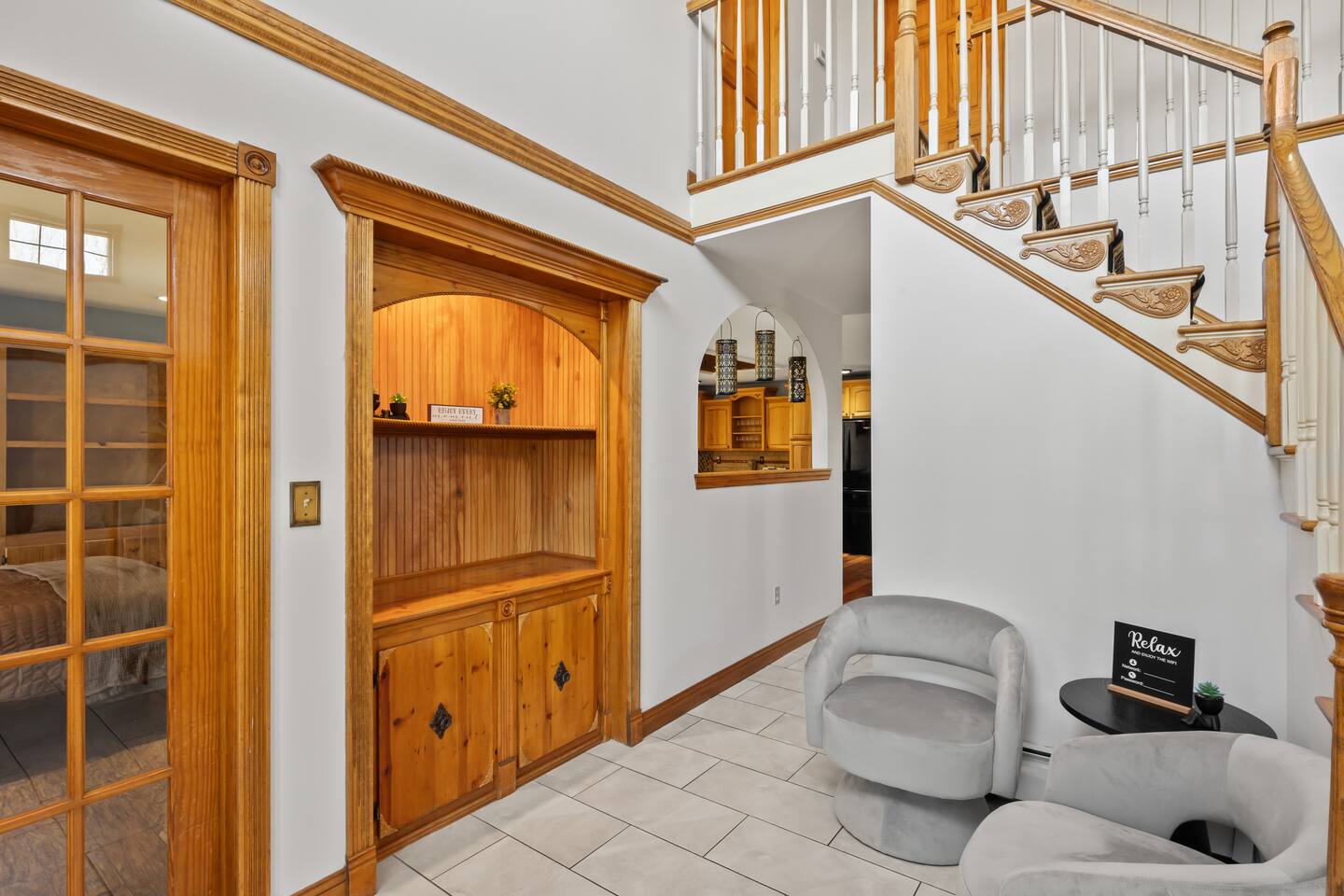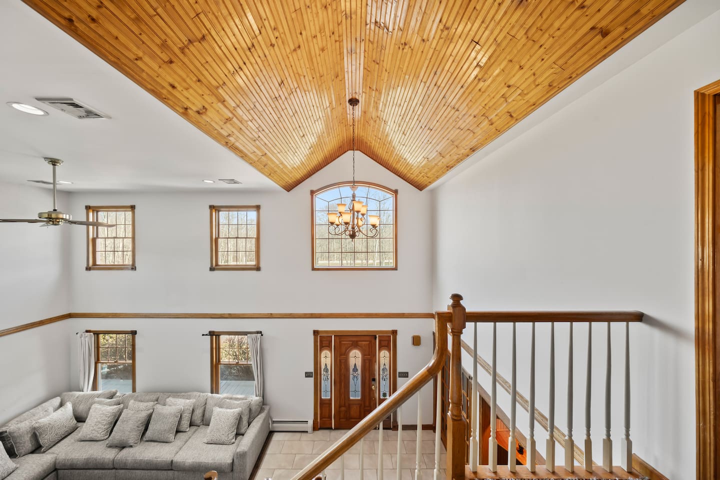 Spacious Hudson Valley retreat in Gardiner, NY perfect for large families and groups. This home features 8 bedrooms, 3.5 bathrooms, and sleeps up to 28 guests comfortably. Enjoy the pool, hot tub, fire pit, gym, and game room with pool table. The home also offers a large kitchen with wine fridge, dining area, cozy living room with fireplace, basketball hoop, grill, outdoor TV by the hot tub, dedicated workspace, jetted tub, and laundry room with washer and dryer.