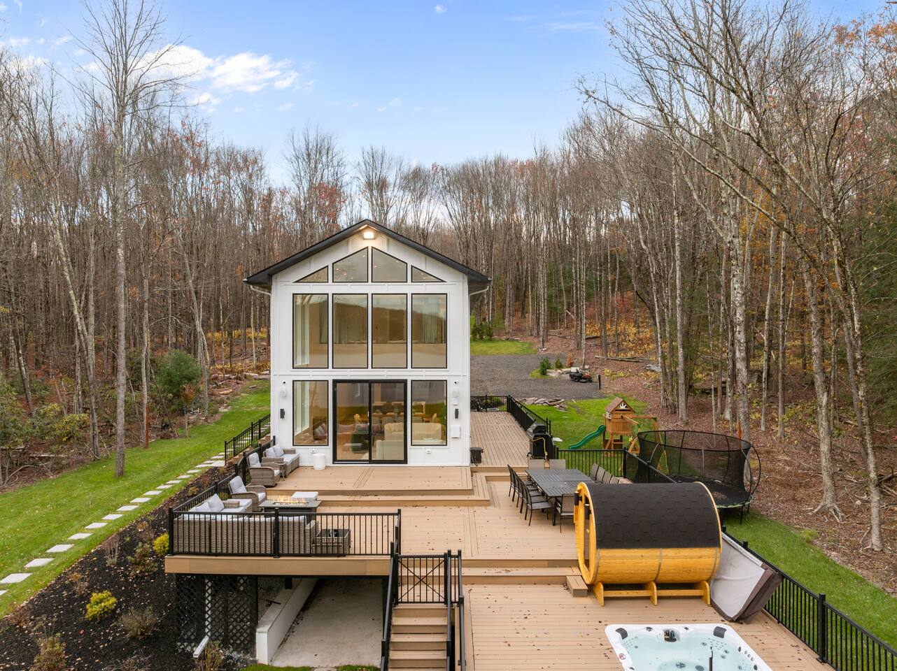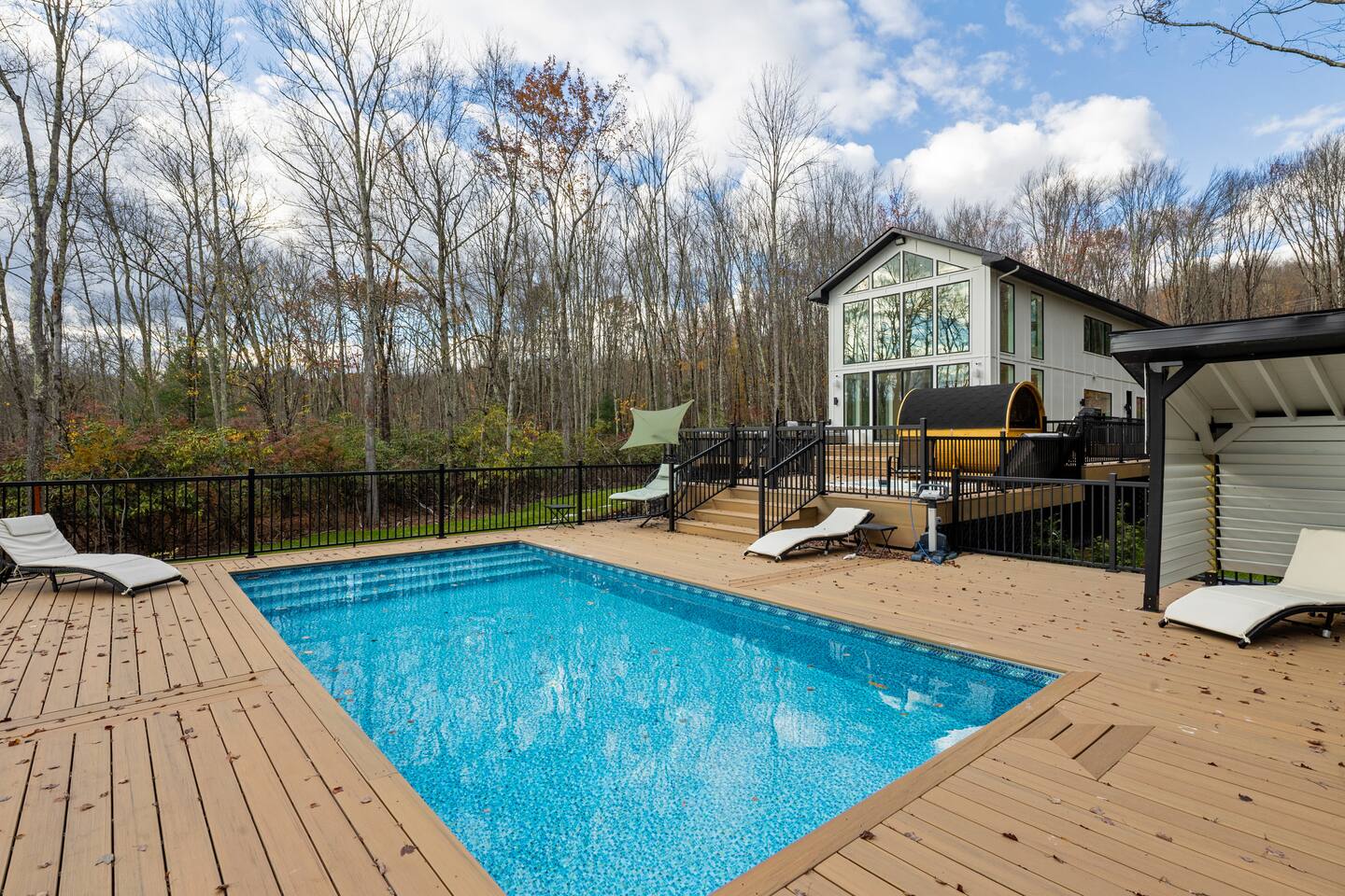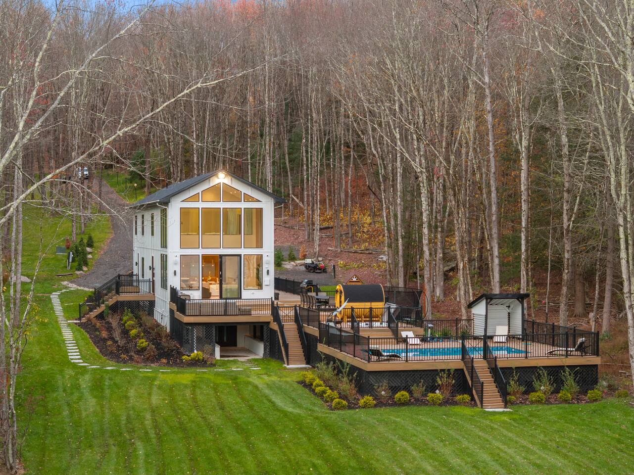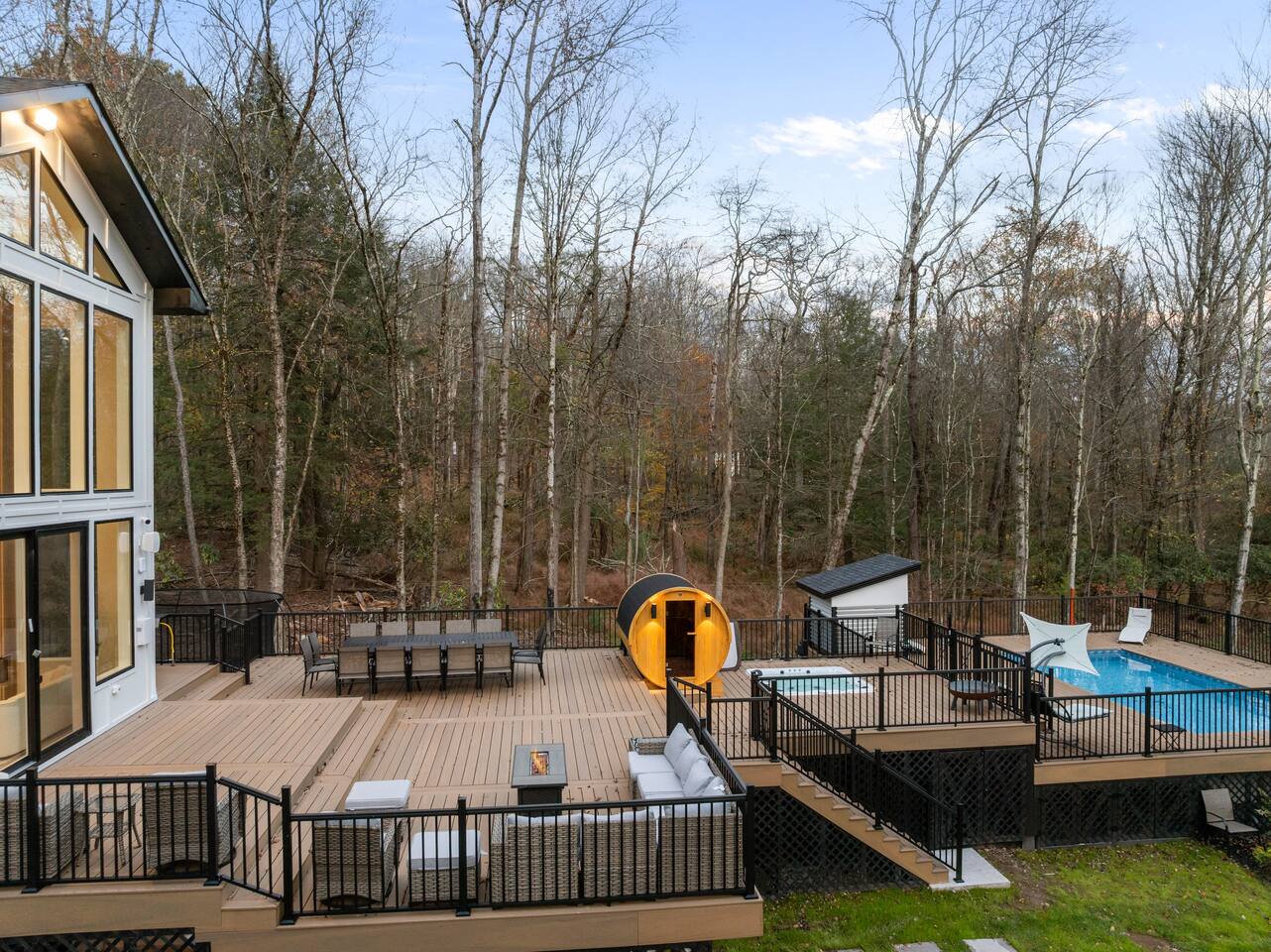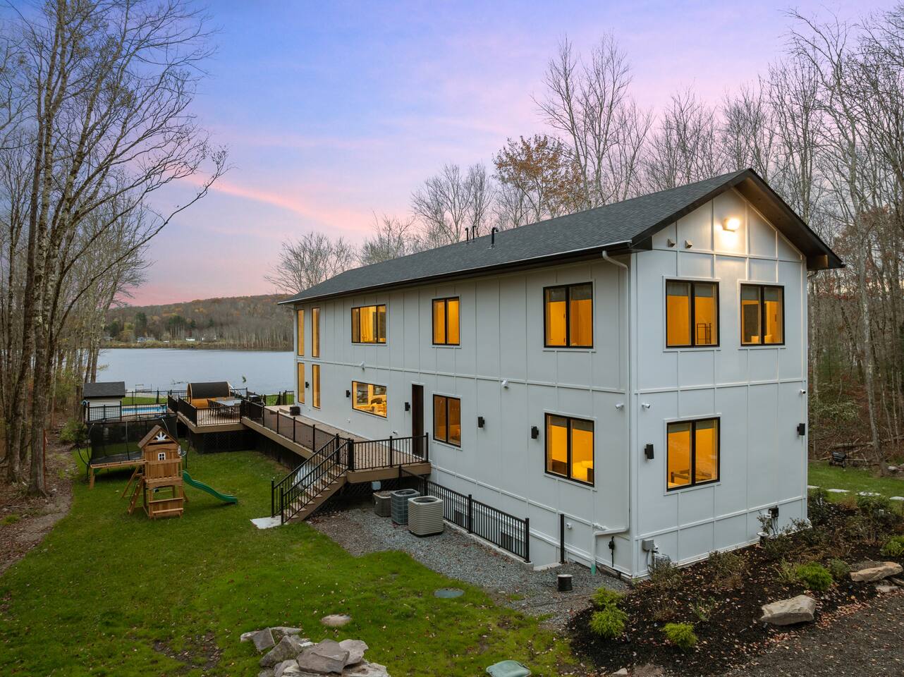 Escape to Lakefront Paradise, a private luxury retreat on a secluded lake in Woodridge, NY. Enjoy a pool, hot tub, sauna, and direct lake access with kayaks. The open-concept kitchen and living room feature panoramic lake views, while the spacious deck, playground, and trampoline create endless outdoor fun. Perfect for families and groups seeking relaxation, adventure, and total privacy.