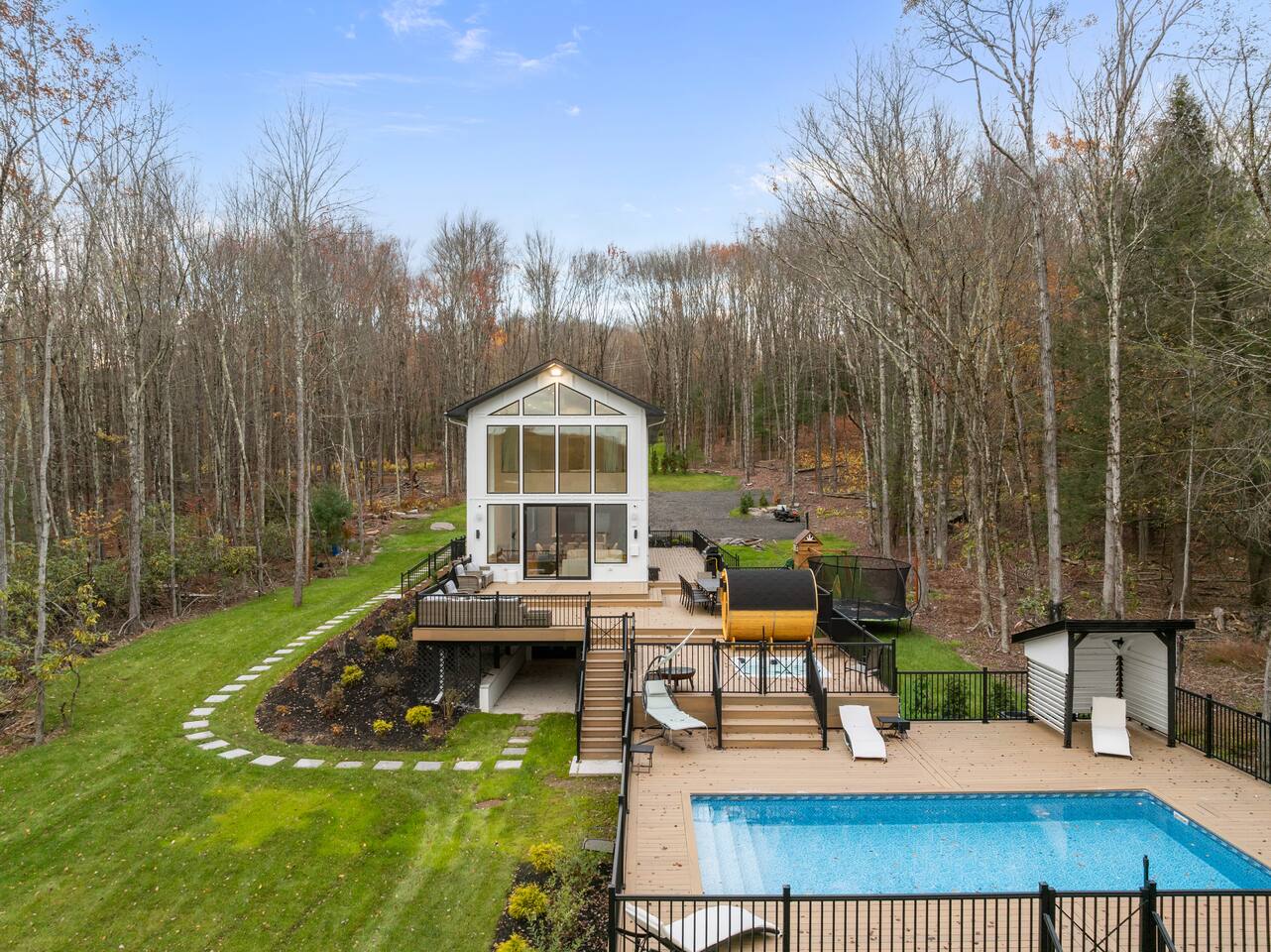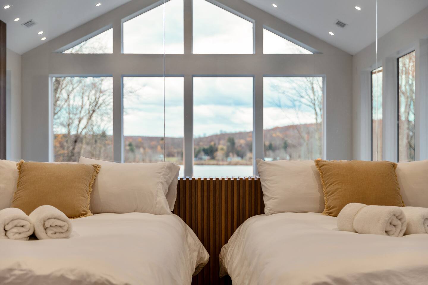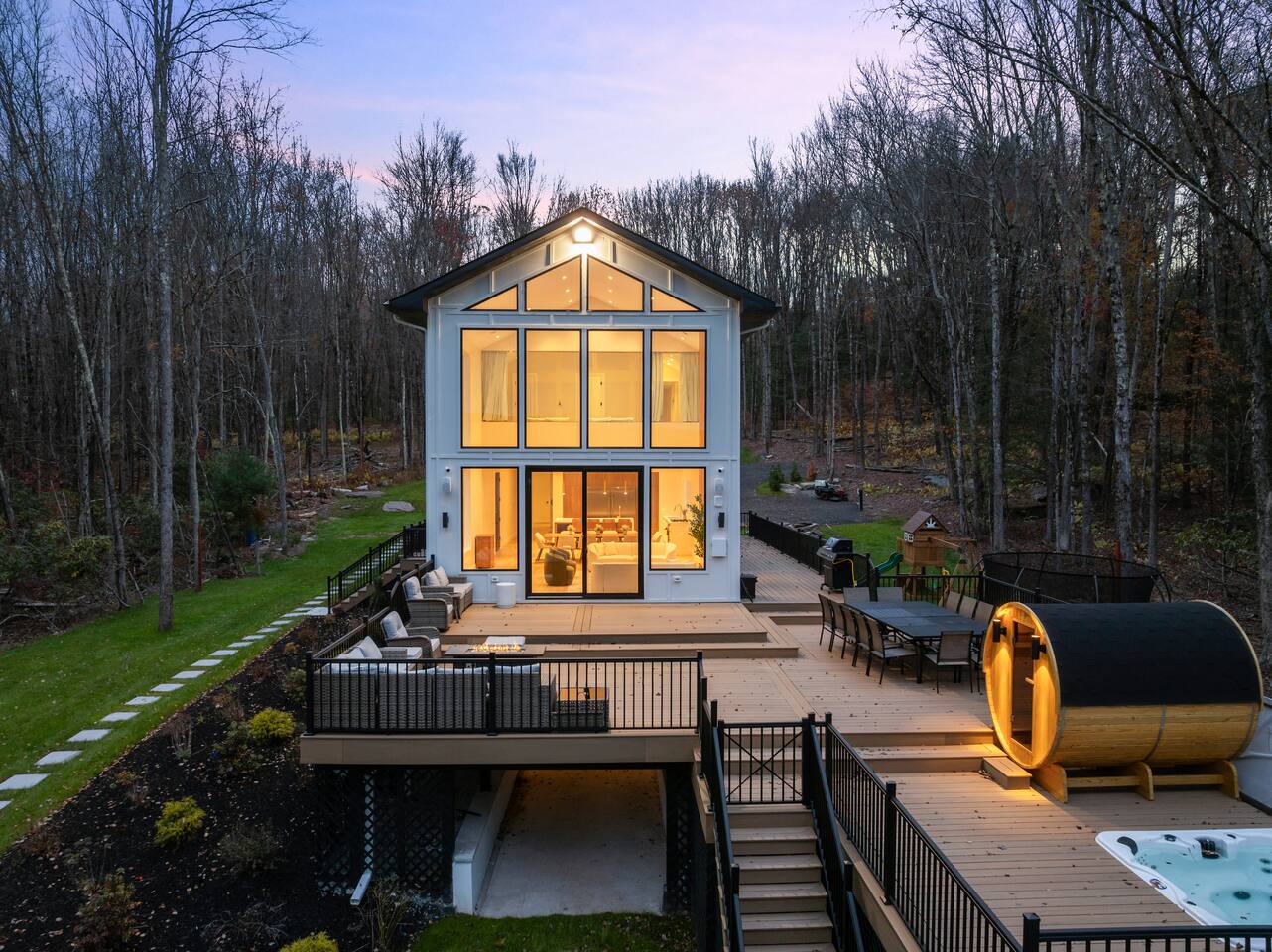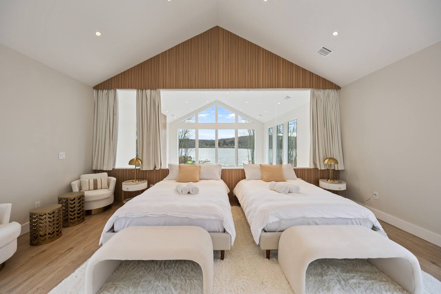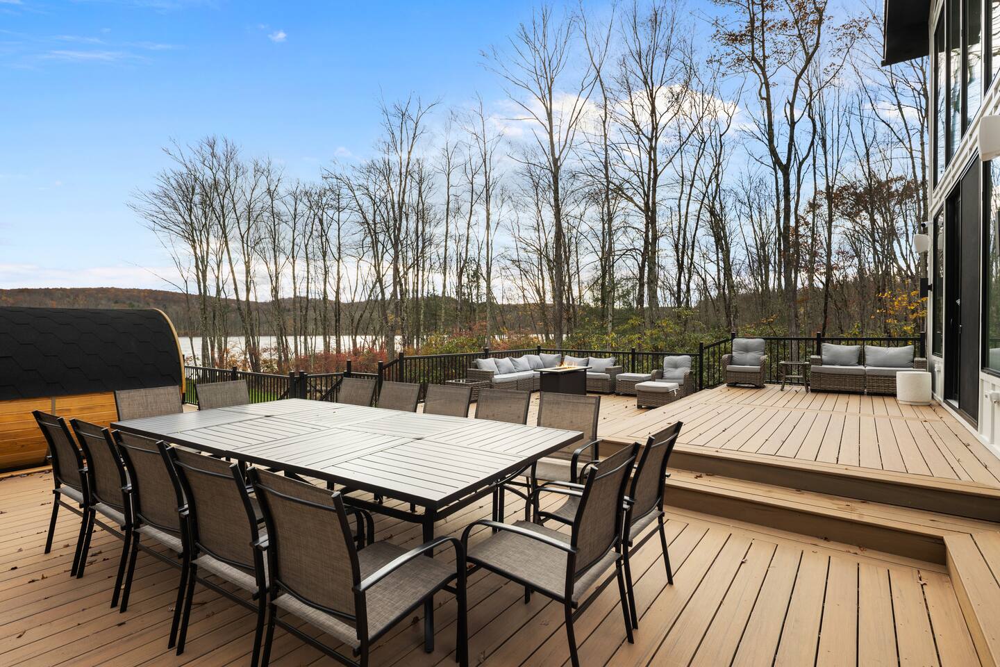 Escape to Lakefront Paradise, a private luxury retreat on a secluded lake in Woodridge, NY. Enjoy a pool, hot tub, sauna, and direct lake access with kayaks. The open-concept kitchen and living room feature panoramic lake views, while the spacious deck, playground, and trampoline create endless outdoor fun. Perfect for families and groups seeking relaxation, adventure, and total privacy.
