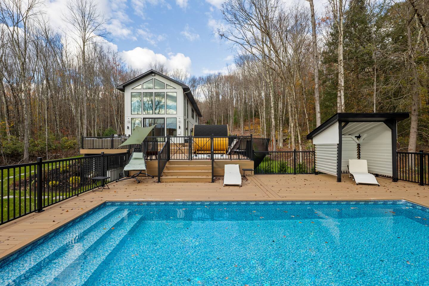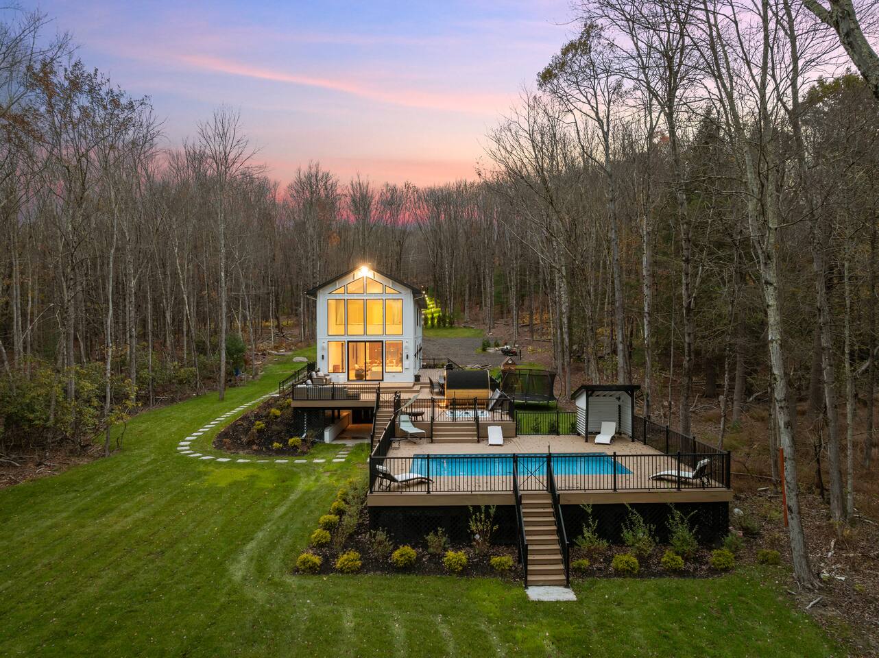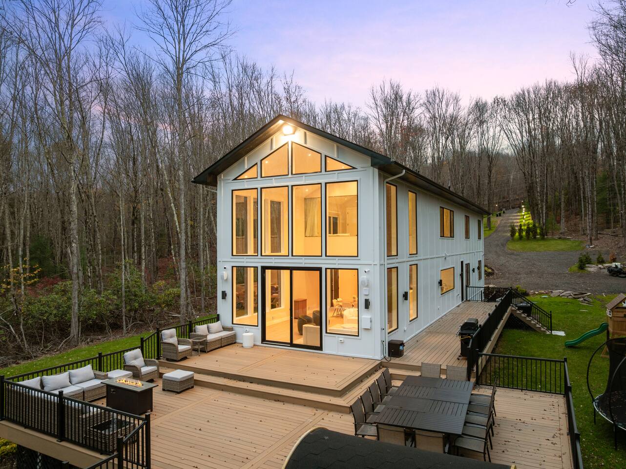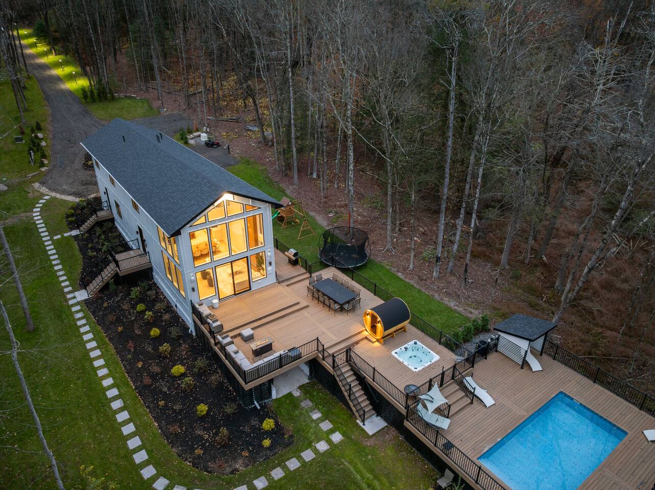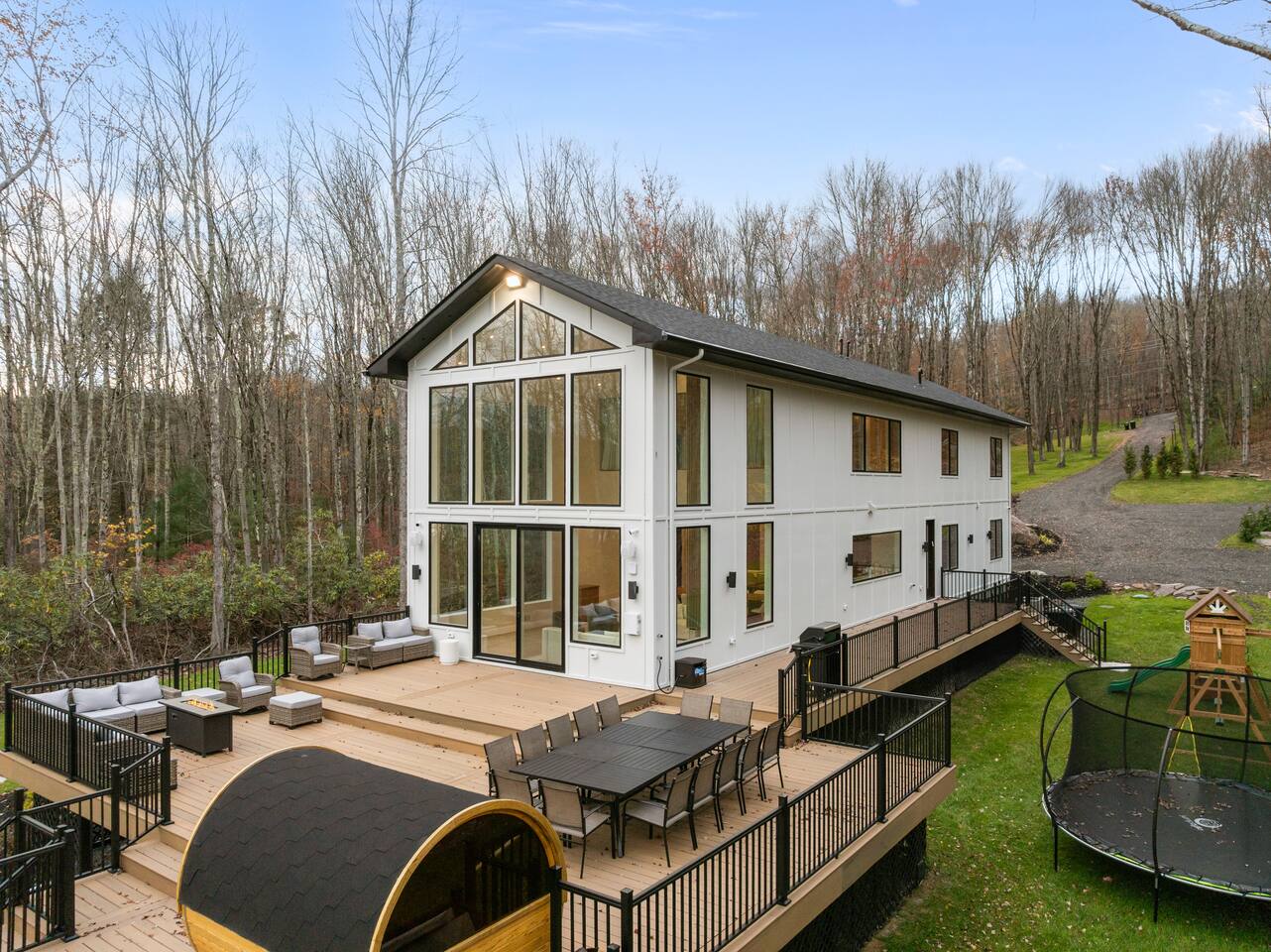 Escape to Lakefront Paradise, a private luxury retreat on a secluded lake in Woodridge, NY. Enjoy a pool, hot tub, sauna, and direct lake access with kayaks. The open-concept kitchen and living room feature panoramic lake views, while the spacious deck, playground, and trampoline create endless outdoor fun. Perfect for families and groups seeking relaxation, adventure, and total privacy.