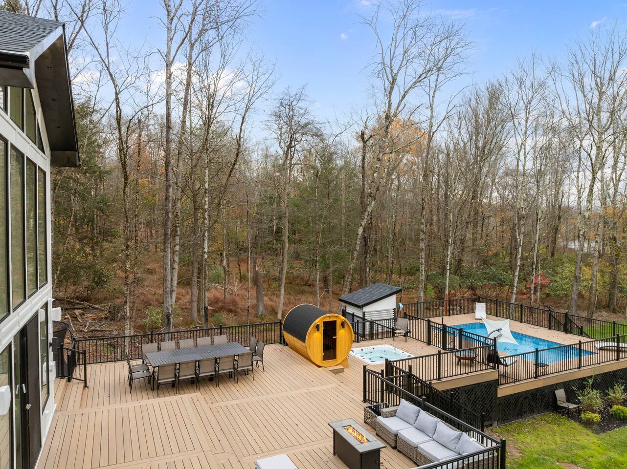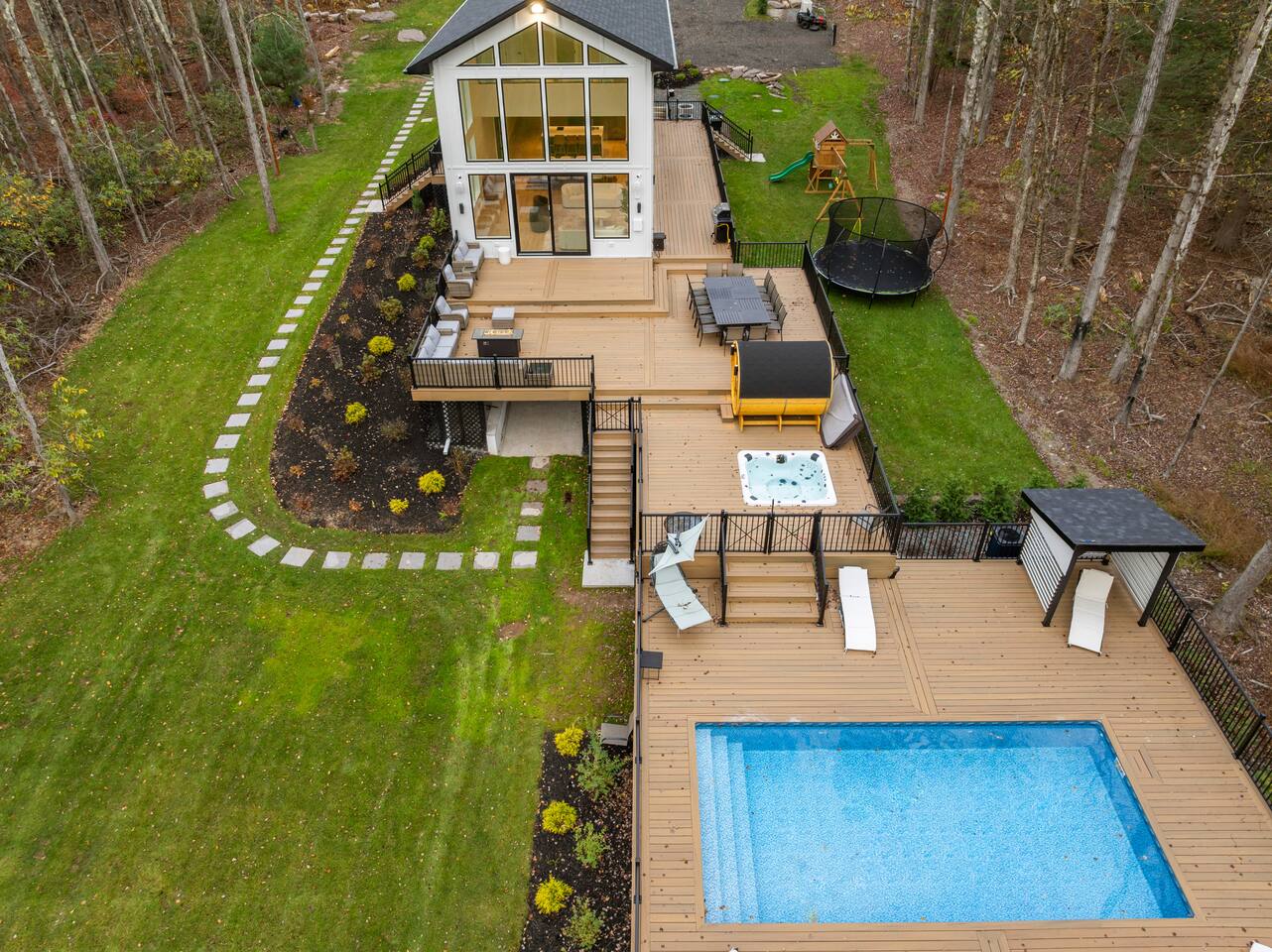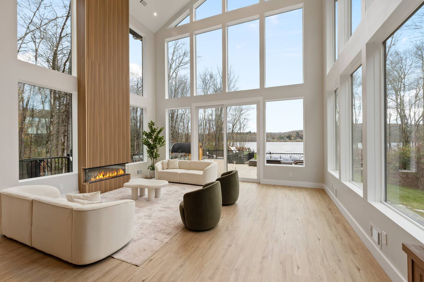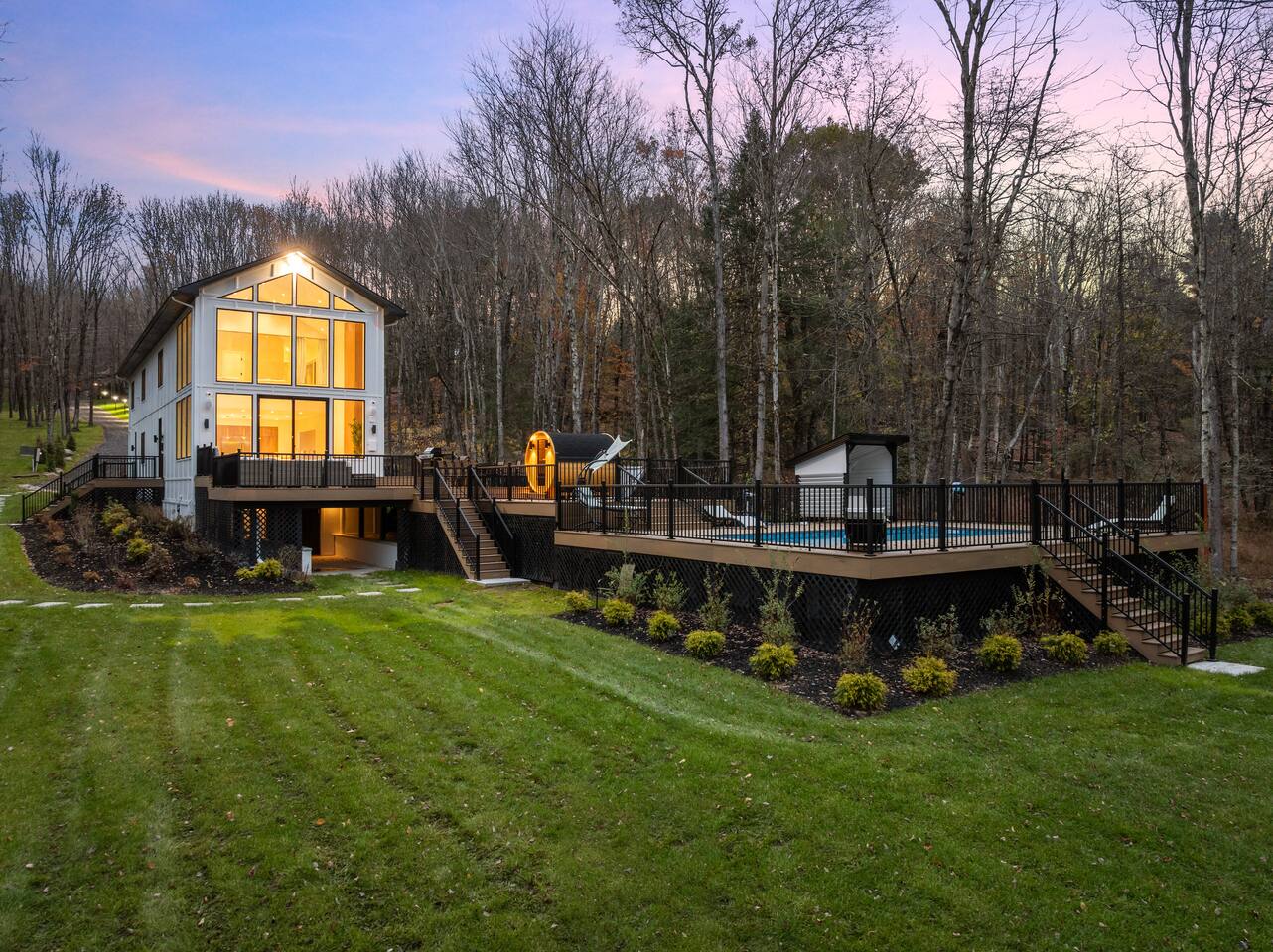 Escape to Lakefront Paradise, a private luxury retreat on a secluded lake in Woodridge, NY. Enjoy a pool, hot tub, sauna, and direct lake access with kayaks. The open-concept kitchen and living room feature panoramic lake views, while the spacious deck, playground, and trampoline create endless outdoor fun. Perfect for families and groups seeking relaxation, adventure, and total privacy.