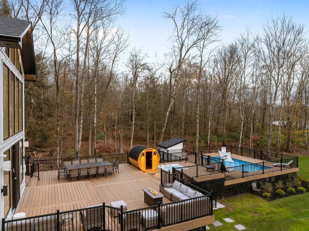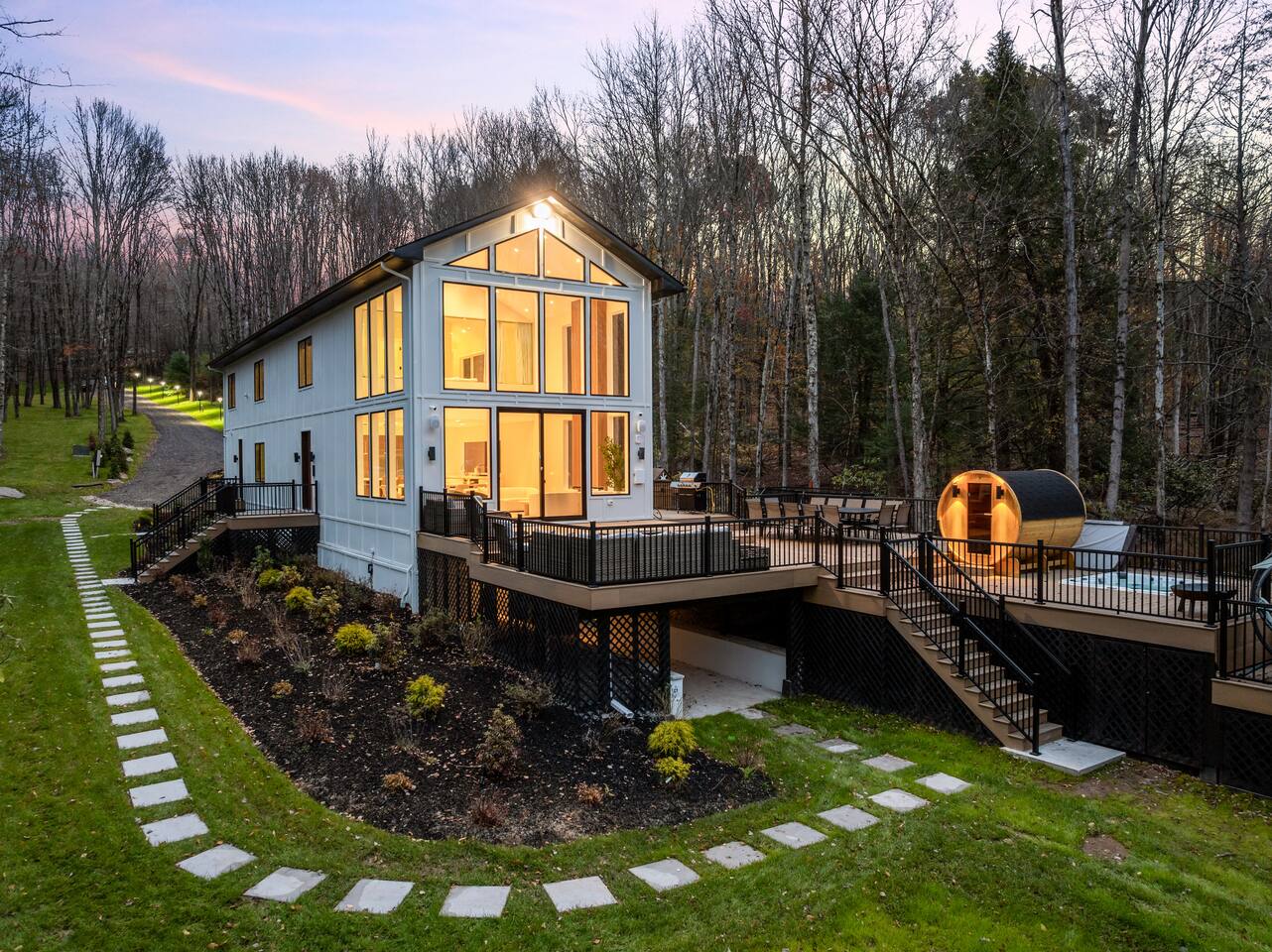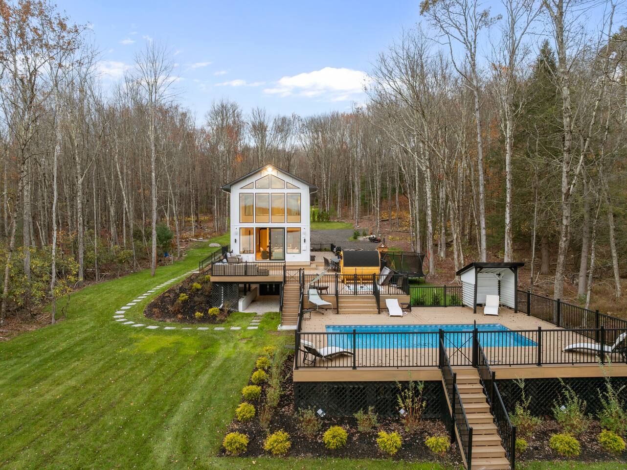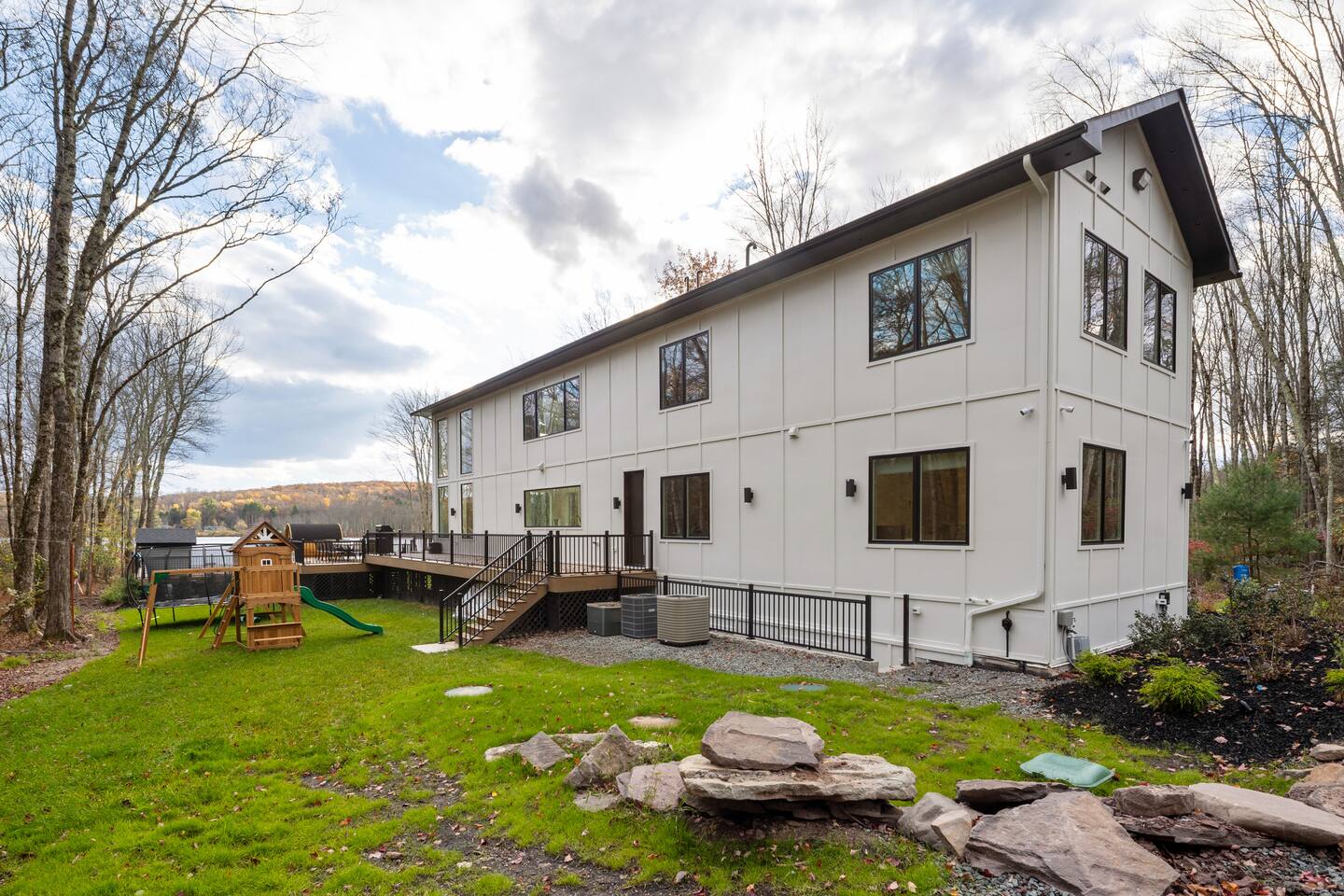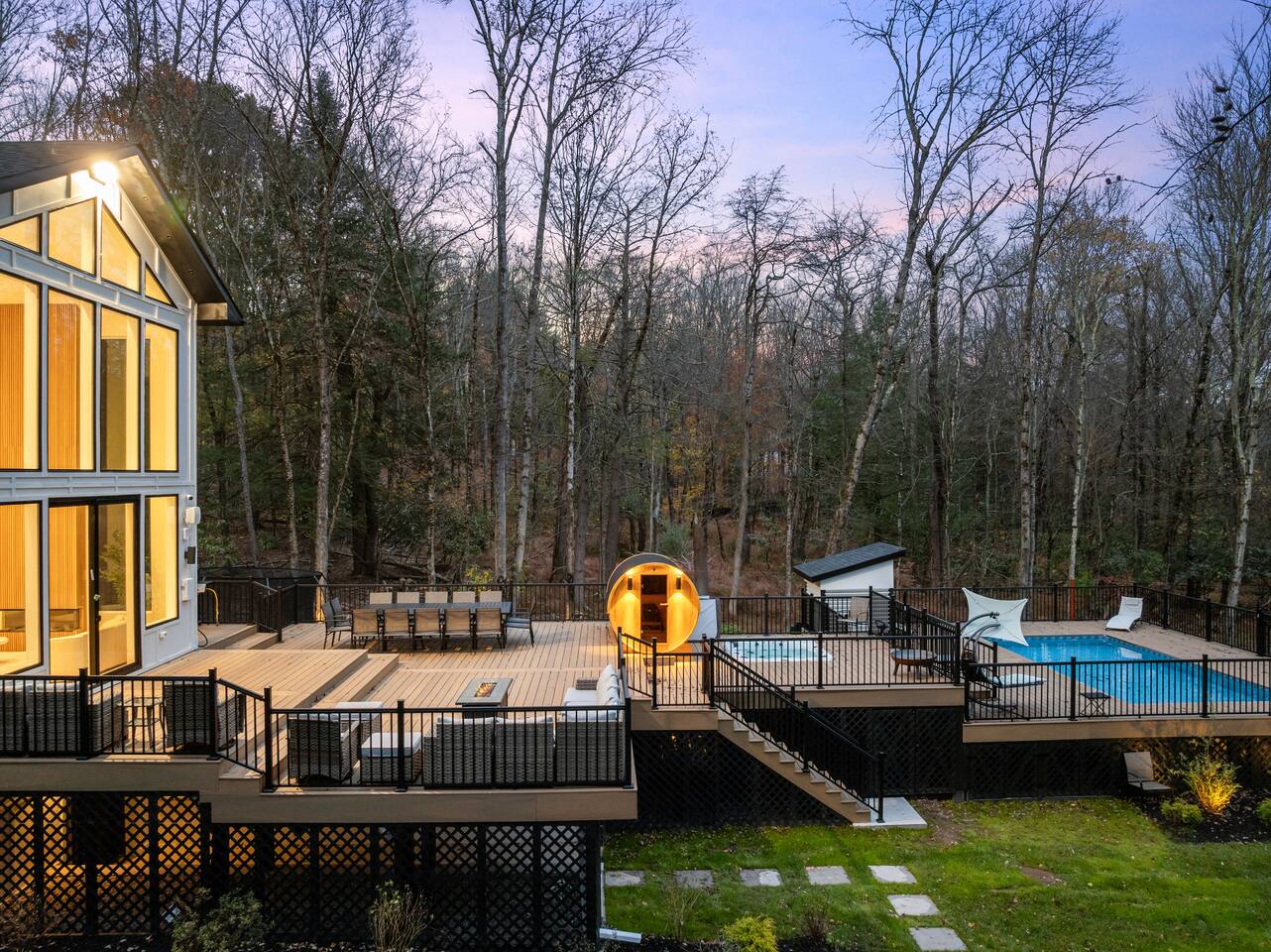 Escape to Lakefront Paradise, a private luxury retreat on a secluded lake in Woodridge, NY. Enjoy a pool, hot tub, sauna, and direct lake access with kayaks. The open-concept kitchen and living room feature panoramic lake views, while the spacious deck, playground, and trampoline create endless outdoor fun. Perfect for families and groups seeking relaxation, adventure, and total privacy.