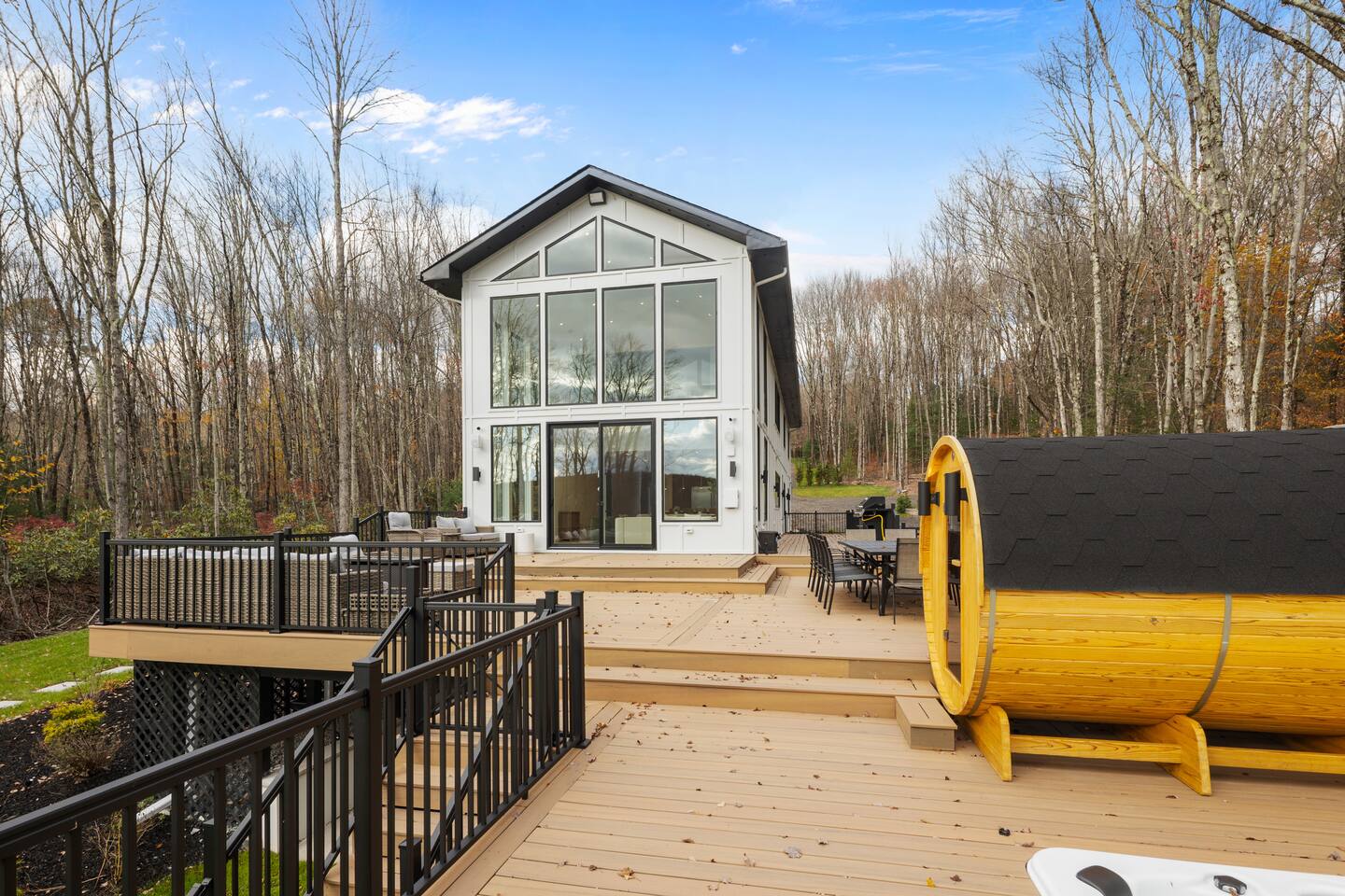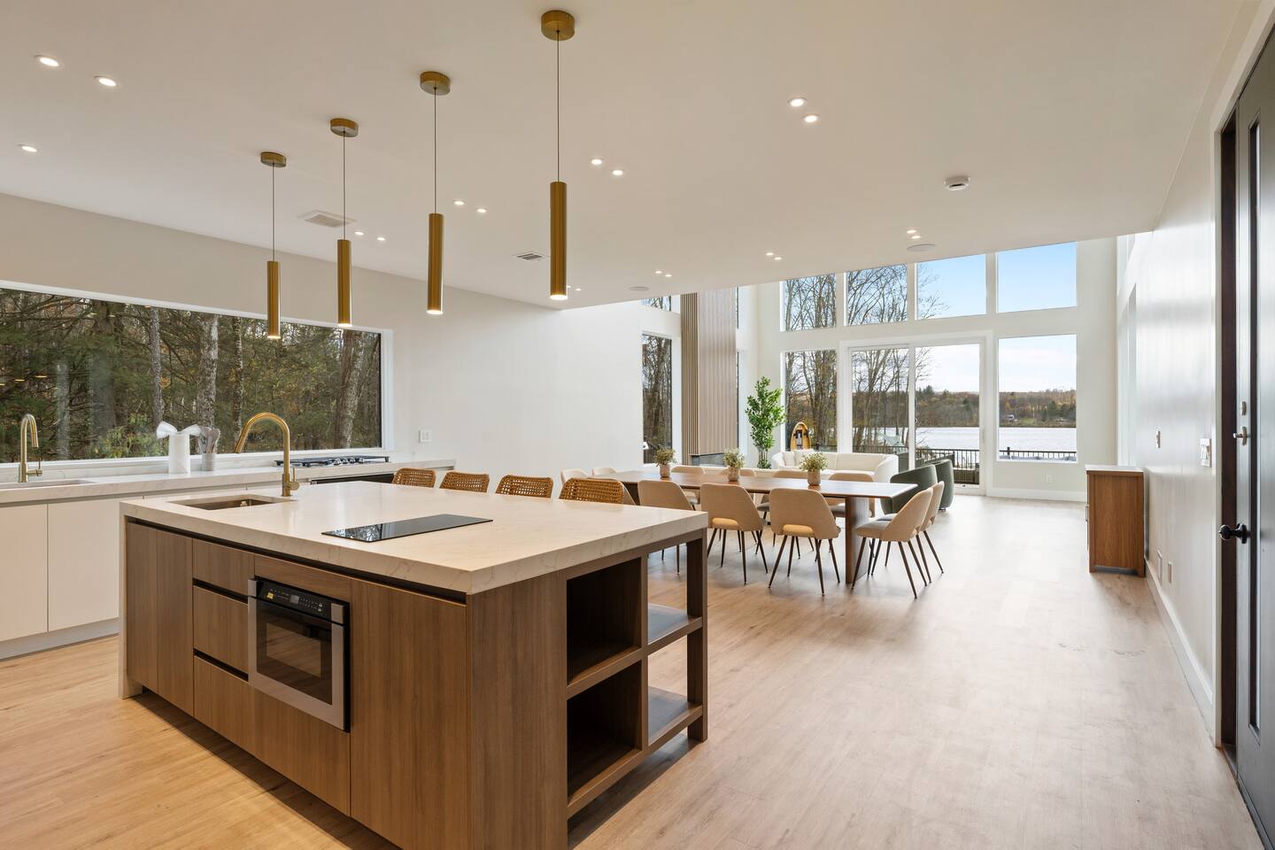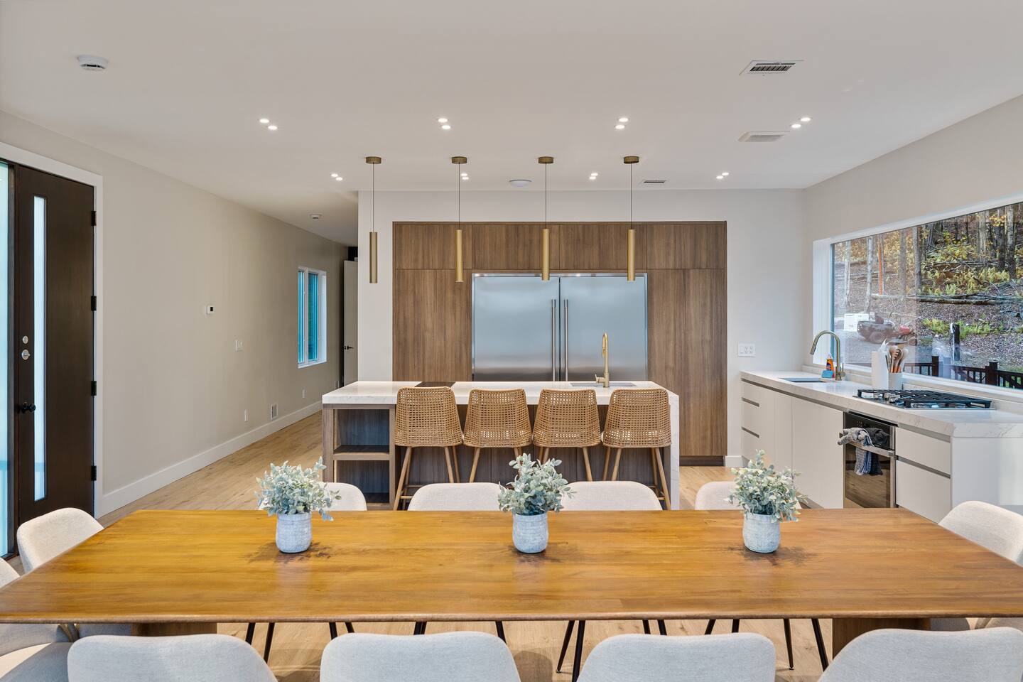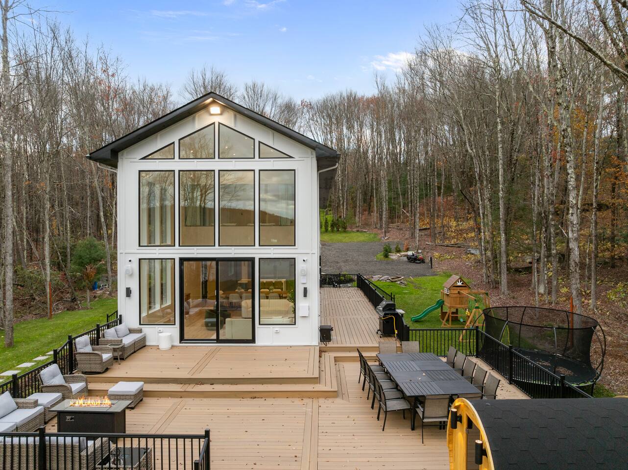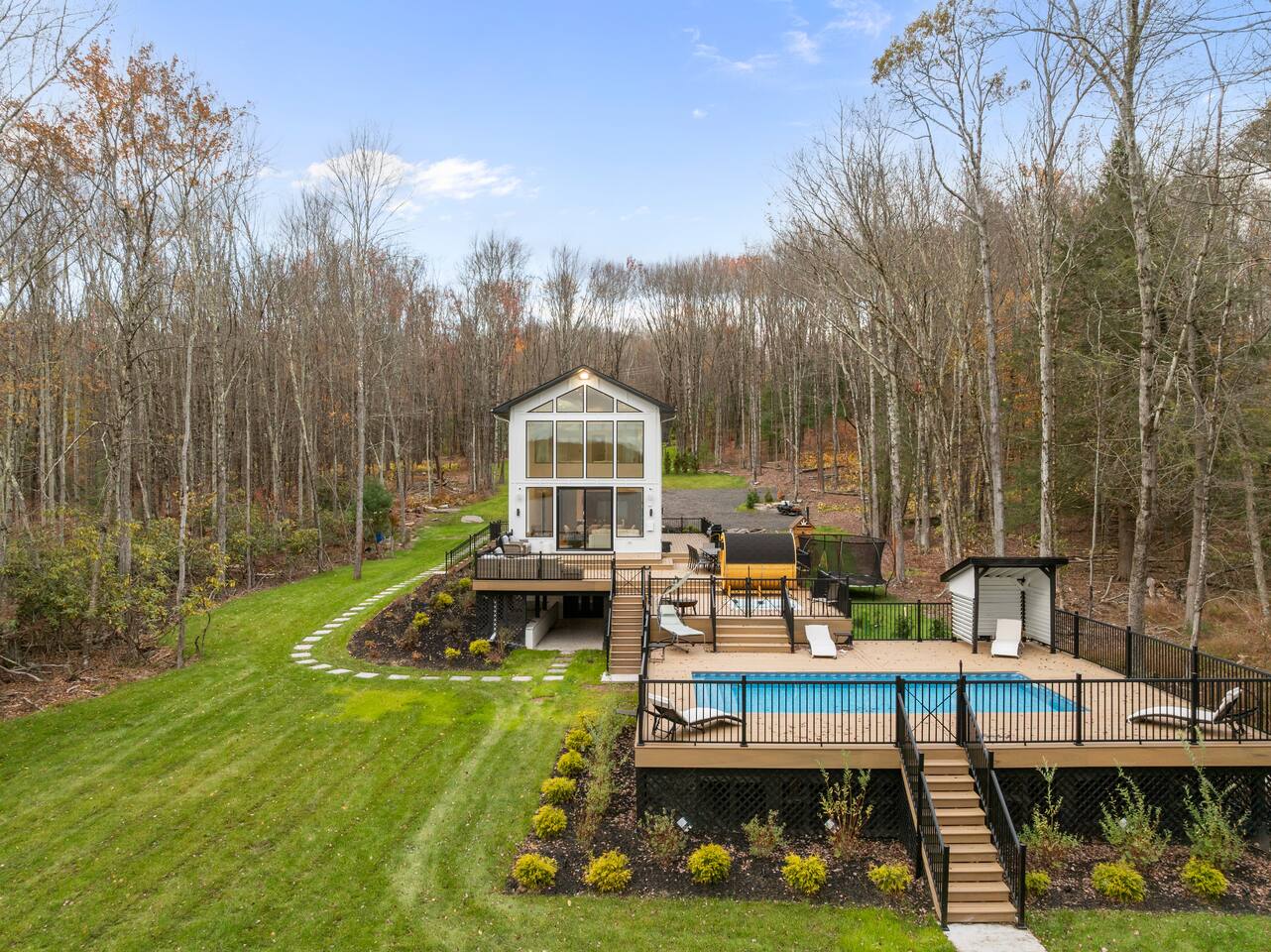 Escape to Lakefront Paradise, a private luxury retreat on a secluded lake in Woodridge, NY. Enjoy a pool, hot tub, sauna, and direct lake access with kayaks. The open-concept kitchen and living room feature panoramic lake views, while the spacious deck, playground, and trampoline create endless outdoor fun. Perfect for families and groups seeking relaxation, adventure, and total privacy.