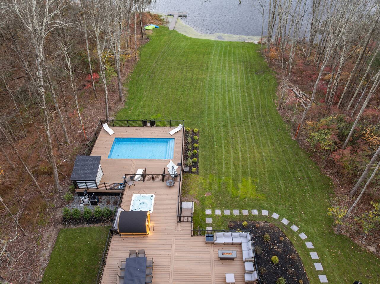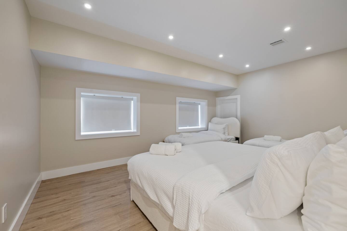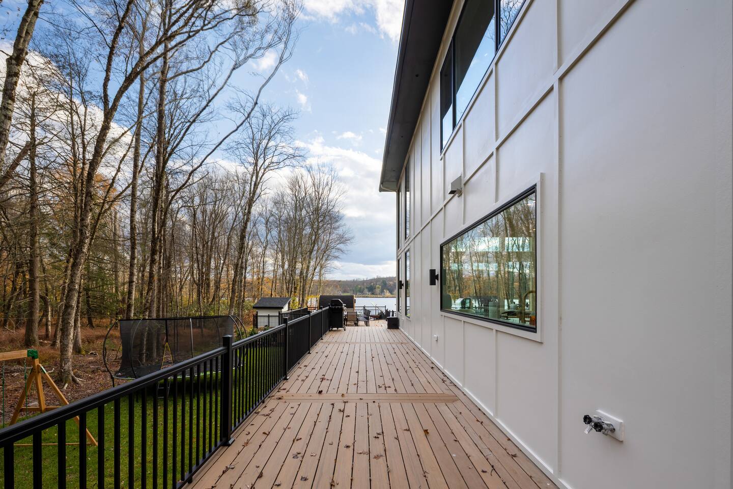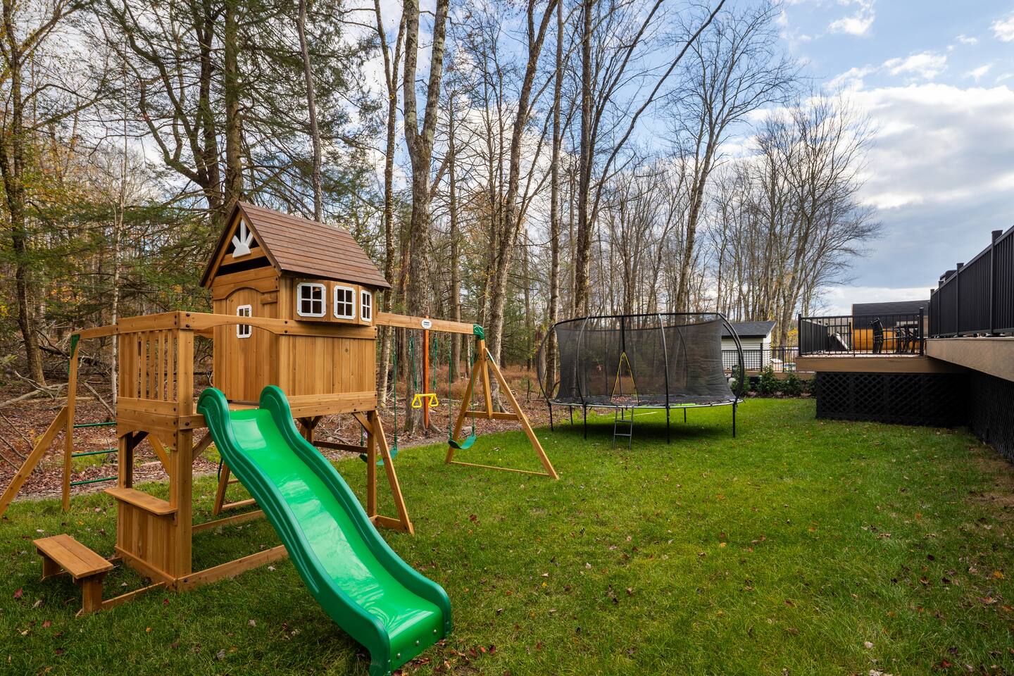 Guests have exclusive use of the entire property, including: • All 3 levels (8 bedrooms, 5 bathrooms, game areas) • Deck, pool, hot tub, and sauna • Private lake access with kayaks • Playground, trampoline, and large yard • Driveway and parking for multiple cars Everything is completely private — no shared spaces.