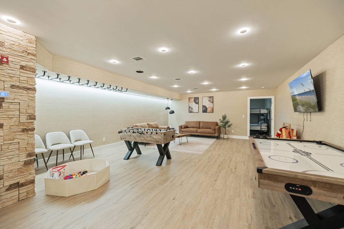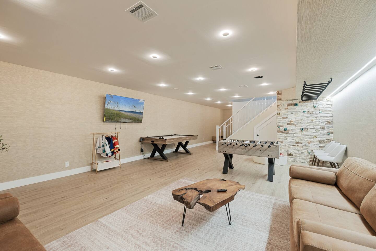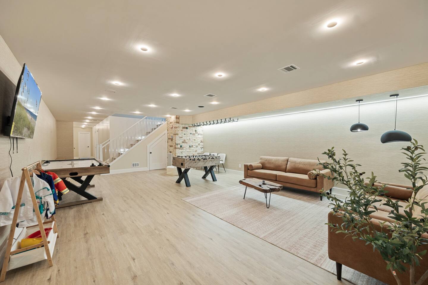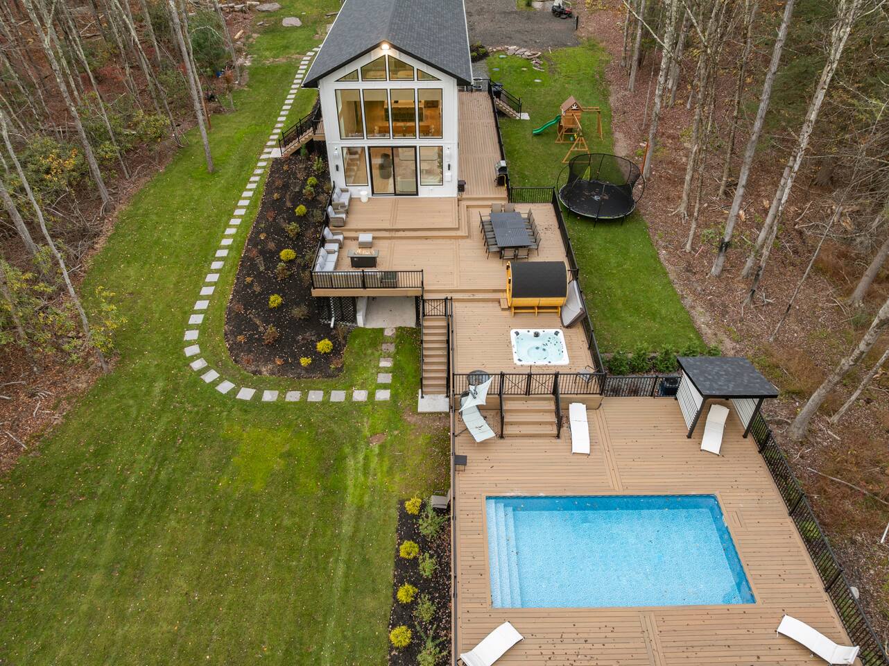 Guests have exclusive use of the entire property, including: • All 3 levels (8 bedrooms, 5 bathrooms, game areas) • Deck, pool, hot tub, and sauna • Private lake access with kayaks • Playground, trampoline, and large yard • Driveway and parking for multiple cars Everything is completely private — no shared spaces.