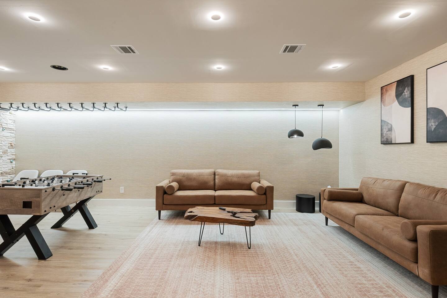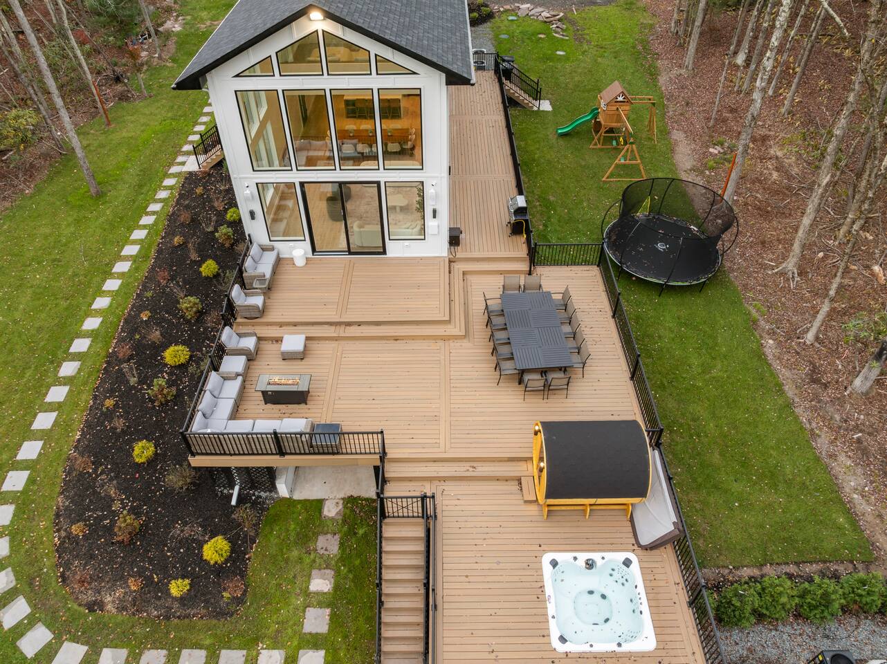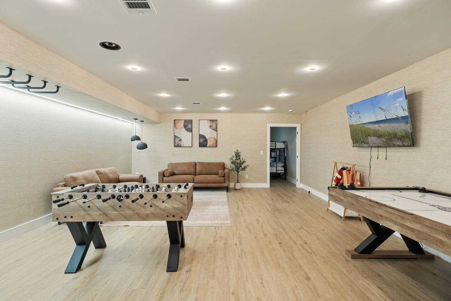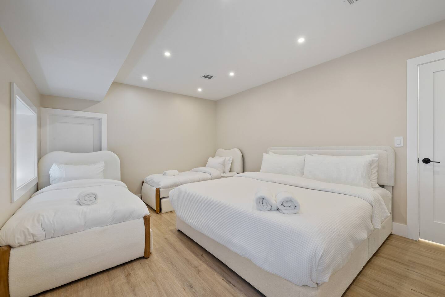 Guests have exclusive use of the entire property, including: • All 3 levels (8 bedrooms, 5 bathrooms, game areas) • Deck, pool, hot tub, and sauna • Private lake access with kayaks • Playground, trampoline, and large yard • Driveway and parking for multiple cars Everything is completely private — no shared spaces.
