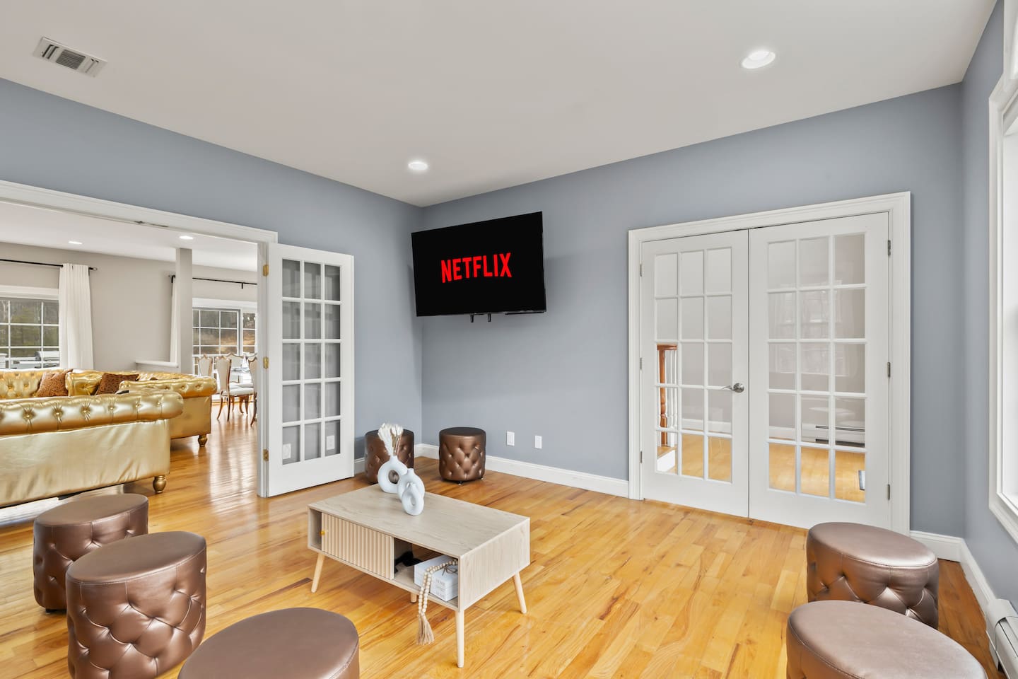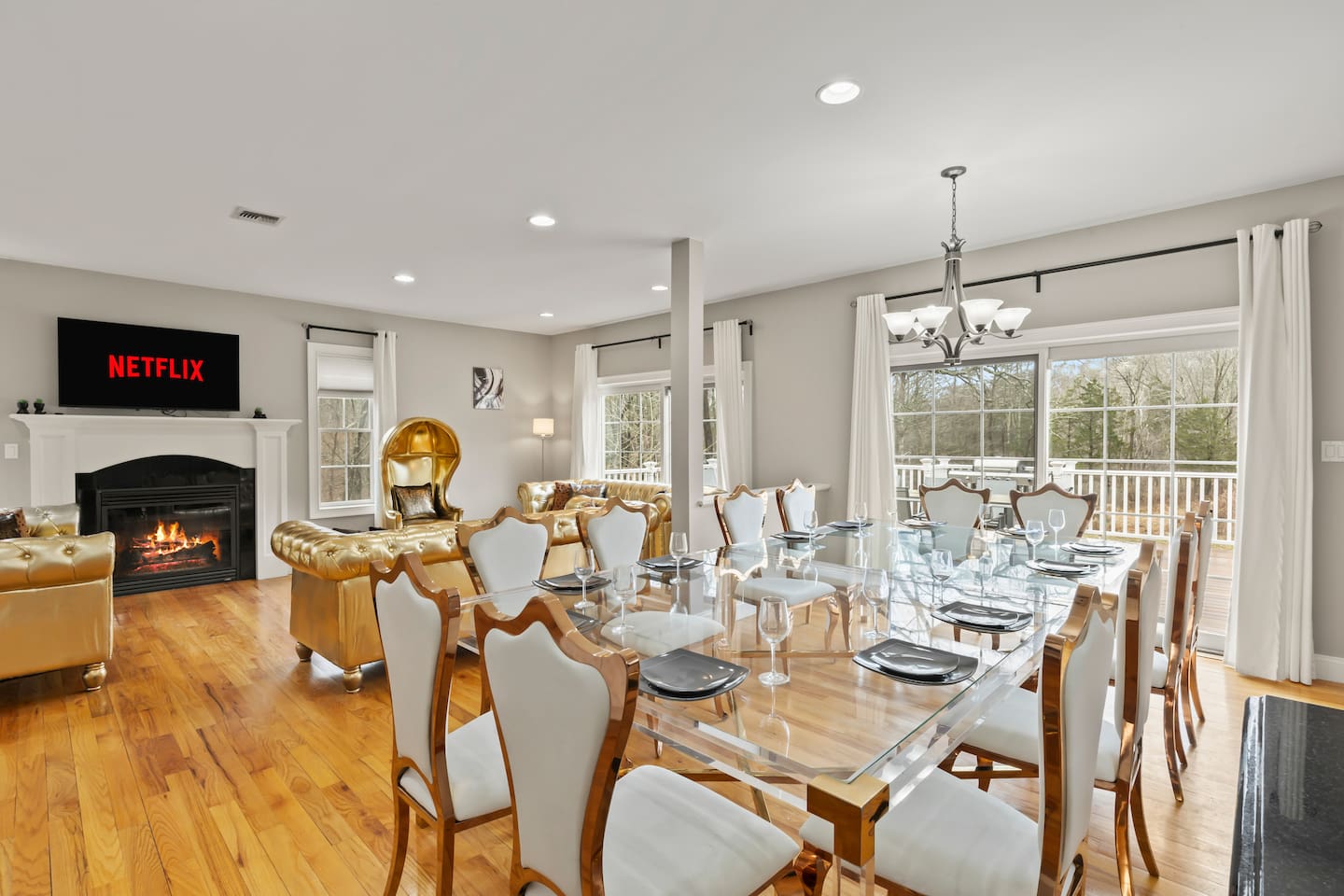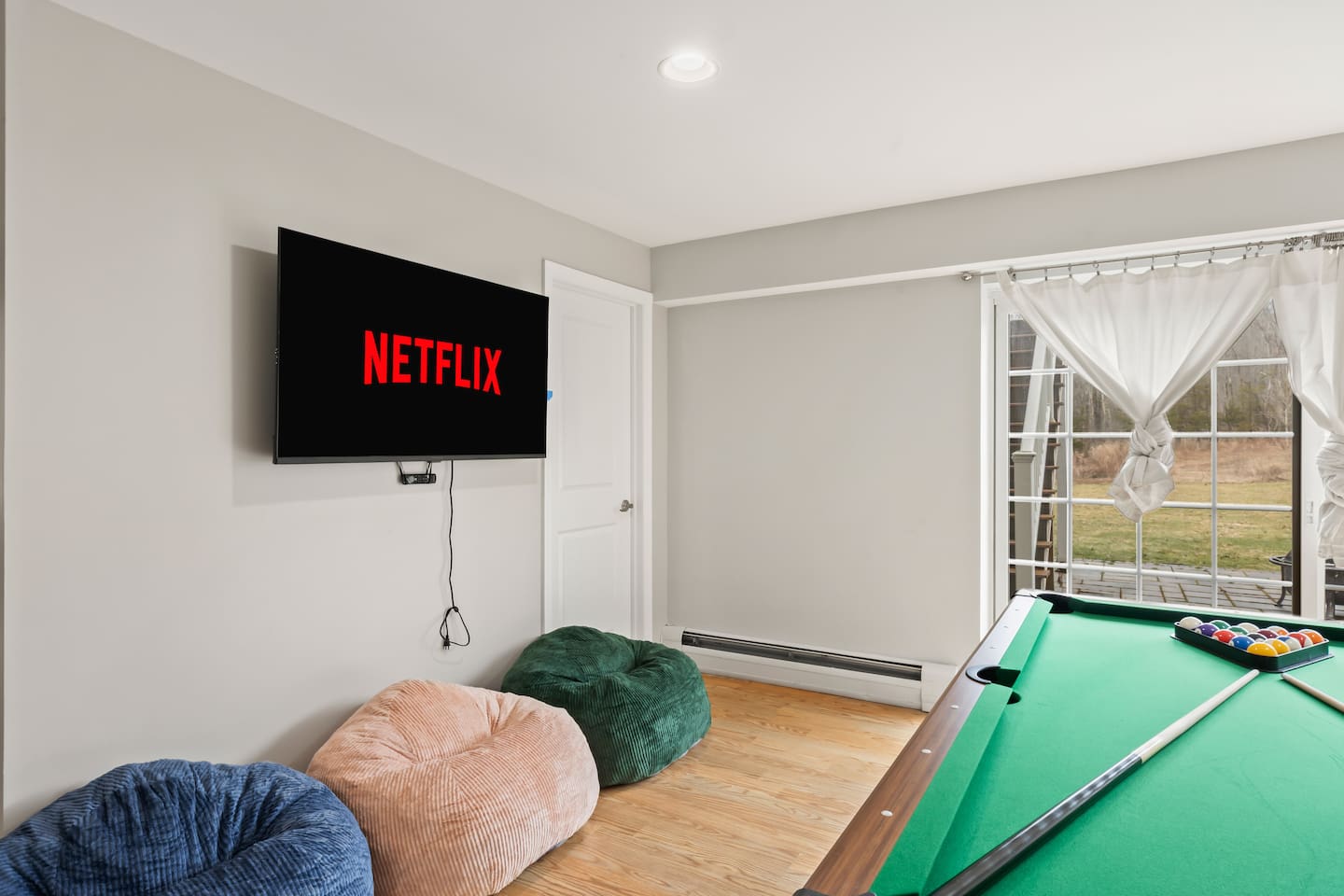 Guests will have private use of the entire home during their stay, including all bedrooms, bathrooms, kitchen, living areas, game room, and gym. You’ll also be able to enjoy the outdoor areas such as the deck with seating and grill, backyard space and seasonal pool. The property is fully reserved for your group, allowing you to enjoy the space comfortably and privately throughout your visit.