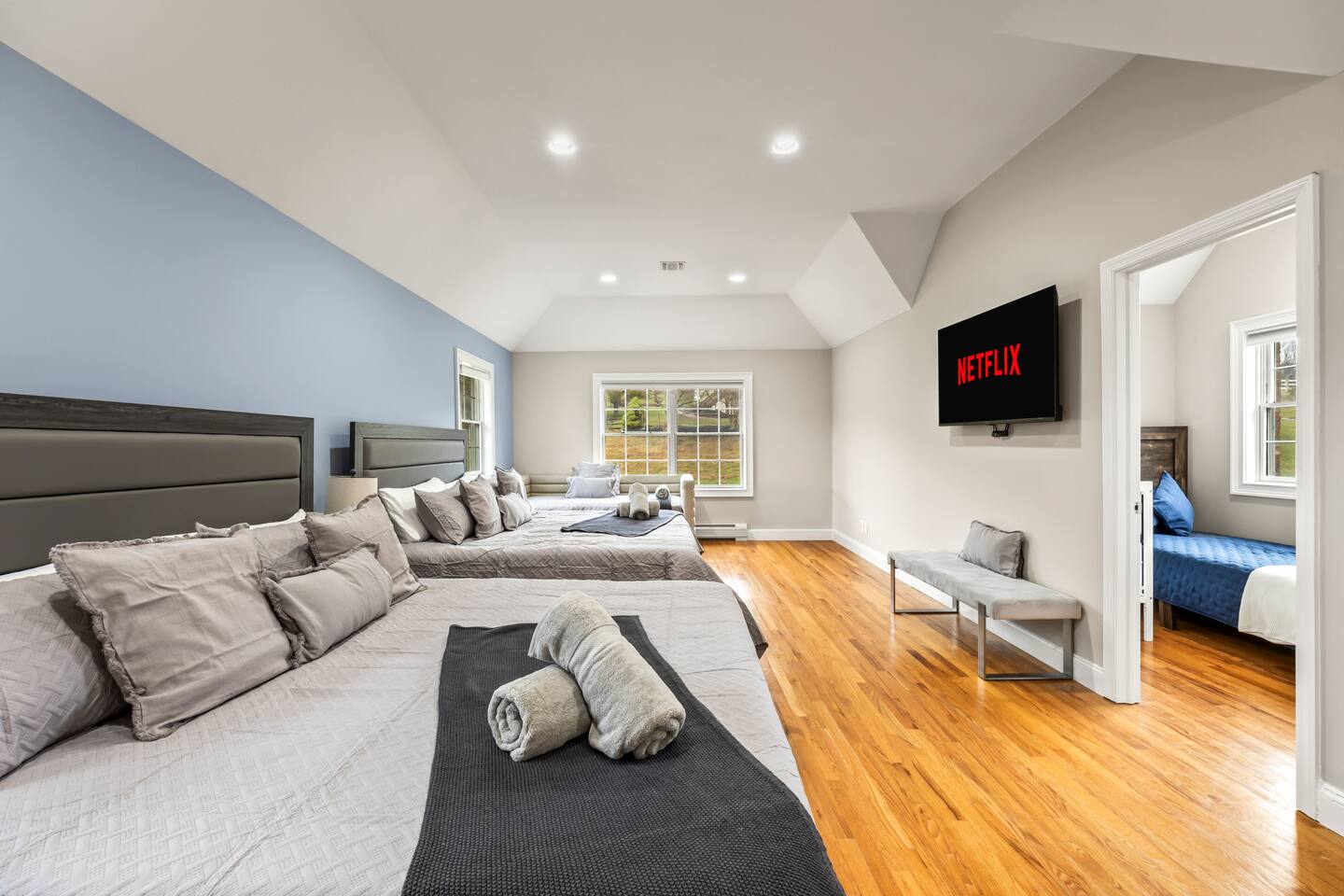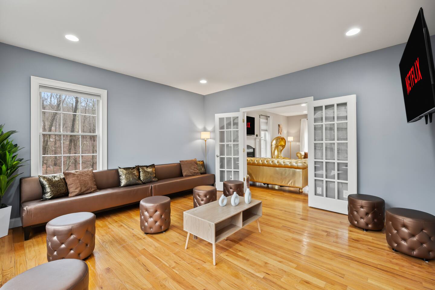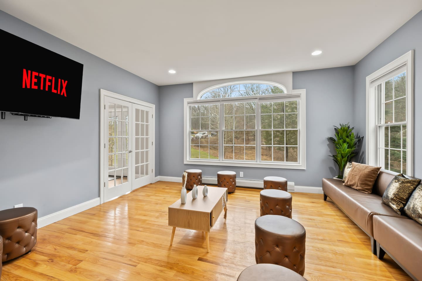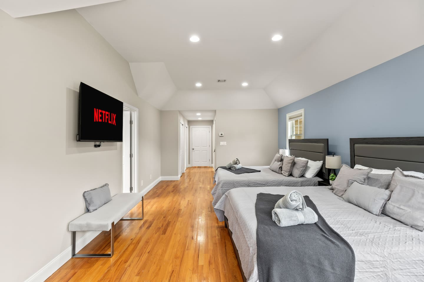 Guests will have private use of the entire home during their stay, including all bedrooms, bathrooms, kitchen, living areas, game room, and gym. You’ll also be able to enjoy the outdoor areas such as the deck with seating and grill, backyard space and seasonal pool. The property is fully reserved for your group, allowing you to enjoy the space comfortably and privately throughout your visit.