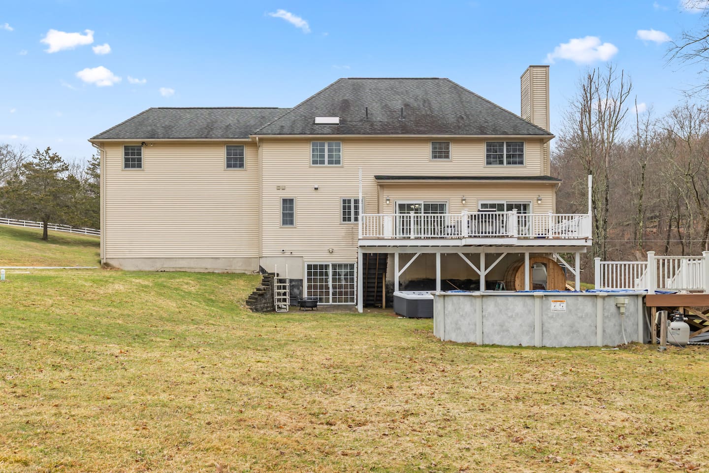 This large multi-level home offers a comfortable layout with plenty of space for groups to relax and gather. The main level includes a fully equipped kitchen, dining area, and two separate living rooms, creating multiple areas to spend time together. This floor also features one bedroom and a full bathroom, along with access to a deck with outdoor seating and a grill. Upstairs you’ll find five bedrooms and two full bathrooms, providing convenient accommodations for families and groups. The lower level includes five additional bedrooms, a full bathroom, and a game room for entertainment. From this level, guests can access the backyard, which includes the pool. The home also includes a fitness room and several common areas, offering both shared space and privacy throughout the stay.