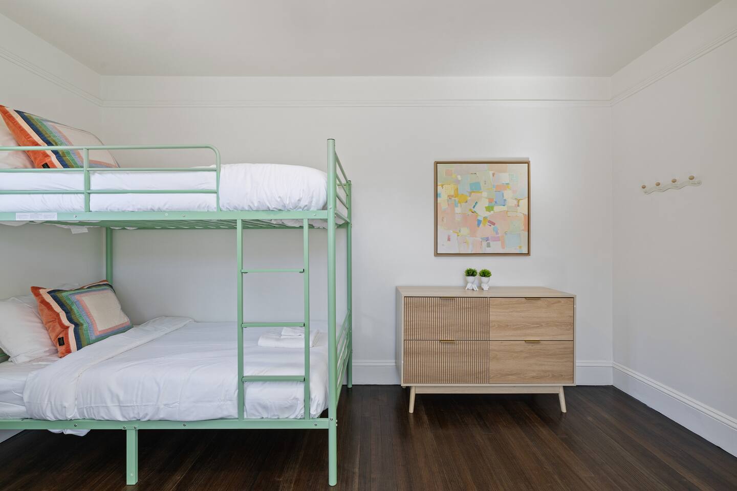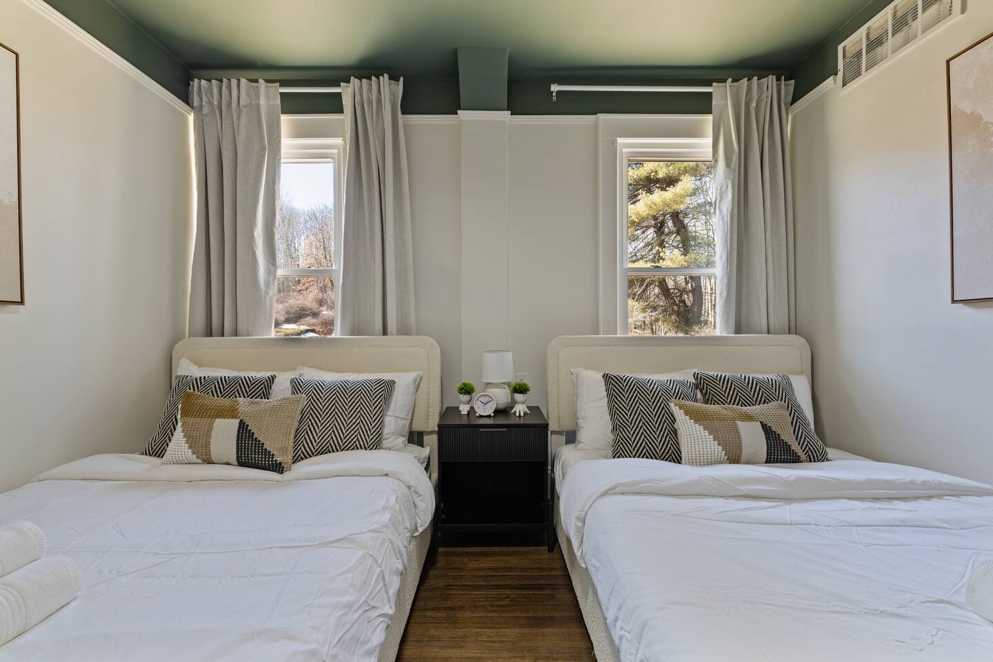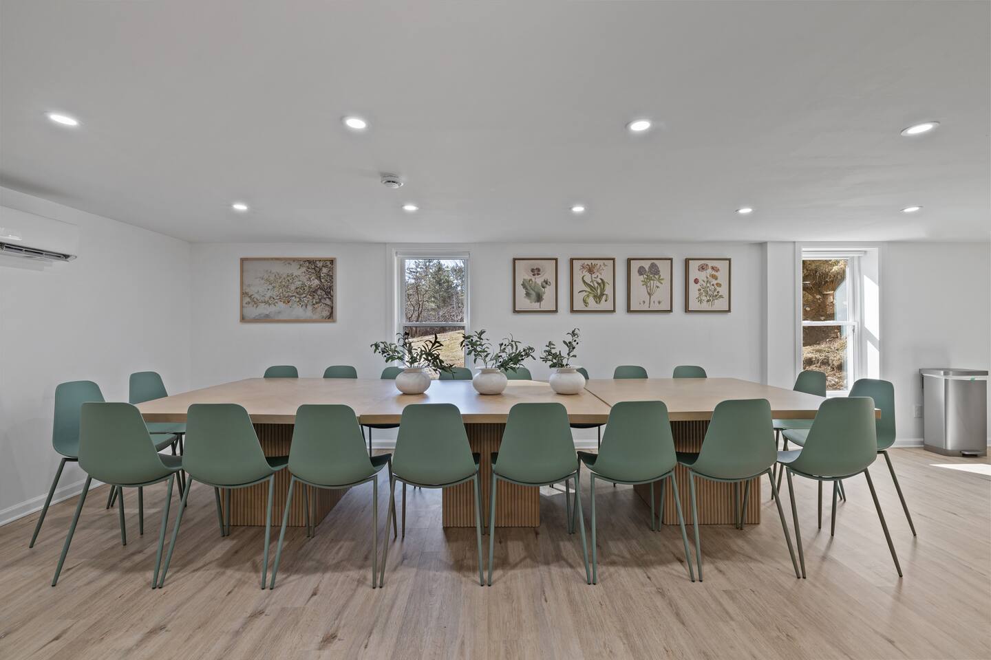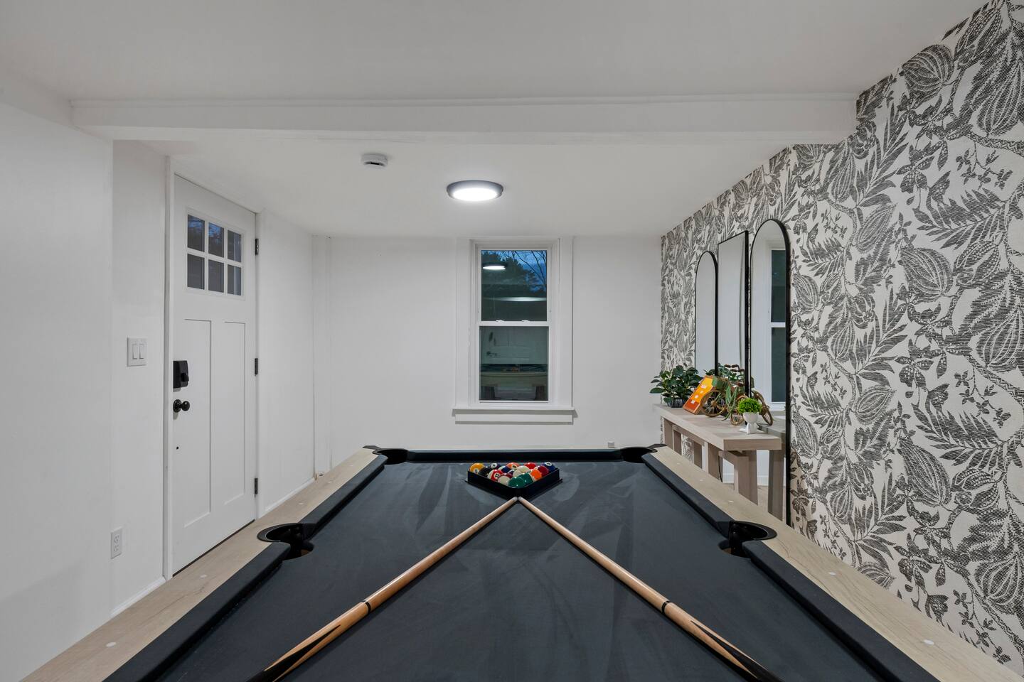 First Floor: Step into a warm and inviting space featuring a cozy living room, a dining area perfect for shared meals, and a fully equipped kitchen stocked with everything you need. A mudroom and laundry room with a washer and dryer add extra convenience, and a half bathroom completes this level. Second Floor: This floor offers two lounge areas, each with a sofa bed, perfect for relaxing or additional sleeping space. You'll find: A room with two twin beds. A room with two full-size beds and a full bathroom, leading into another room with a full-size beds. A red room with a queen-size bed and a private full bathroom, which connects to a room with a twin-on-twin bunk beds. An additional room with a twin bed. Please note: Two back bedrooms on this floor require passage through adjacent rooms for access. Third Floor: This floor also features two lounge areas, each with a sofa bed for extra sleeping space. You'll find: A room with two twin-on-twin bunk beds. A lounge area with a full bathroom and a sofa bed, leading into a room with a queen-size bed. A room with two twin beds. Another lounge area with a full bathroom and a sofa bed, leading into a bedroom with two full-size beds. This spacious home is designed to accommodate groups comfortably, ensuring a memorable and relaxing stay. We look forward to hosting you!
