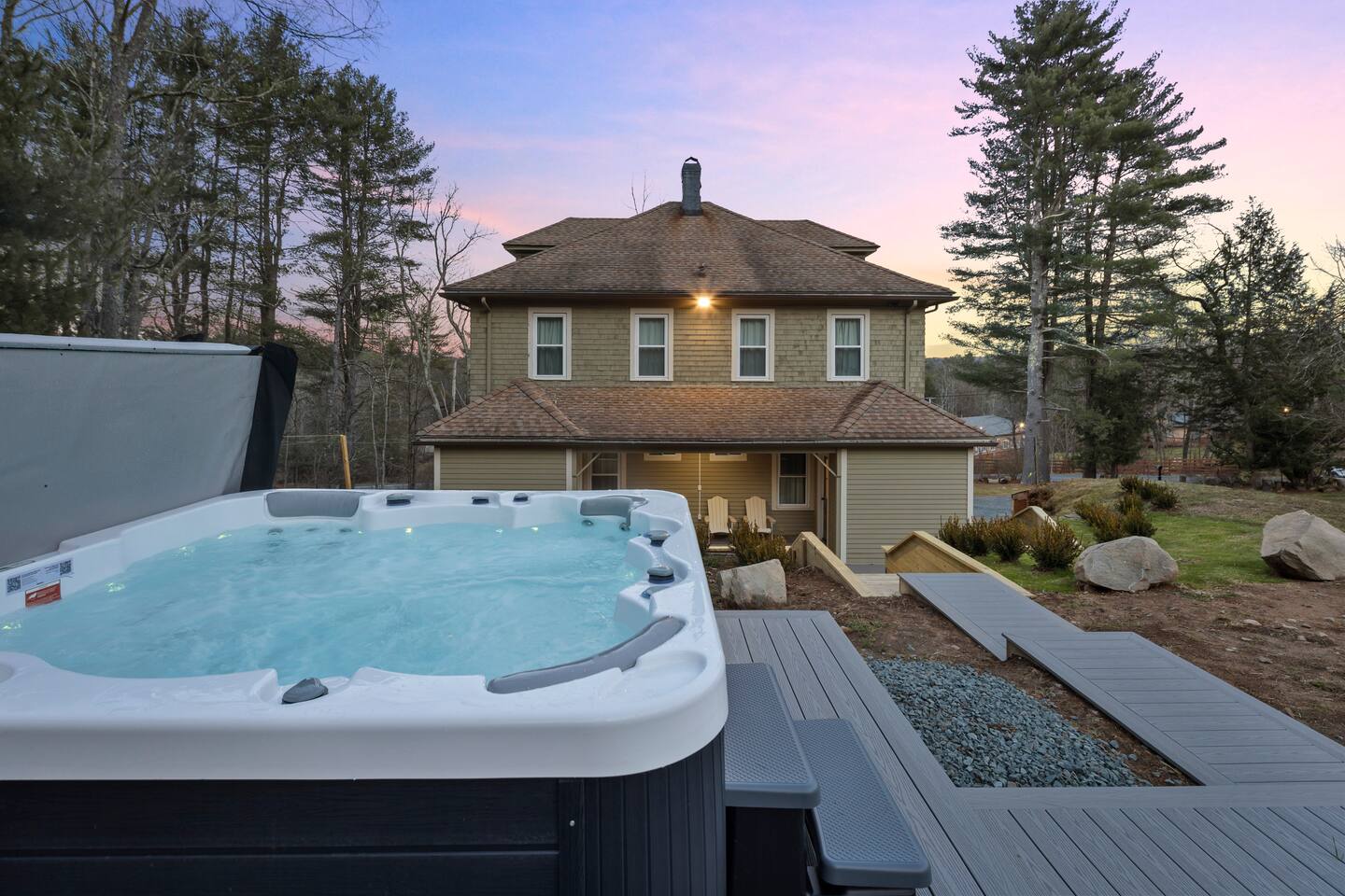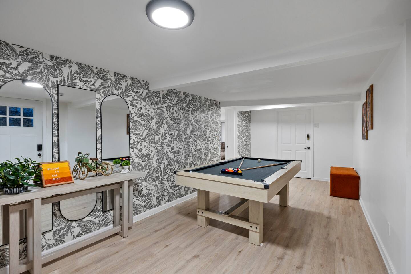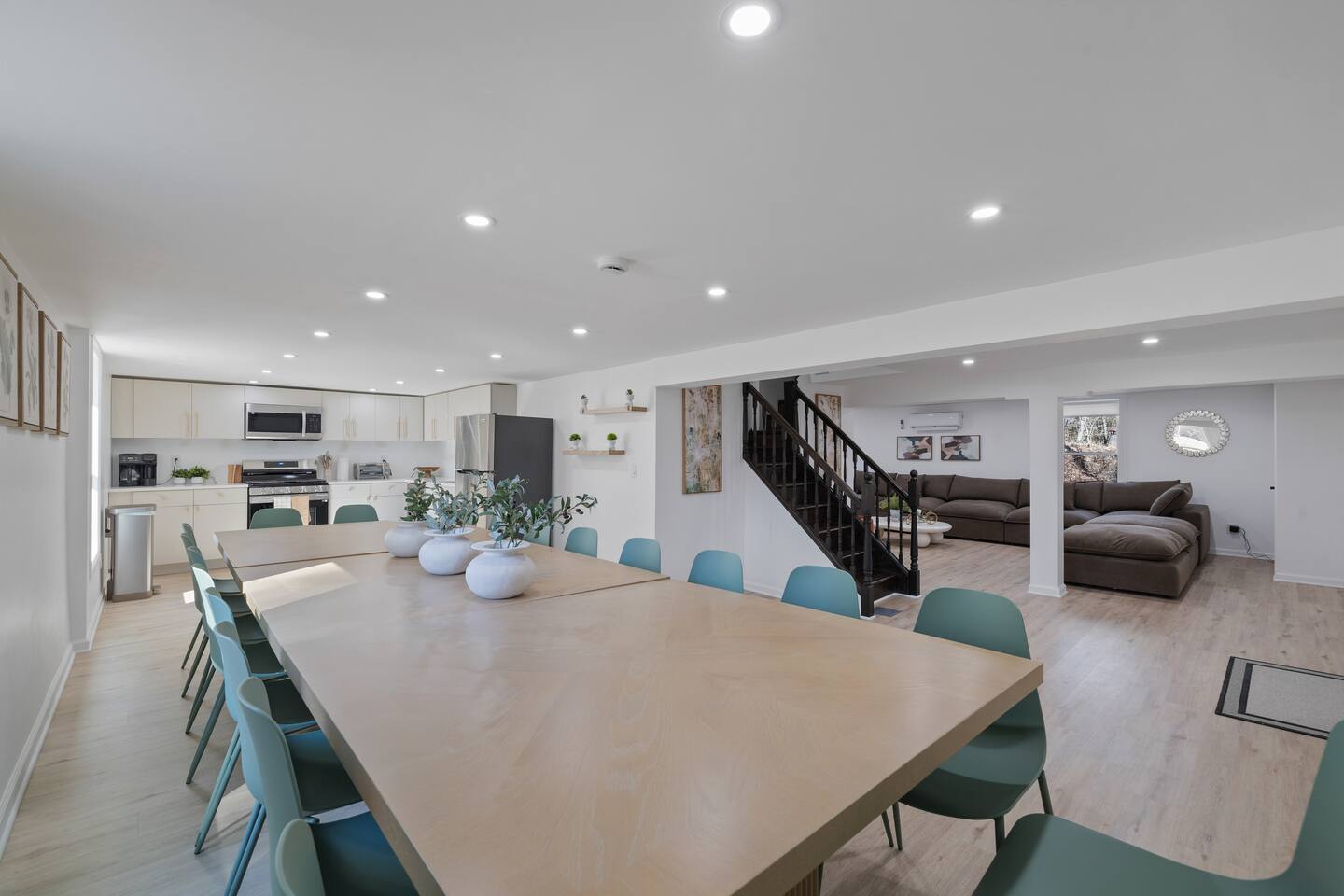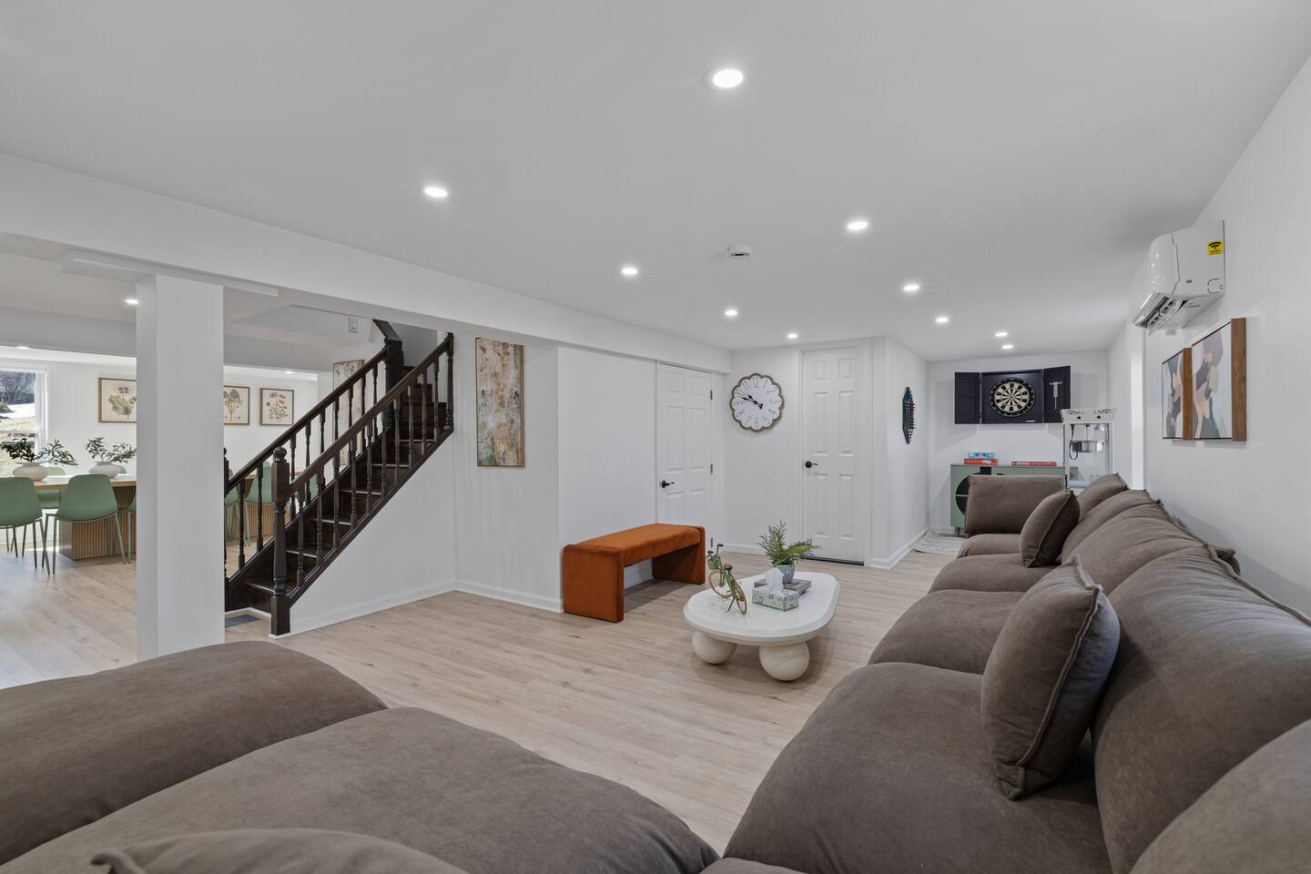 Guests have full access to all areas of the home, including the spacious living room, dining area, fully equipped kitchen, and mudroom. Enjoy the laundry room with washer and dryer for your convenience. You can explore all the bedrooms and bathrooms on the 2nd and 3rd floors, and relax in the cozy lounges in both wings. Guests are welcome to enjoy the outdoor spaces and common areas as well. Please note that some storage spaces and utility areas are private and not for guest use.