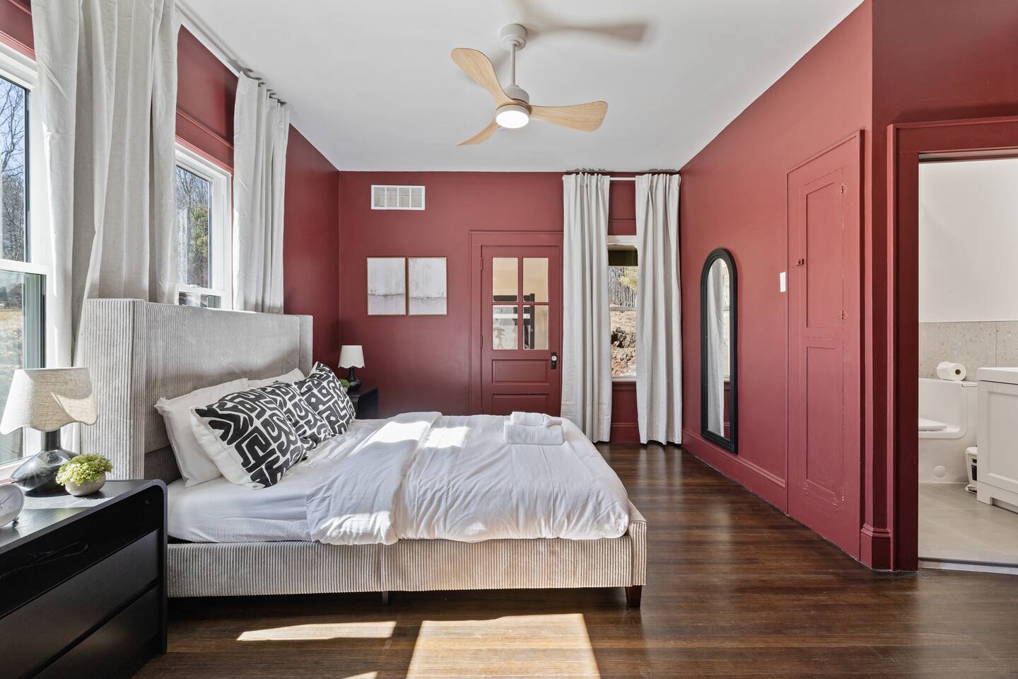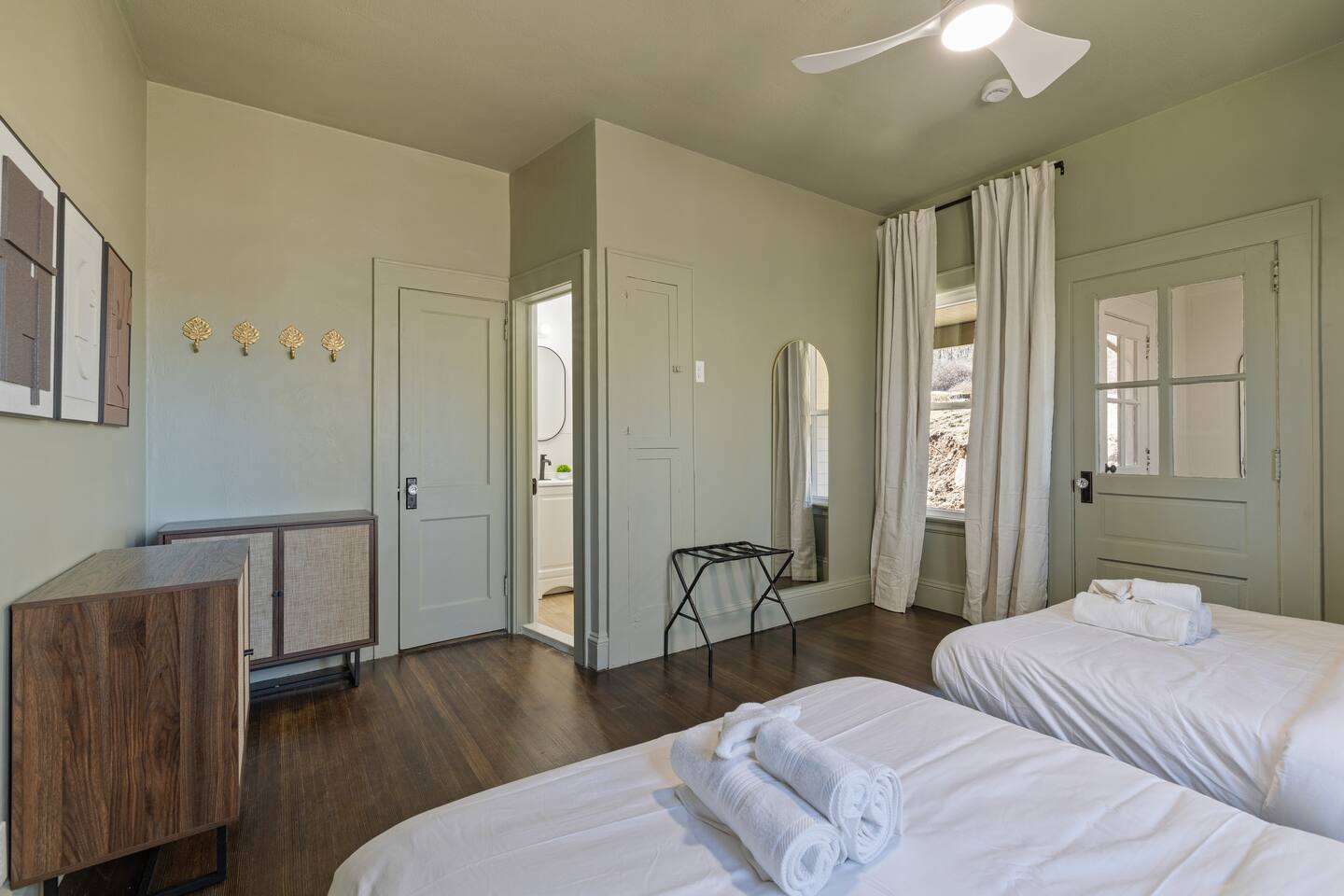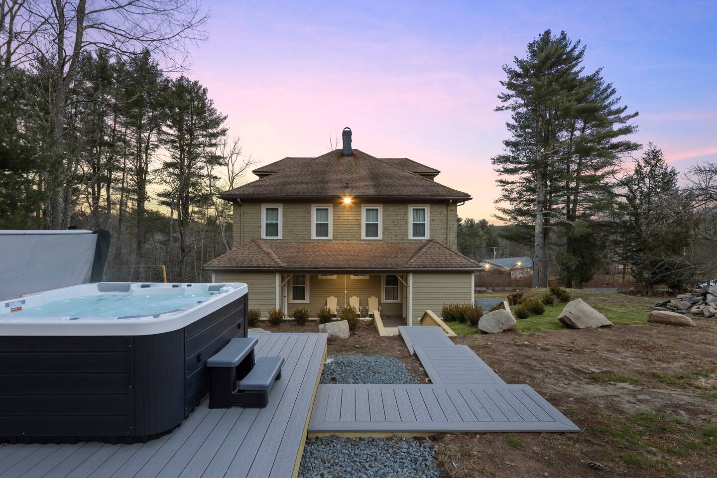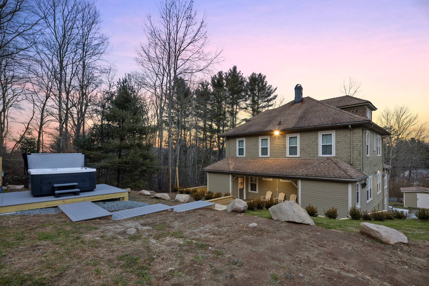 Guests have full access to all areas of the home, including the spacious living room, dining area, fully equipped kitchen, and mudroom. Enjoy the laundry room with washer and dryer for your convenience. You can explore all the bedrooms and bathrooms on the 2nd and 3rd floors, and relax in the cozy lounges in both wings. Guests are welcome to enjoy the outdoor spaces and common areas as well. Please note that some storage spaces and utility areas are private and not for guest use.