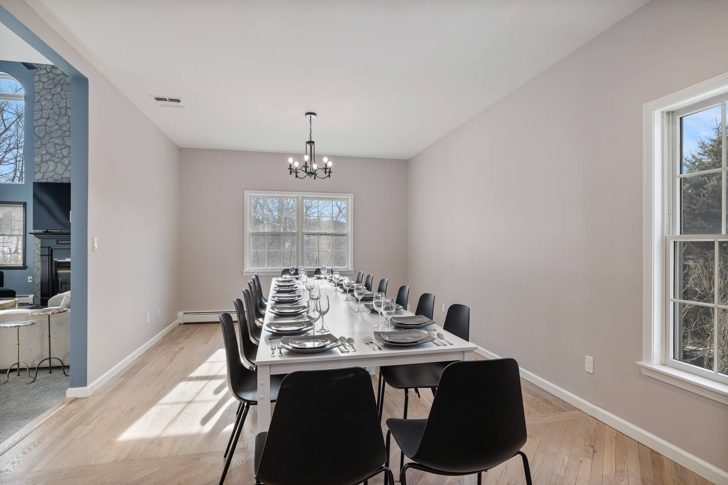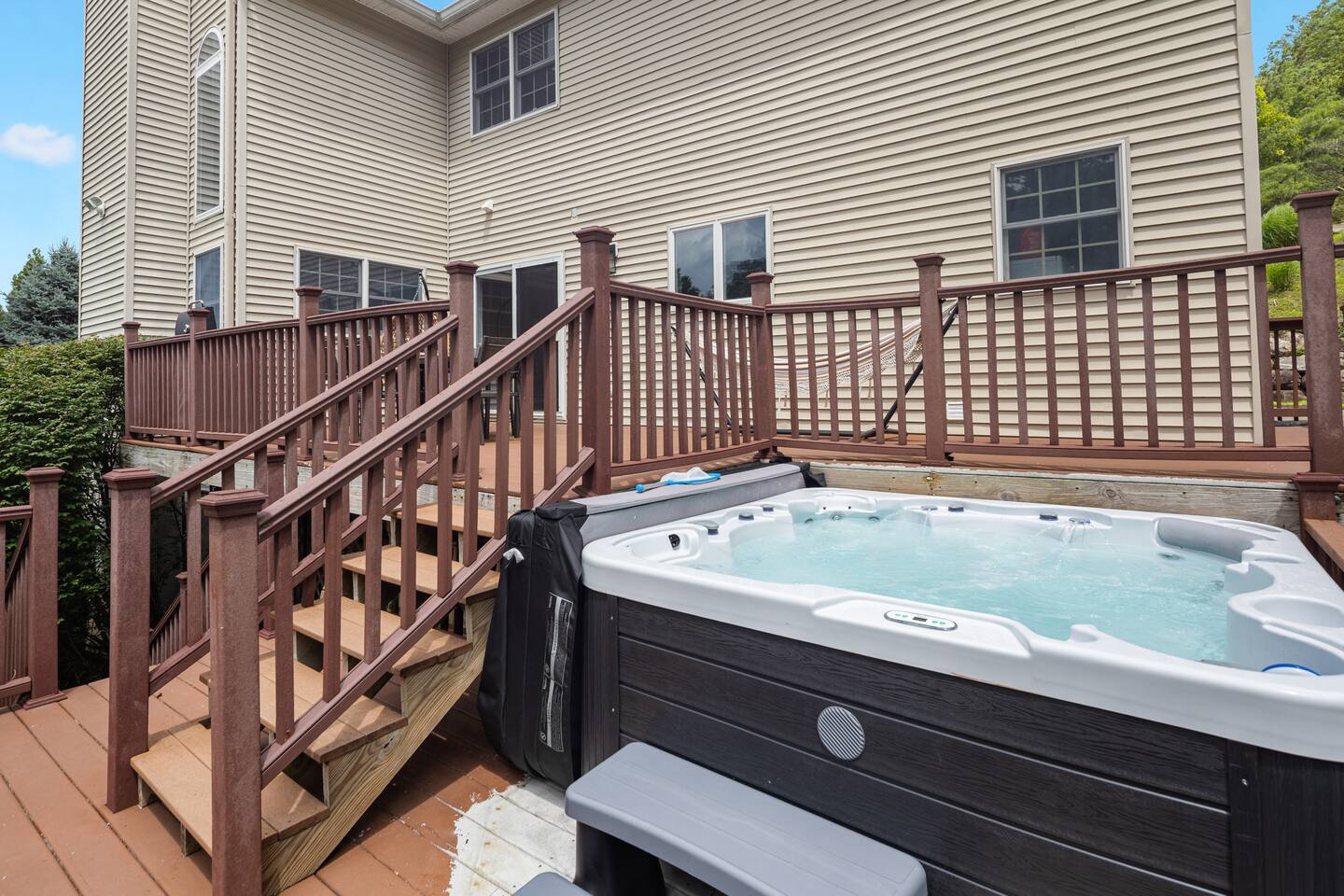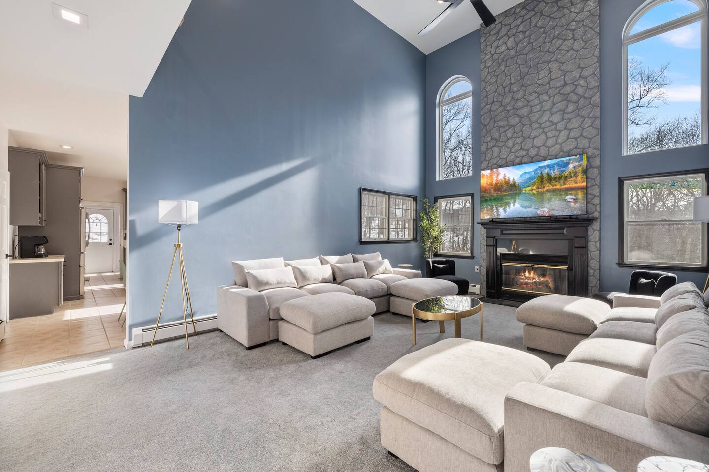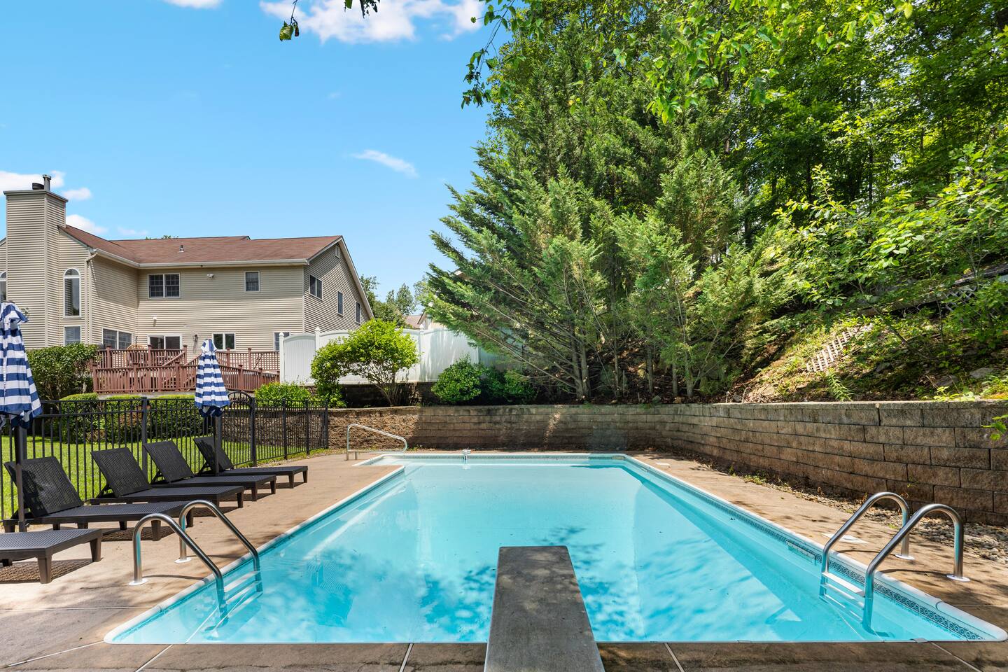 Spacious Colonial Retreat w/ Pool, Hot Tub & Game Room! This stunning home in Stony Point sits on 1.16 acres and sleeps 28 guests across 9 bedrooms and 3.5 baths. Enjoy an open floor plan, high ceilings, a cozy fireplace, and a fully equipped kitchen. The game room is on the first floor near the dining room. Relax on the deck, soak in the private hot tub, or enjoy the seasonal pool. Close to hiking, dining, and shopping!