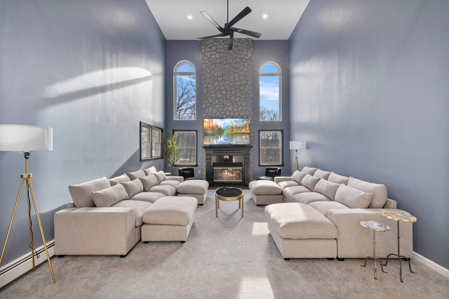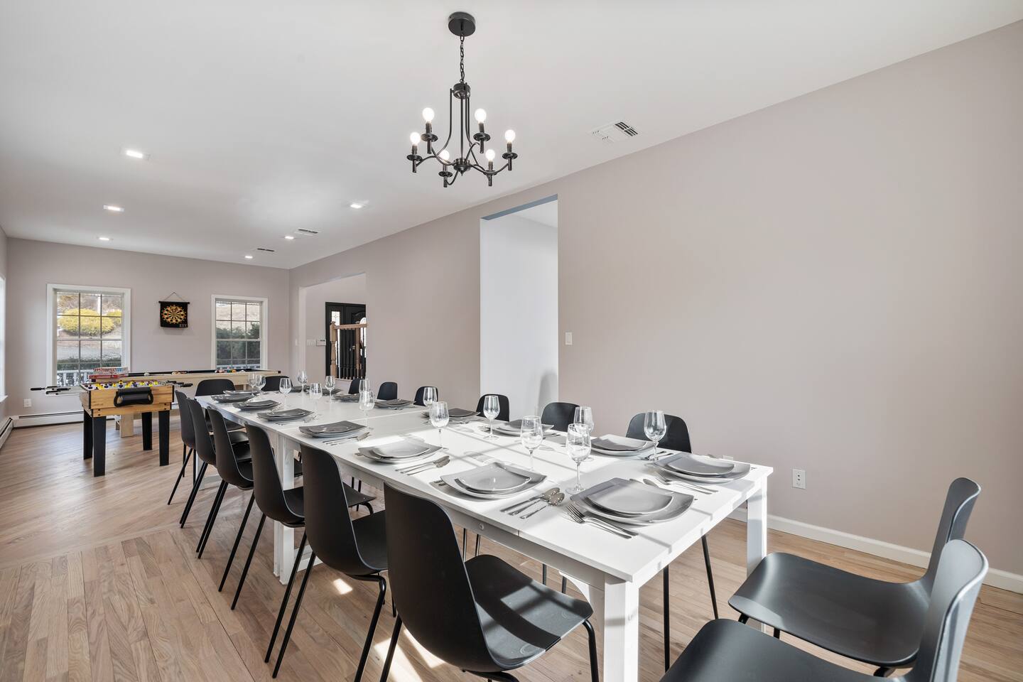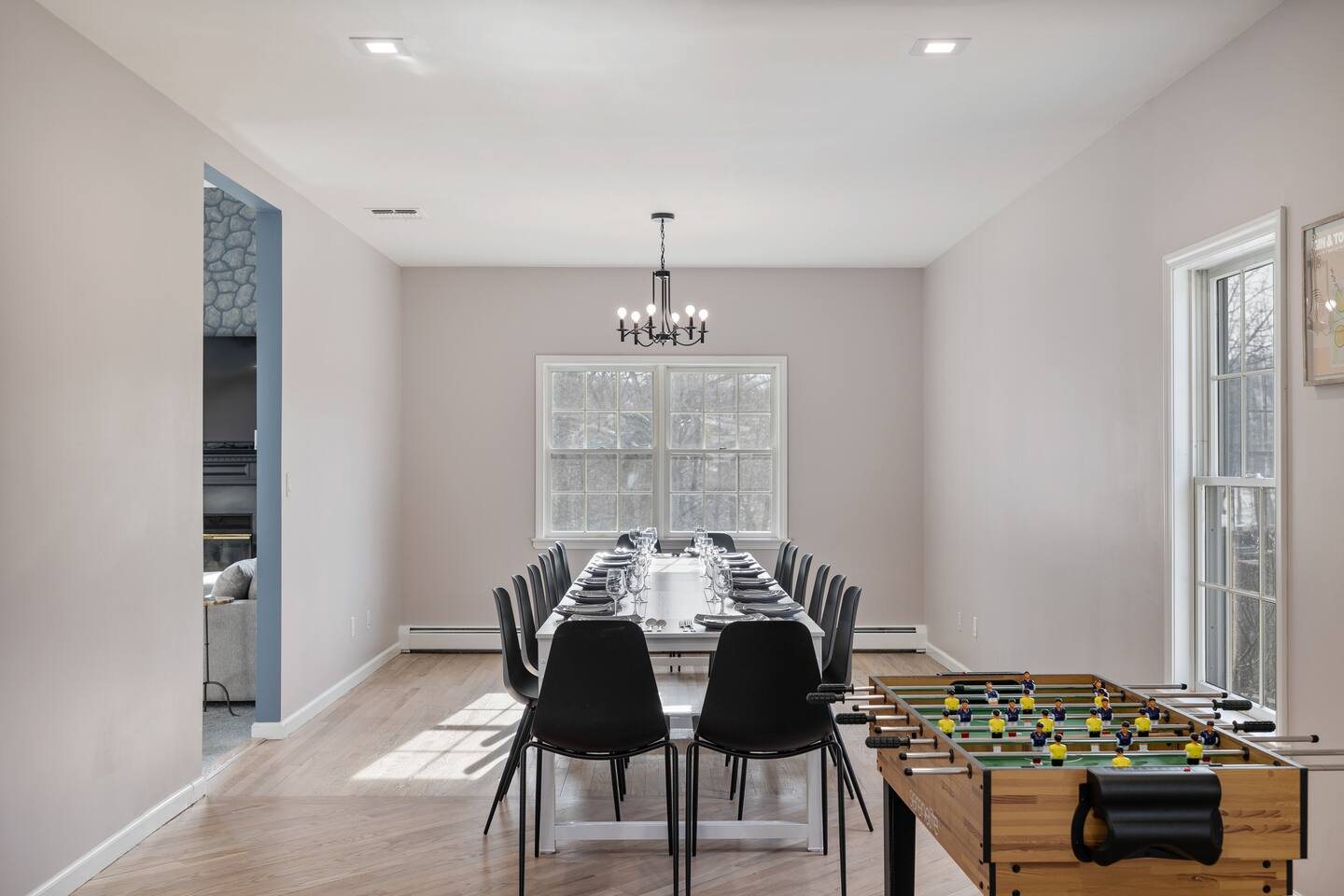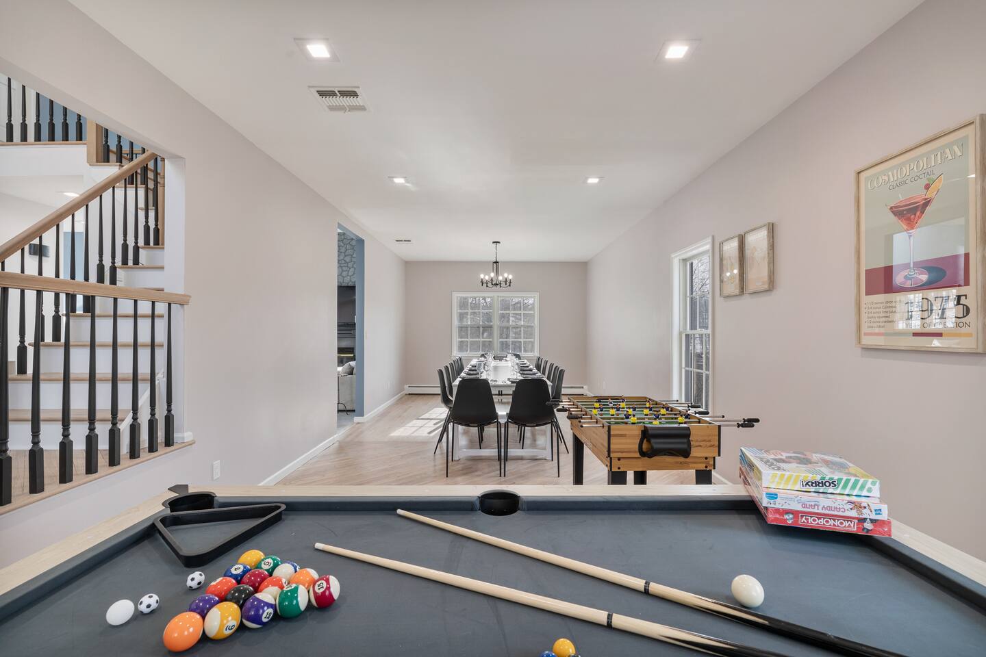 Spacious Colonial Retreat w/ Pool, Hot Tub & Game Room! This stunning home in Stony Point sits on 1.16 acres and sleeps 28 guests across 9 bedrooms and 3.5 baths. Enjoy an open floor plan, high ceilings, a cozy fireplace, and a fully equipped kitchen. The game room is on the first floor near the dining room. Relax on the deck, soak in the private hot tub, or enjoy the seasonal pool. Close to hiking, dining, and shopping!