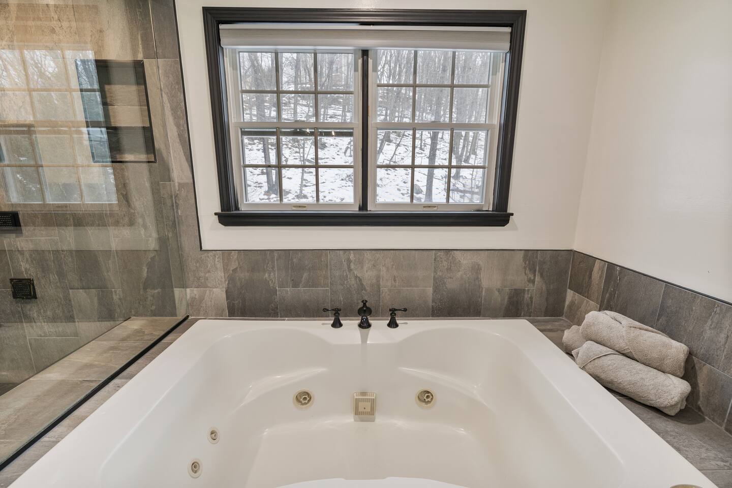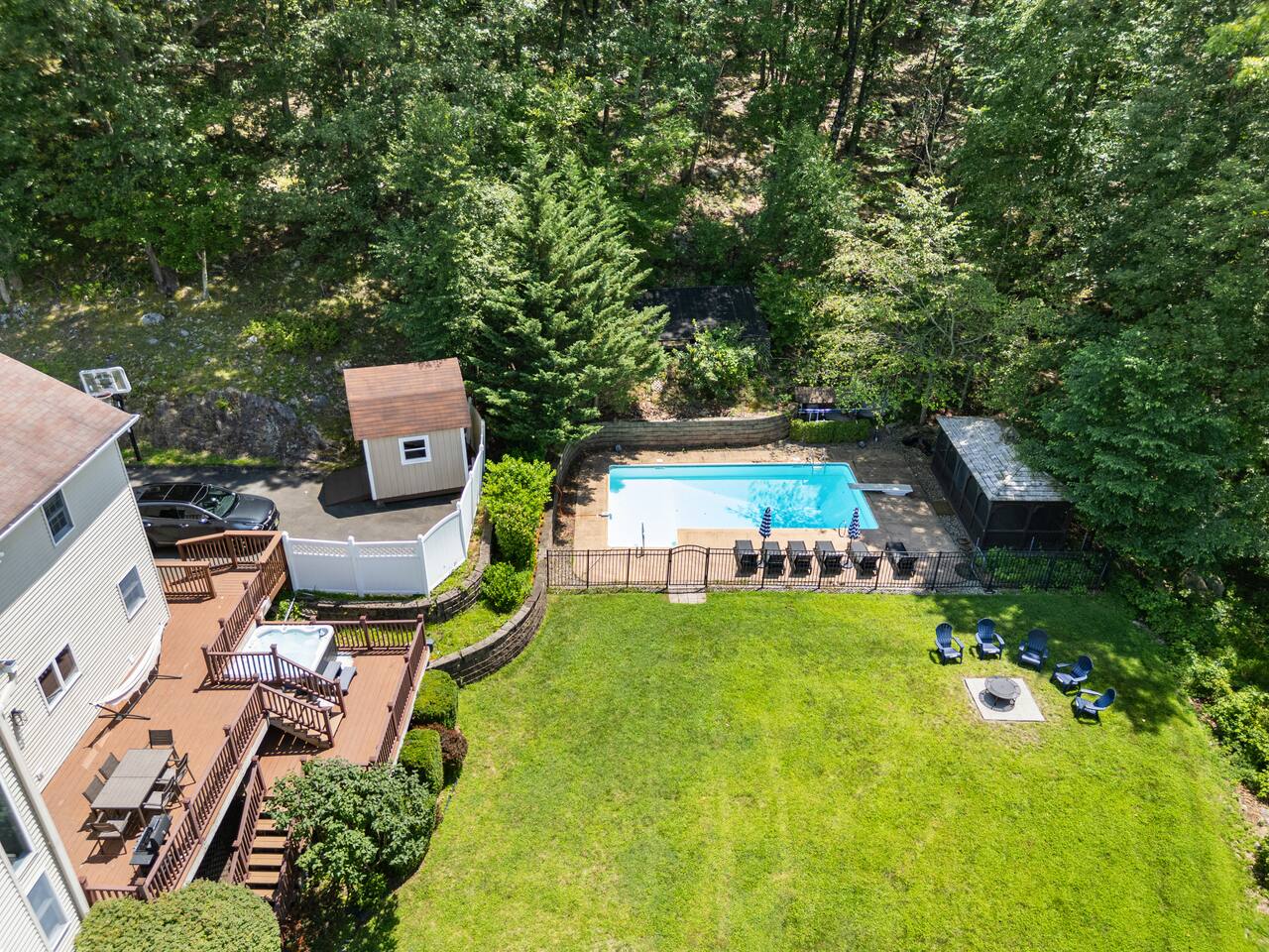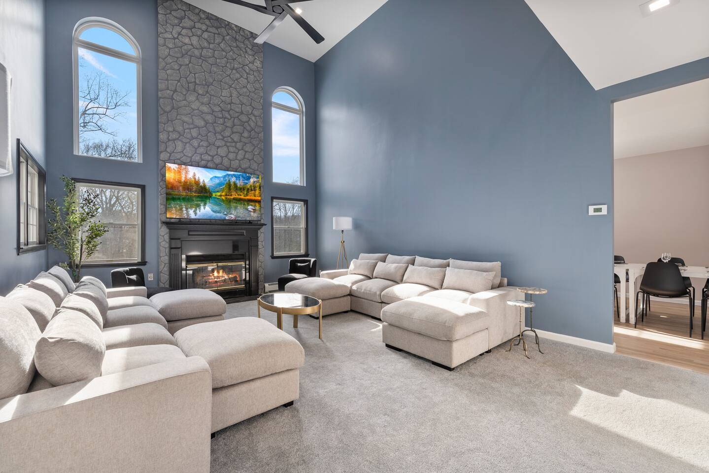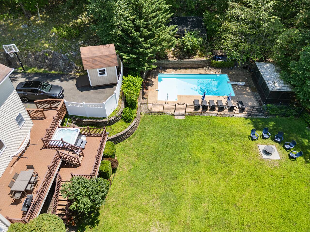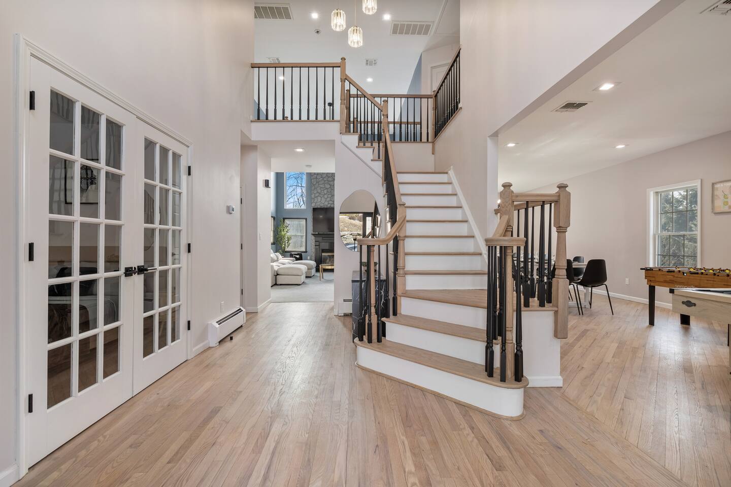 Spacious Colonial Retreat w/ Pool, Hot Tub & Game Room! This stunning home in Stony Point sits on 1.16 acres and sleeps 28 guests across 9 bedrooms and 3.5 baths. Enjoy an open floor plan, high ceilings, a cozy fireplace, and a fully equipped kitchen. The game room is on the first floor near the dining room. Relax on the deck, soak in the private hot tub, or enjoy the seasonal pool. Close to hiking, dining, and shopping!