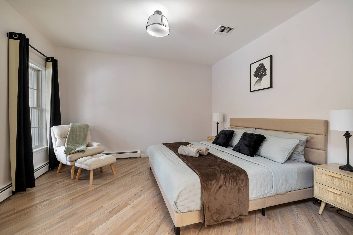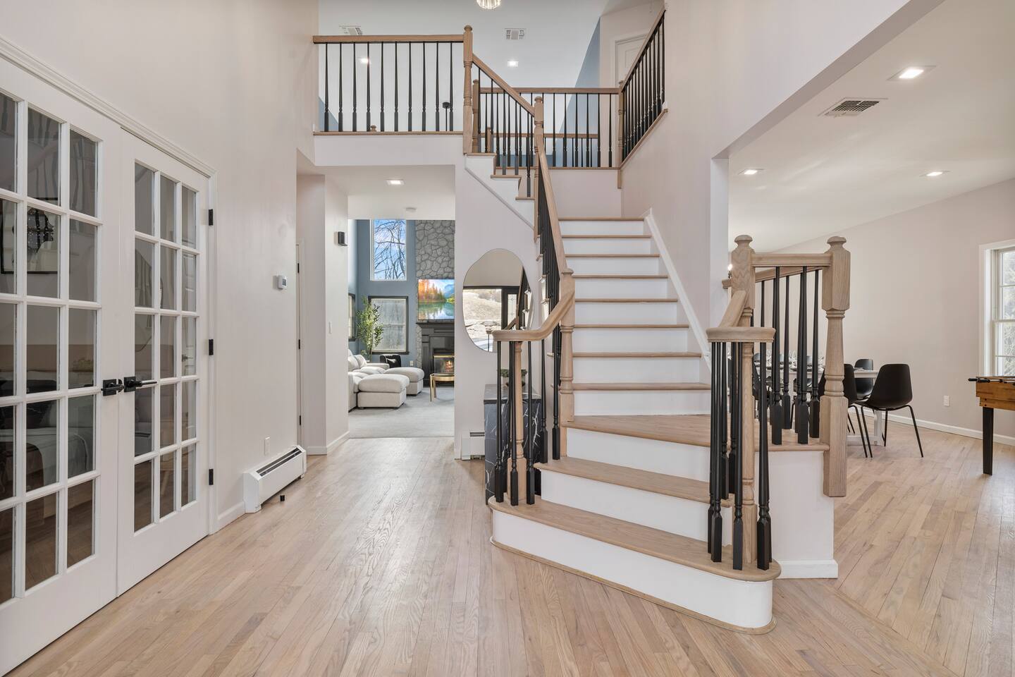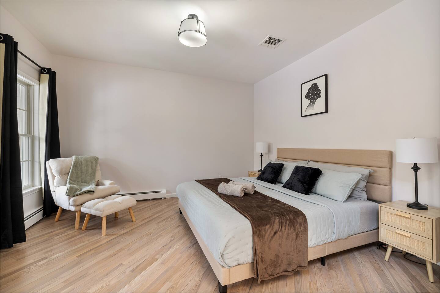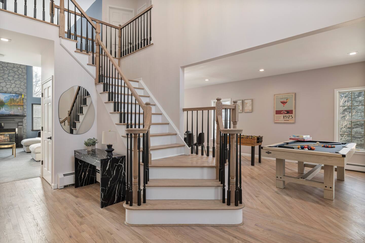 Spacious Colonial Retreat w/ Pool, Hot Tub & Game Room! This stunning home in Stony Point sits on 1.16 acres and sleeps 28 guests across 9 bedrooms and 3.5 baths. Enjoy an open floor plan, high ceilings, a cozy fireplace, and a fully equipped kitchen. The game room is on the first floor near the dining room. Relax on the deck, soak in the private hot tub, or enjoy the seasonal pool. Close to hiking, dining, and shopping!