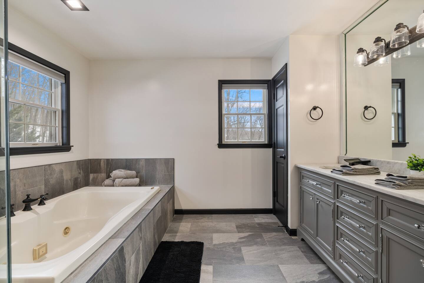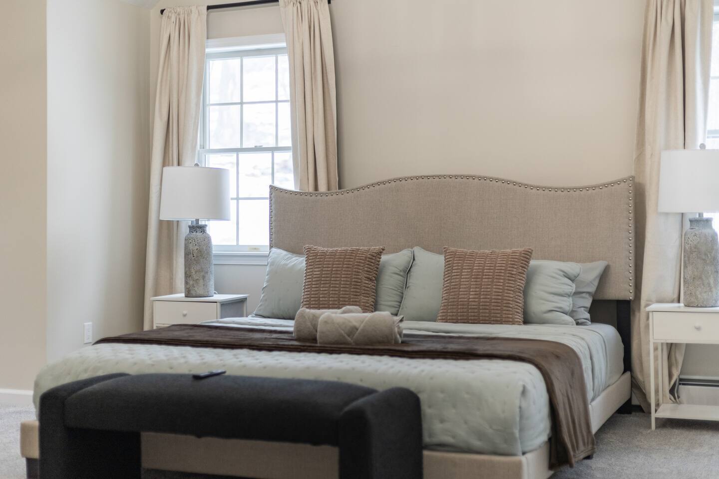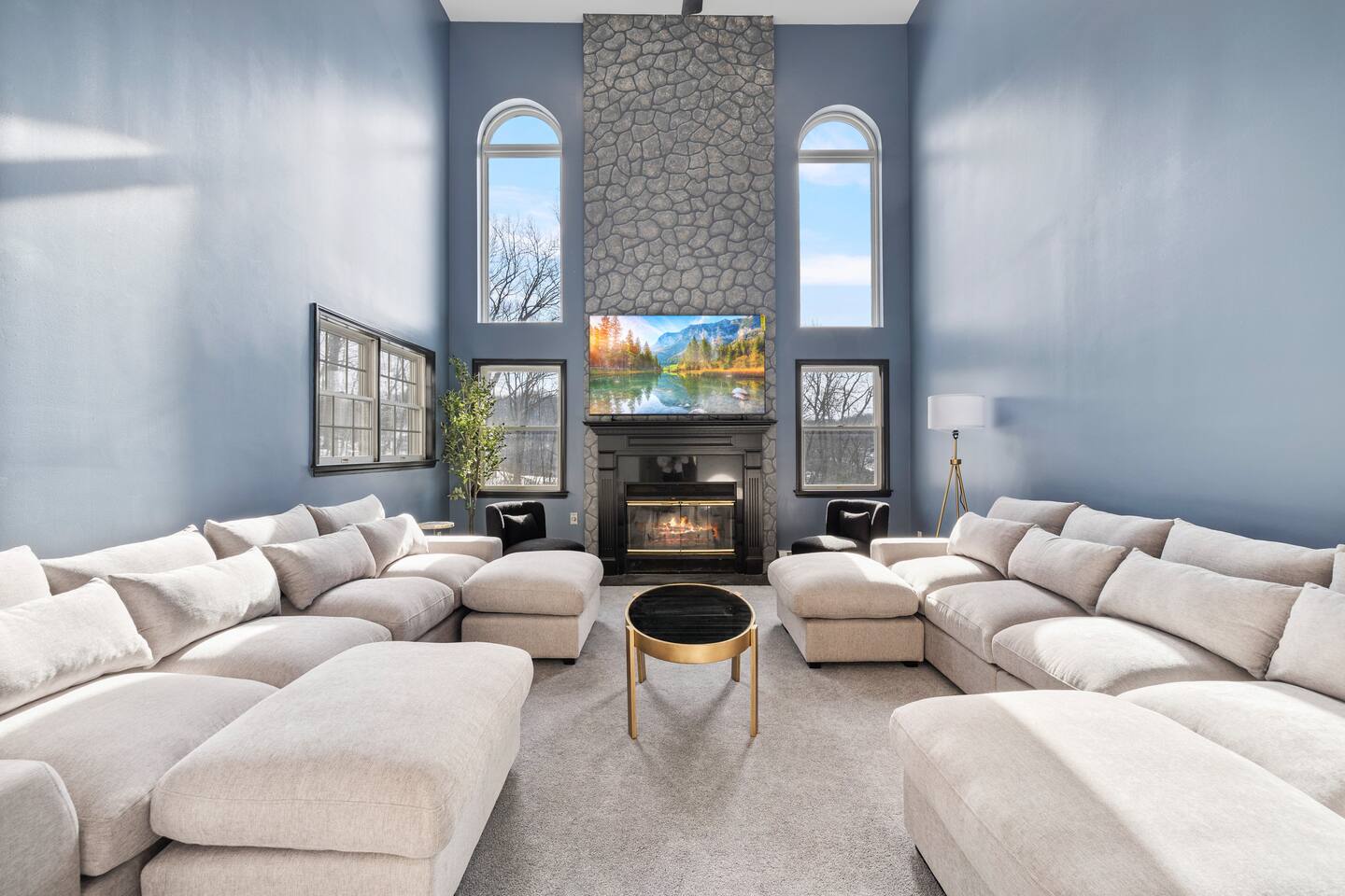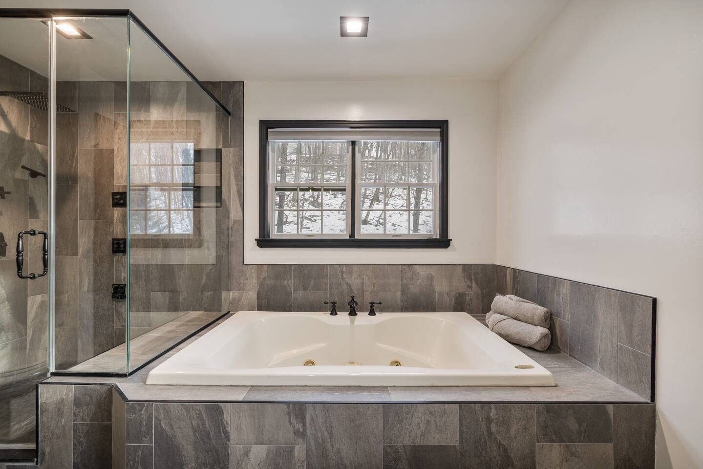 Spacious Colonial Retreat w/ Pool, Hot Tub & Game Room! This stunning home in Stony Point sits on 1.16 acres and sleeps 28 guests across 9 bedrooms and 3.5 baths. Enjoy an open floor plan, high ceilings, a cozy fireplace, and a fully equipped kitchen. The game room is on the first floor near the dining room. Relax on the deck, soak in the private hot tub, or enjoy the seasonal pool. Close to hiking, dining, and shopping!