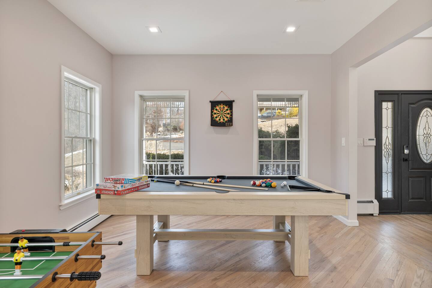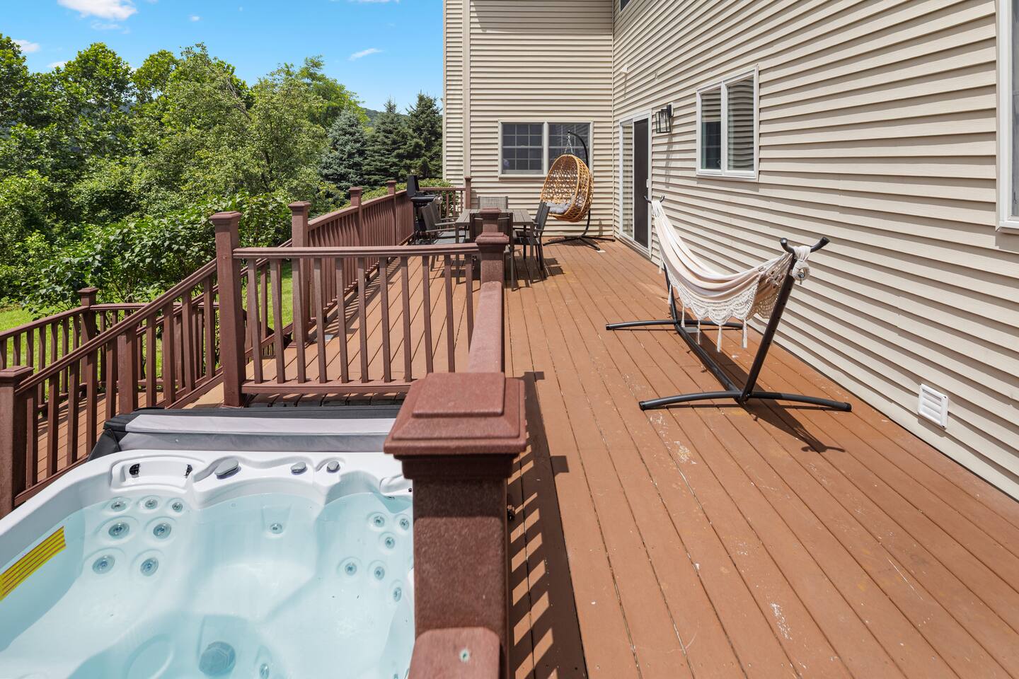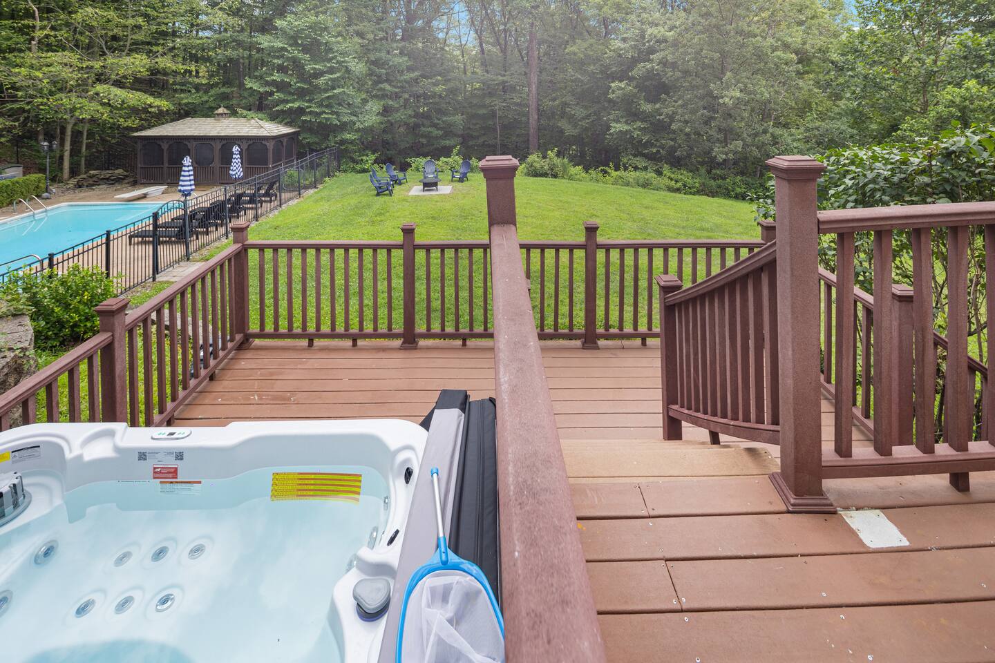 Guests will have full access to the entire home, including all bedrooms, bathrooms, living areas, kitchen, game room, and laundry room. The outdoor spaces, including the deck, private hot tub, seasonal pool, and poolside bar, are also available for guest use. Parking is provided with ample space for multiple vehicles. The only restricted areas are any locked storage closets, which are for maintenance use.