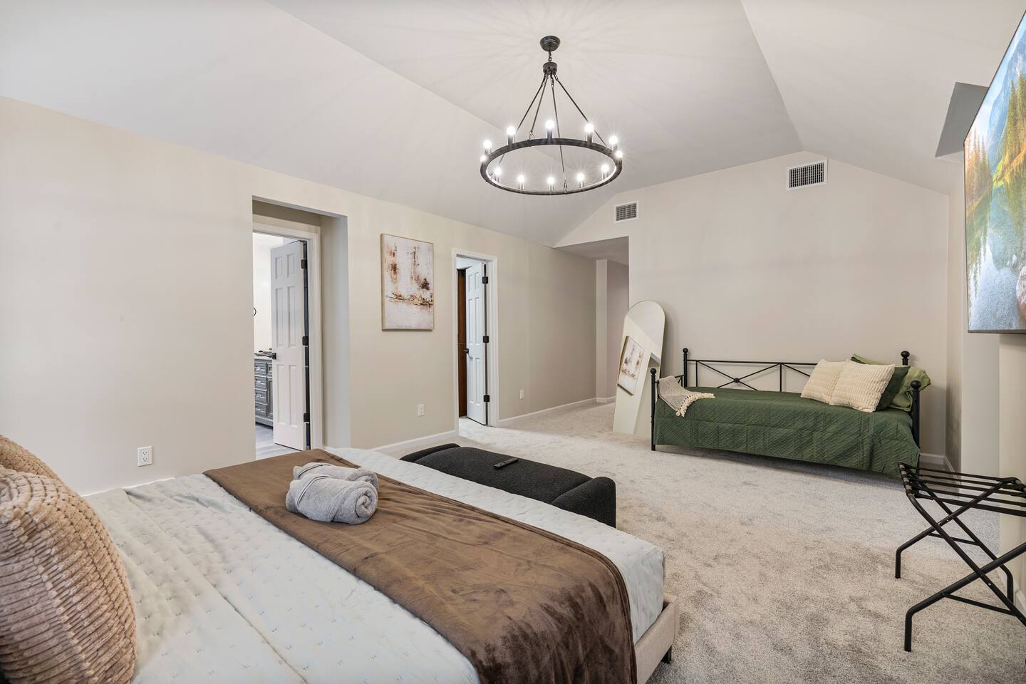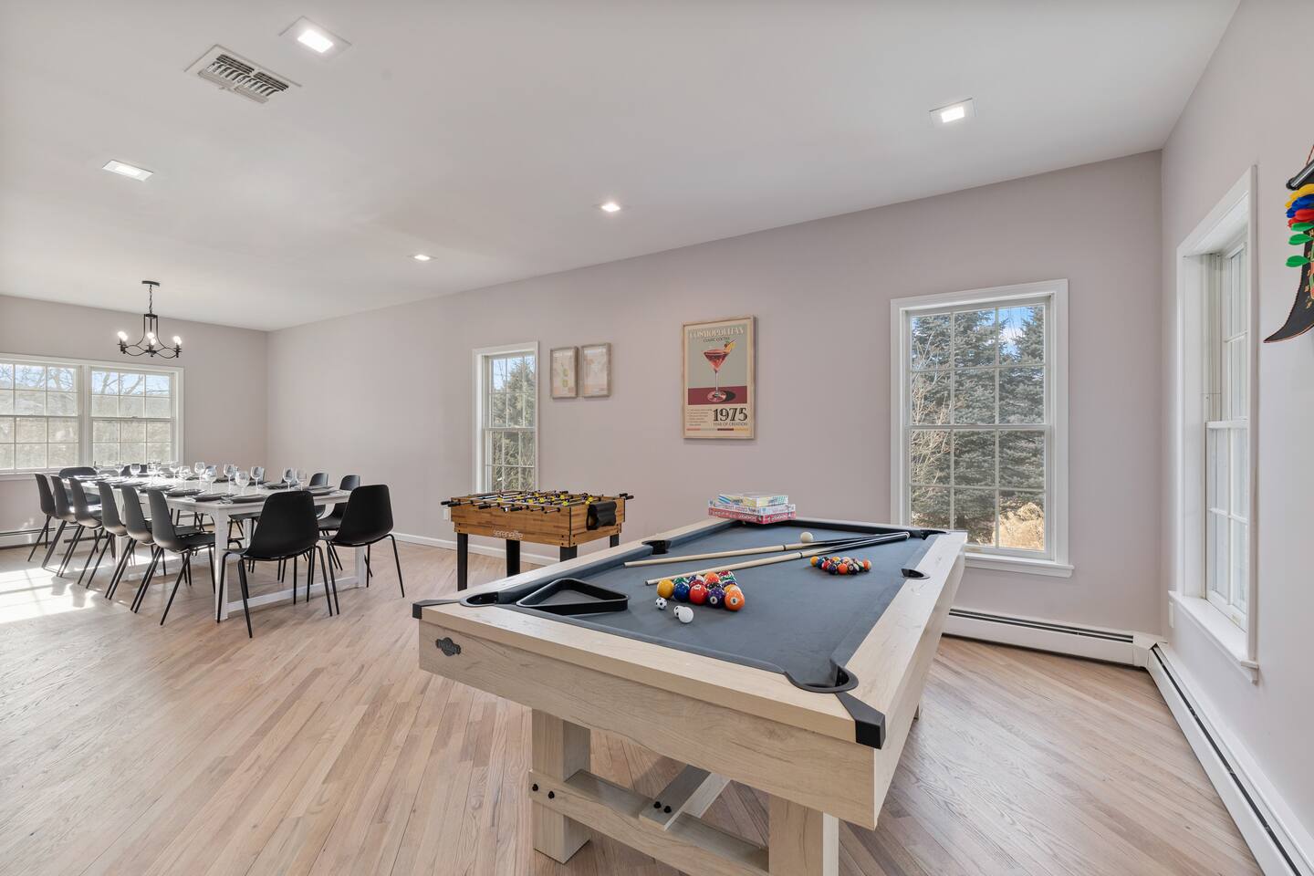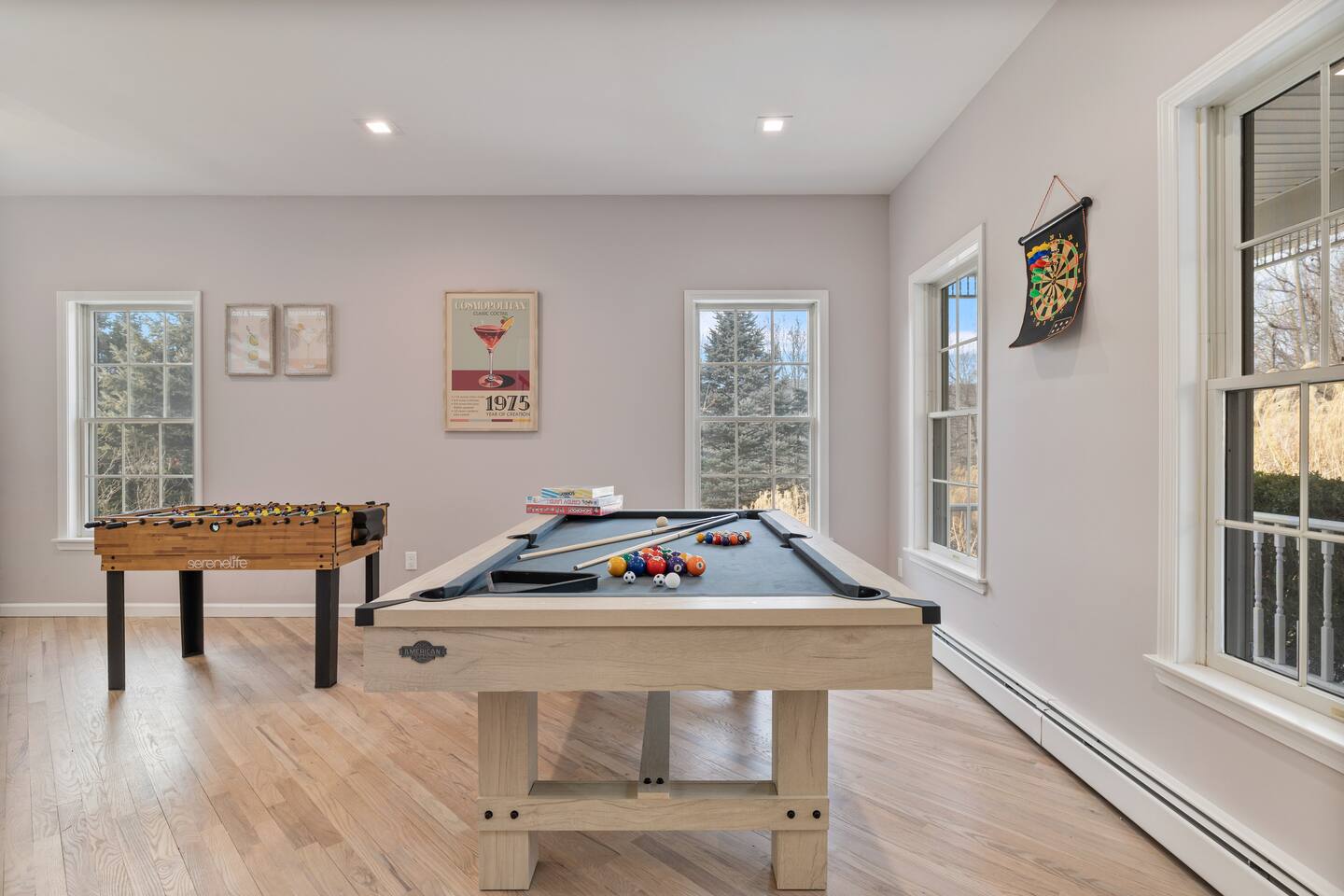 Guests will have full access to the entire home, including all bedrooms, bathrooms, living areas, kitchen, game room, and laundry room. The outdoor spaces, including the deck, private hot tub, seasonal pool, and poolside bar, are also available for guest use. Parking is provided with ample space for multiple vehicles. The only restricted areas are any locked storage closets, which are for maintenance use.
